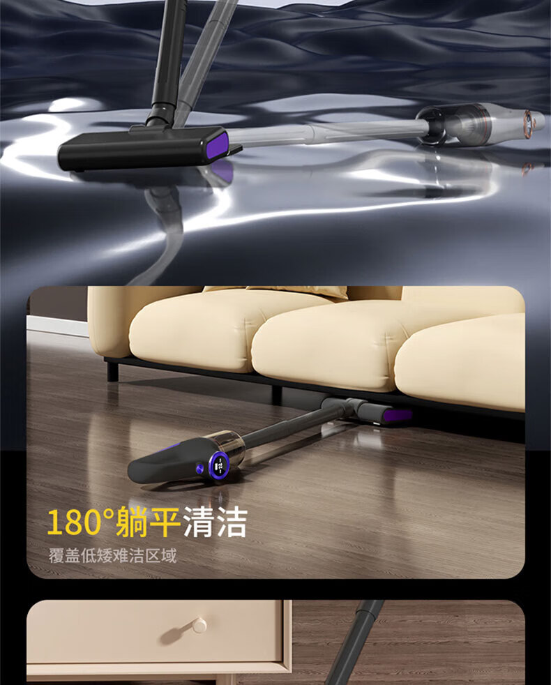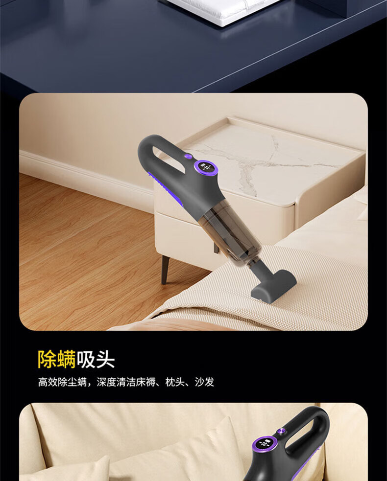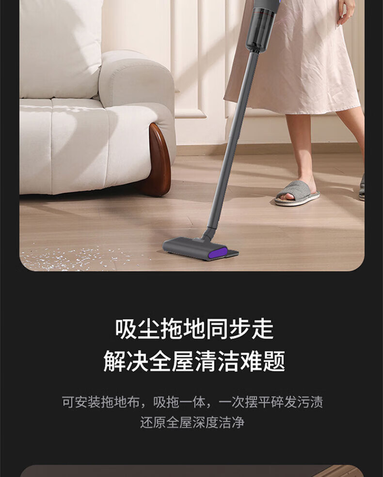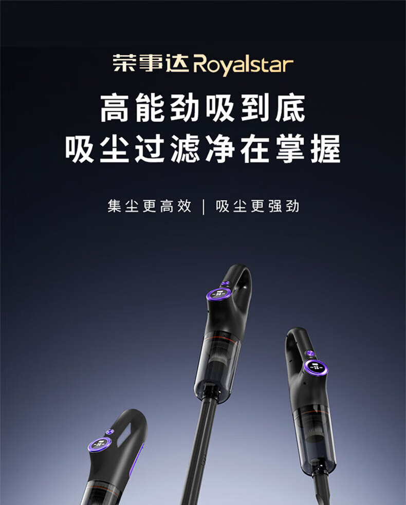 Royalstar vacuum cleaner household large suction small handheld dry and wet dual-use wireless floor scrubber suction and mopping all-in-one sweeper household pet hair suction machine mite remover vacuum cleaner three-in-one 15KPa wireless suction and mopping all-in-one equipped with mite removal and hair removal suction head + long-bristle brush head