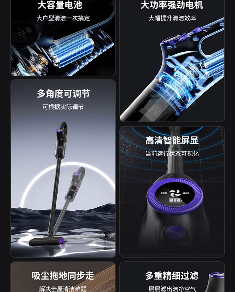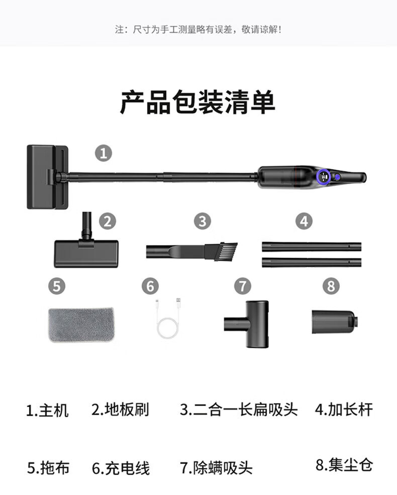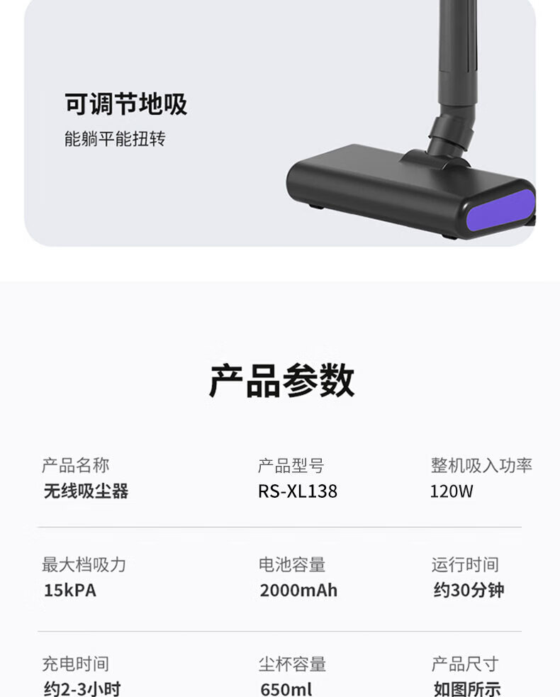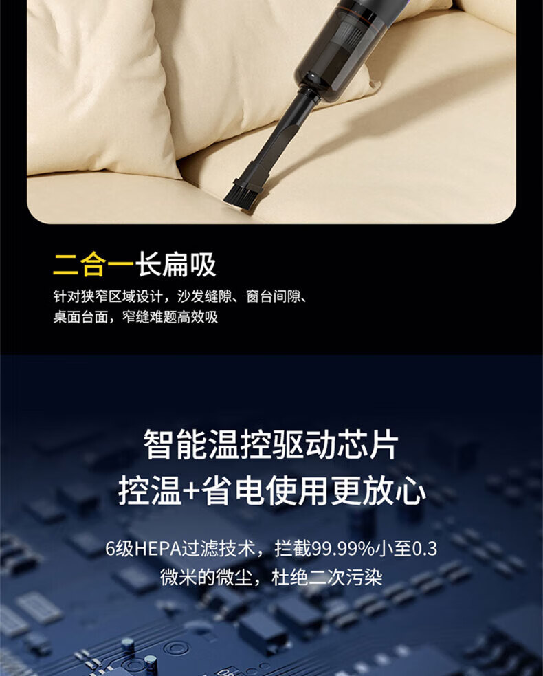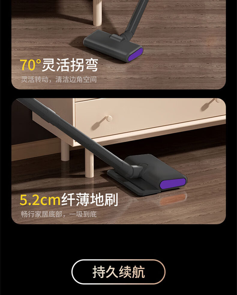 Royalstar vacuum cleaner household large suction small handheld dry and wet dual-use wireless floor scrubber suction and mopping all-in-one sweeper household pet hair suction machine mite remover vacuum cleaner three-in-one 15KPa wireless suction and mopping all-in-one equipped with mite removal and hair removal suction head + long-bristle brush head