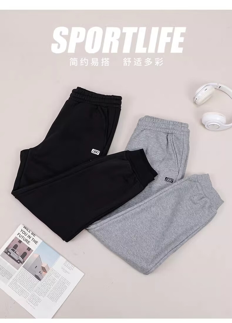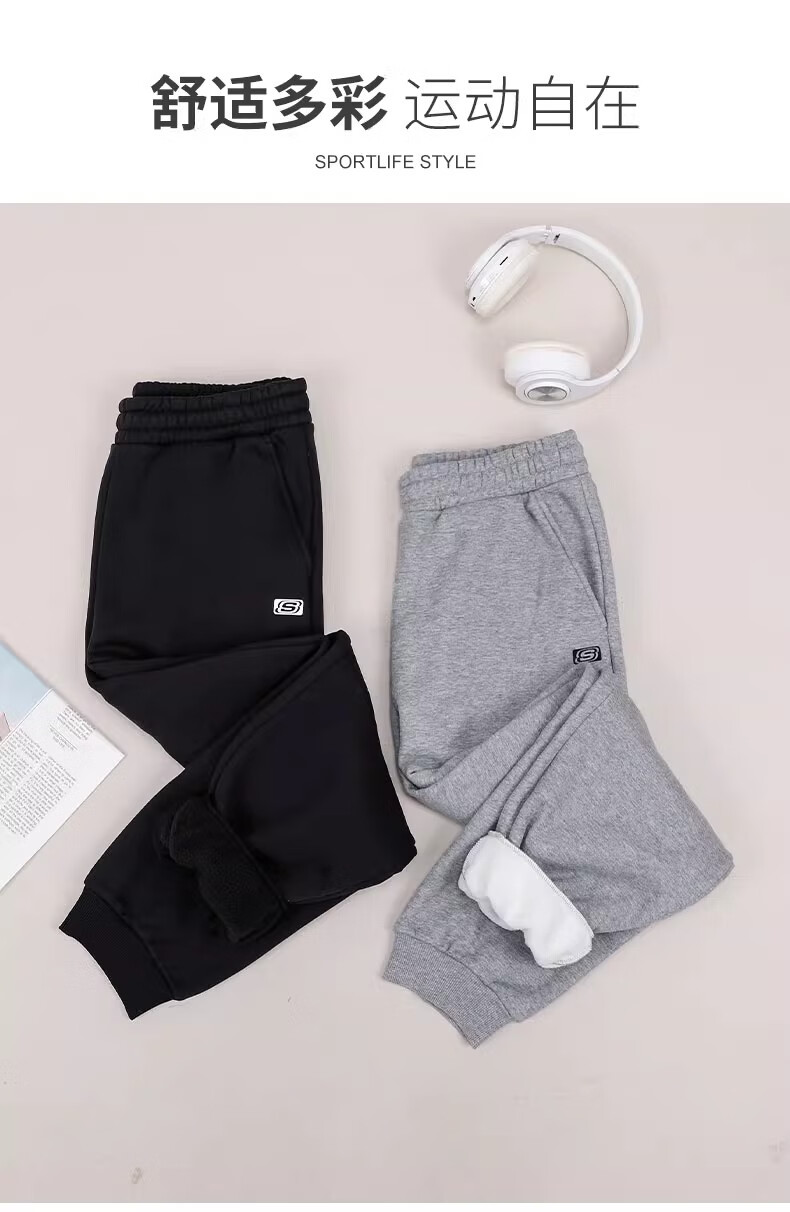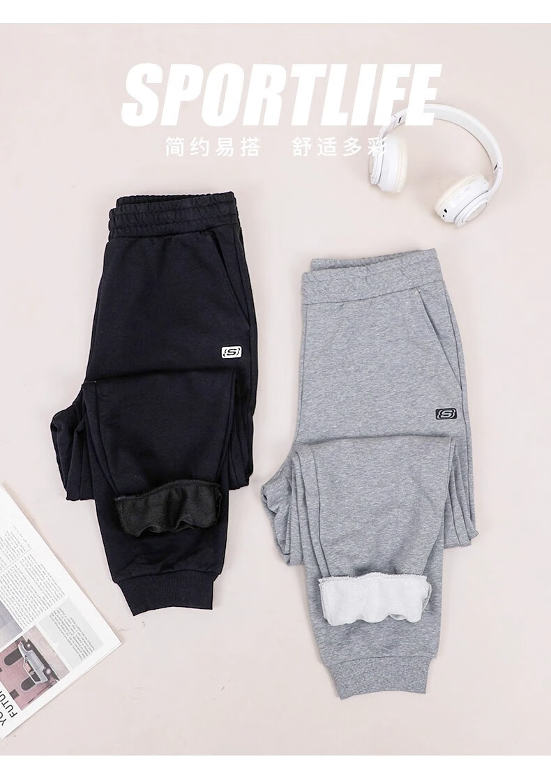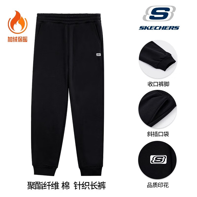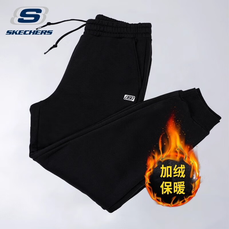 Skechers fleece sports sweatpants for men, warm, slim, versatile and loose, 2025 autumn and winter new style leggings trousers -0018 Carbon Black S (165)