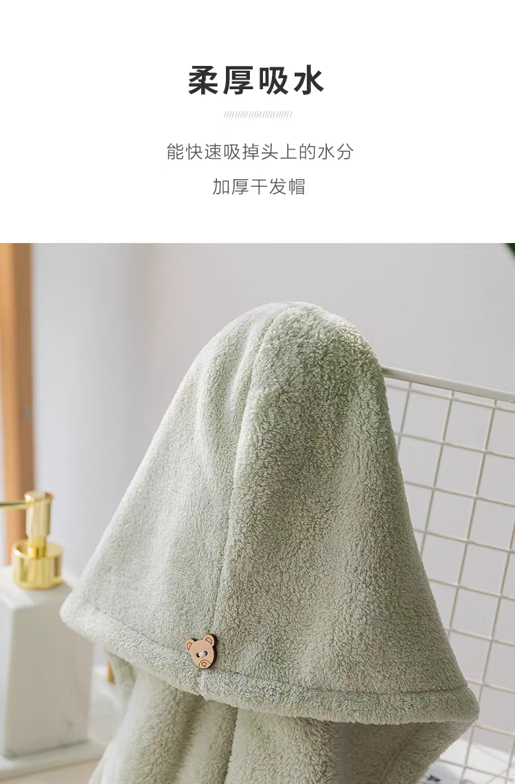 Dry hair cap for women, quick-drying, super absorbent, thickened hair towel, head bath towel, mother and baby green one