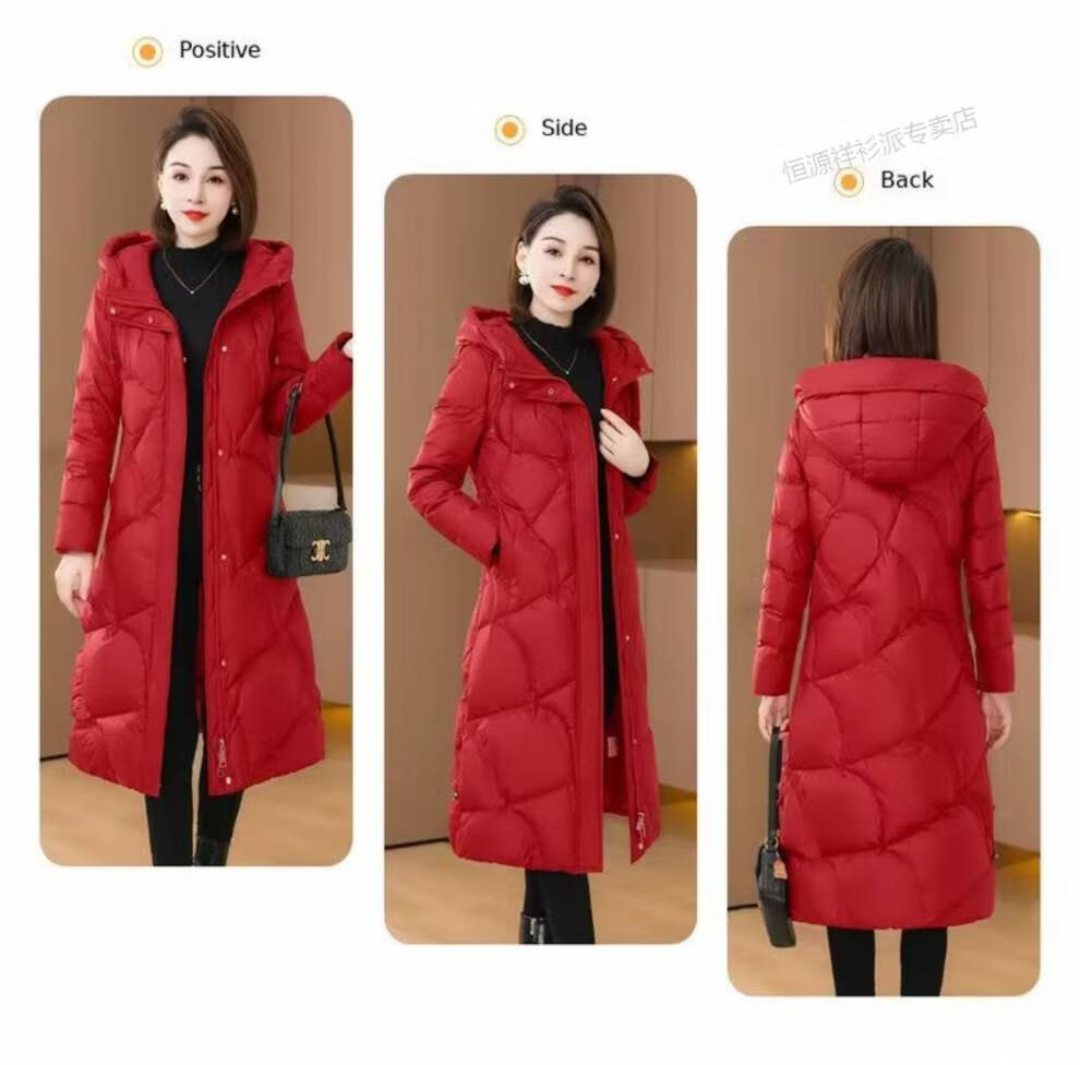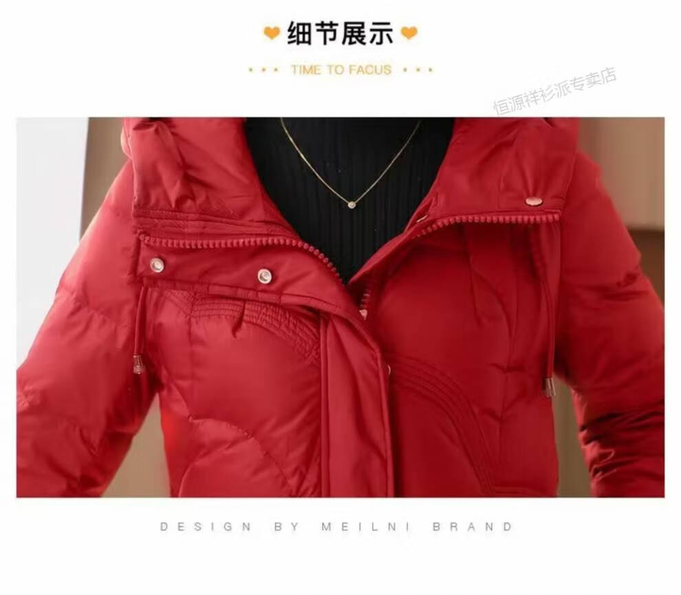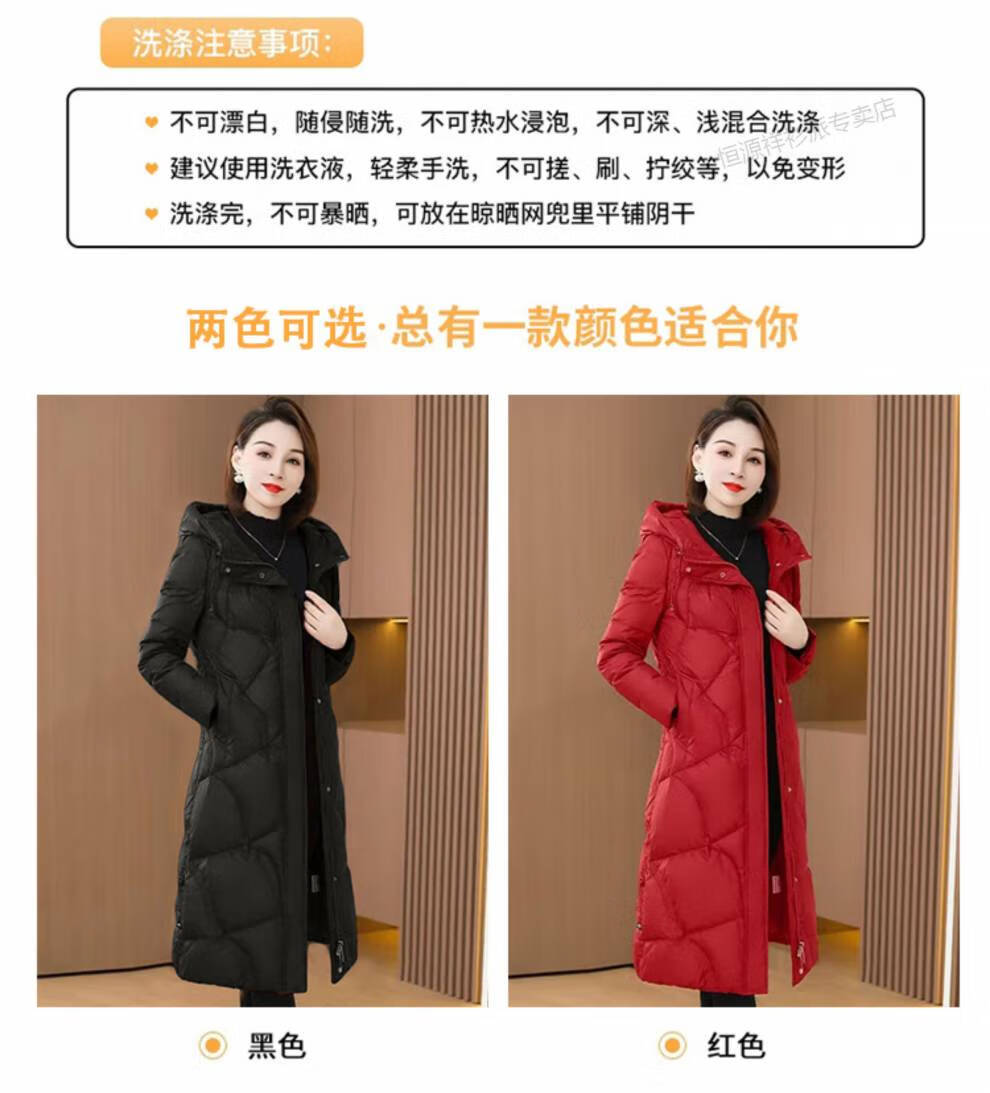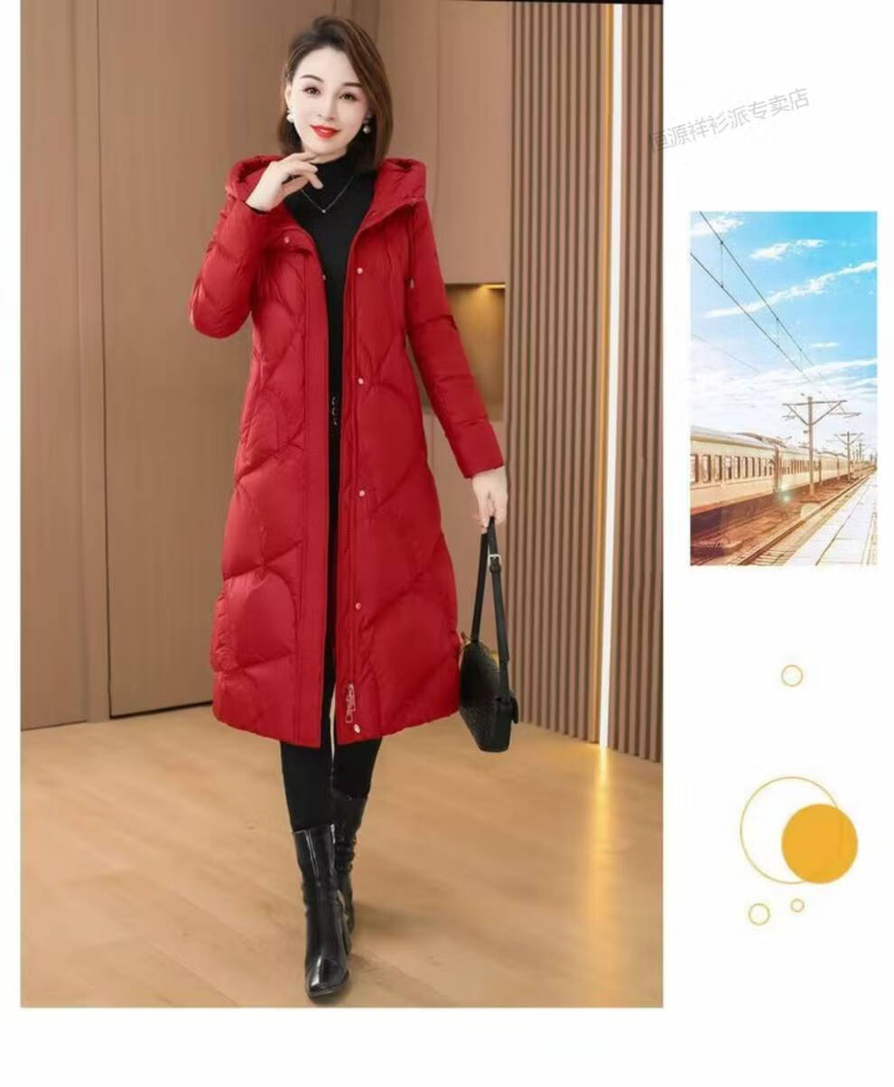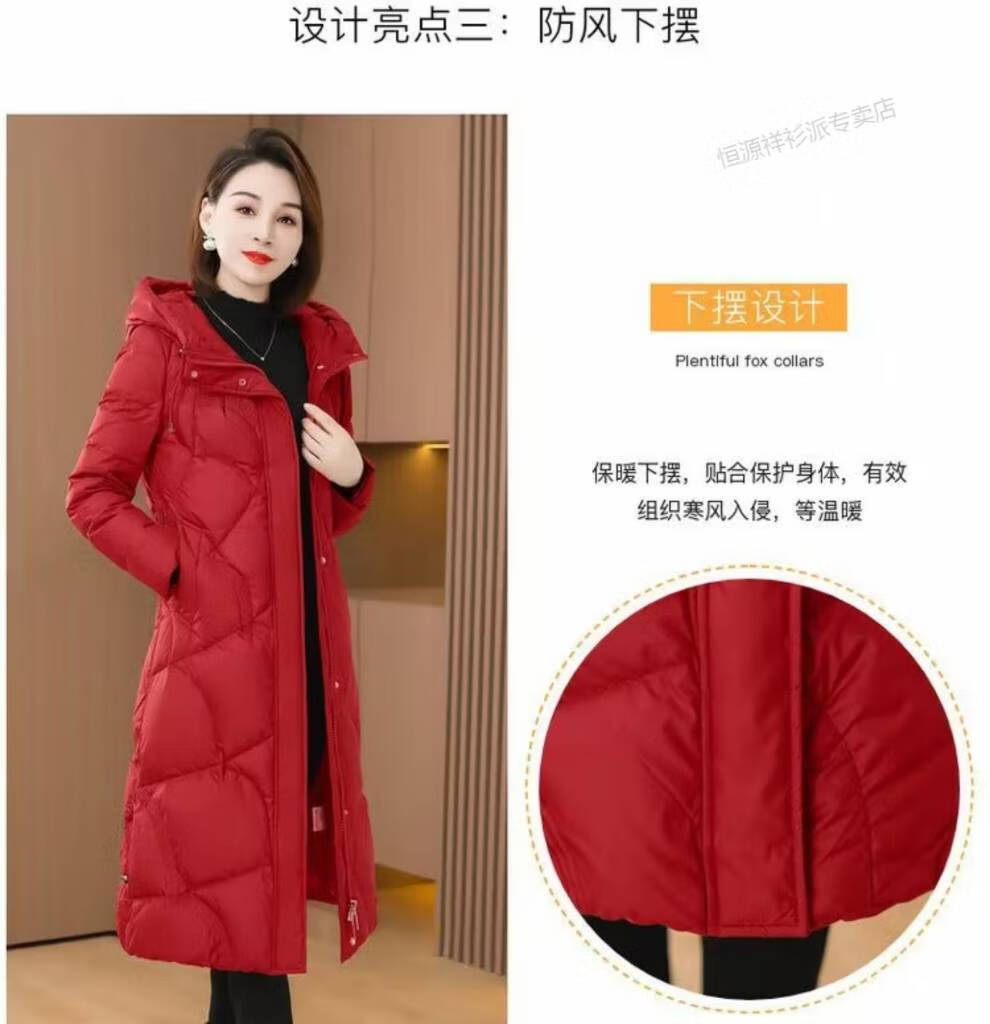 恒源祥羽绒服女中长款过膝2026年冬新款白鸭绒加厚保暖修身显瘦外套 红色 M 建议110斤以内