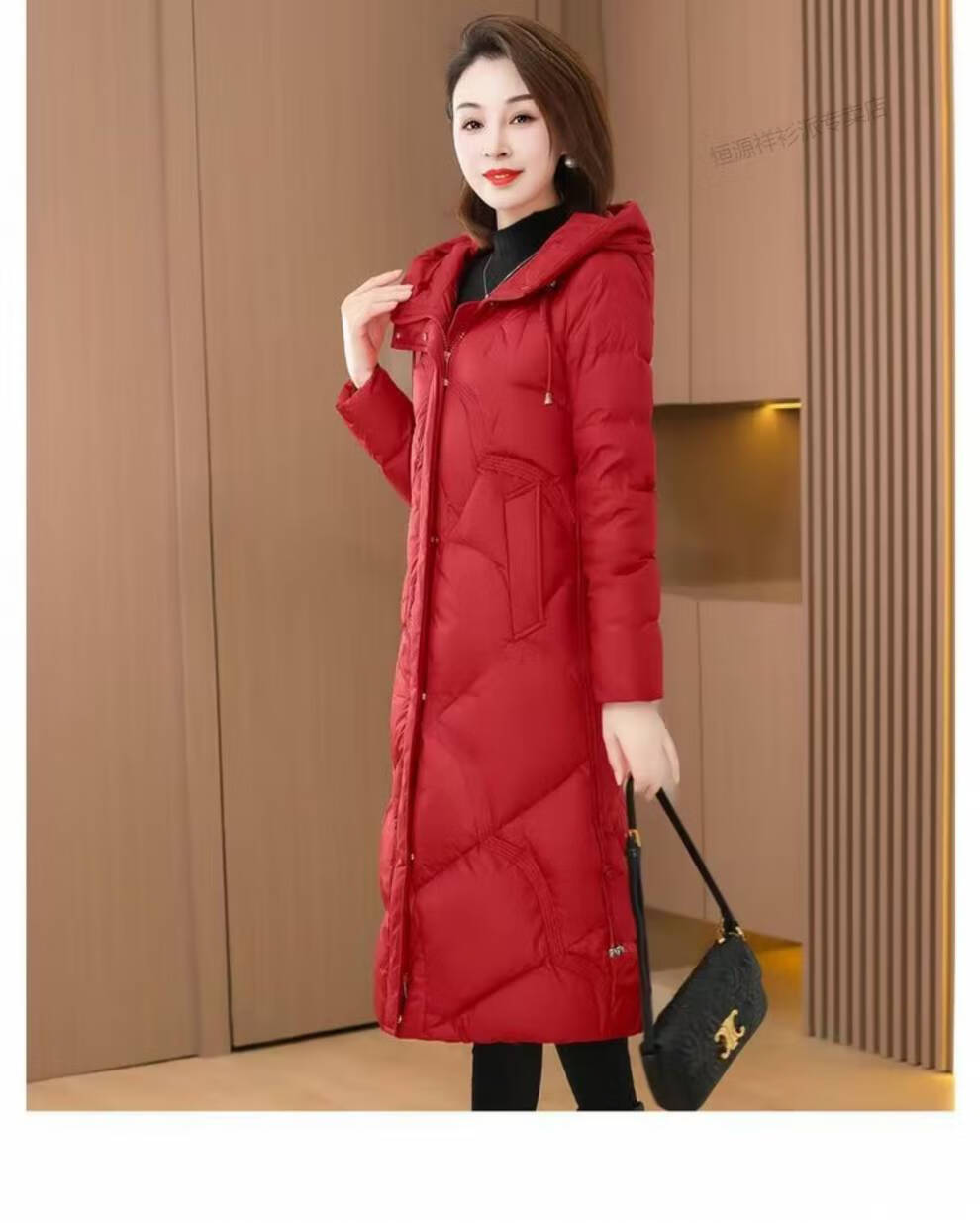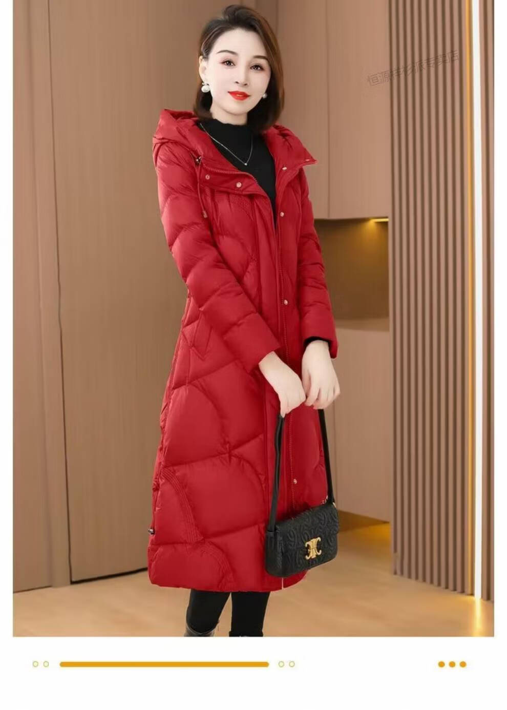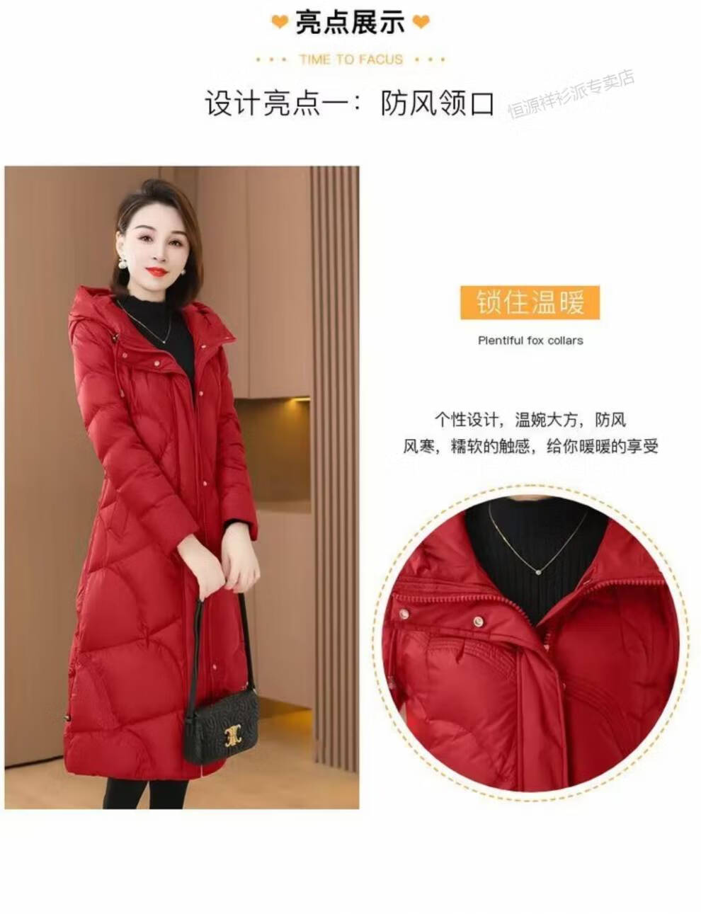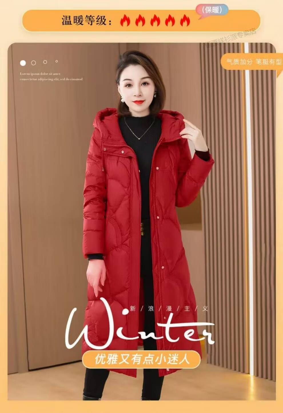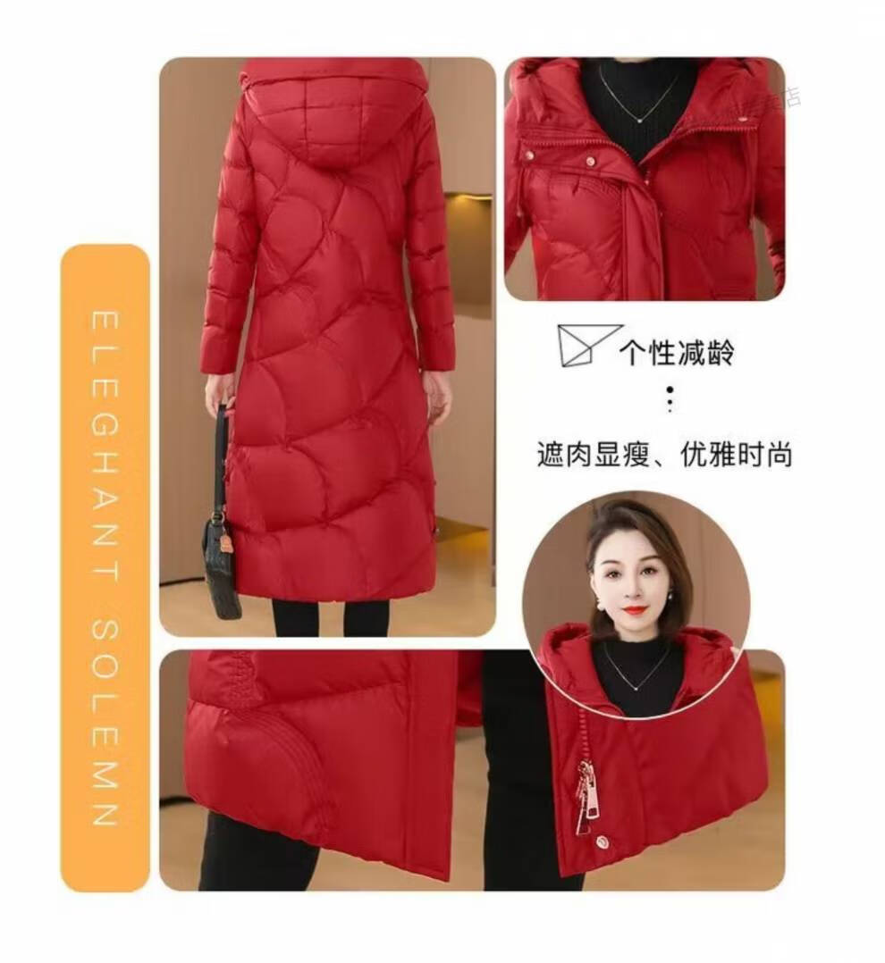 恒源祥羽绒服女中长款过膝2026年冬新款白鸭绒加厚保暖修身显瘦外套 红色 M 建议110斤以内