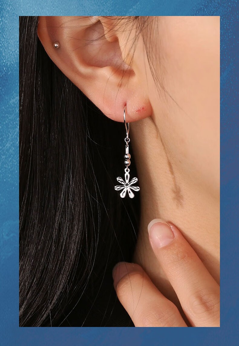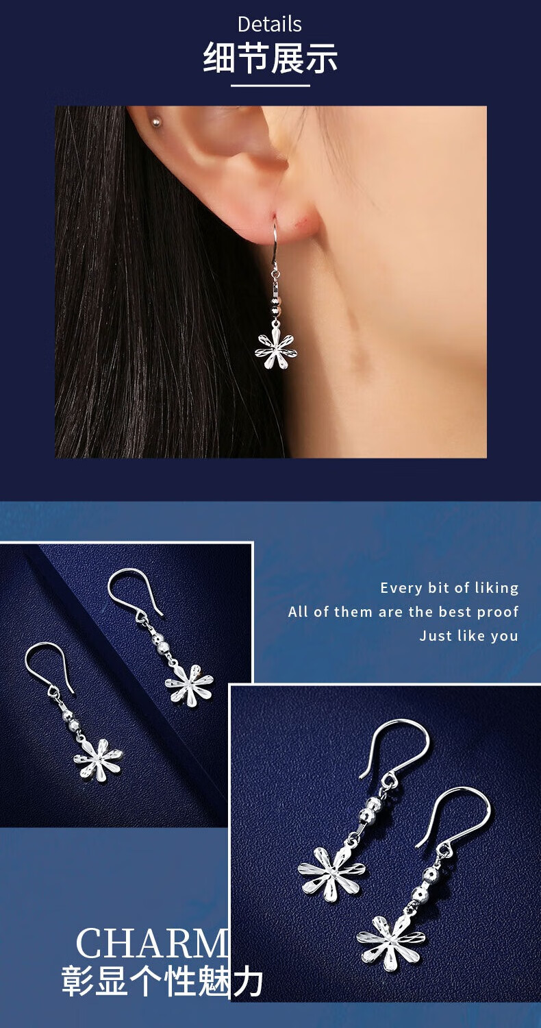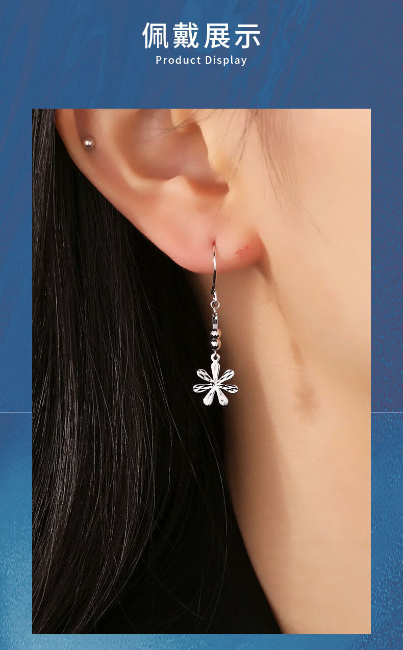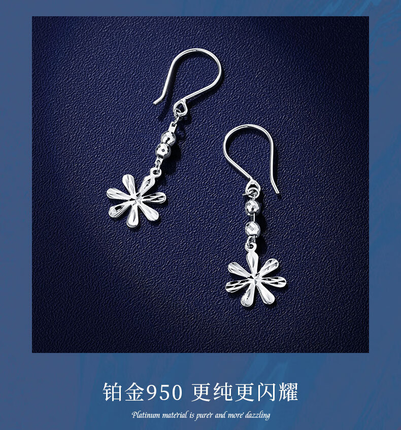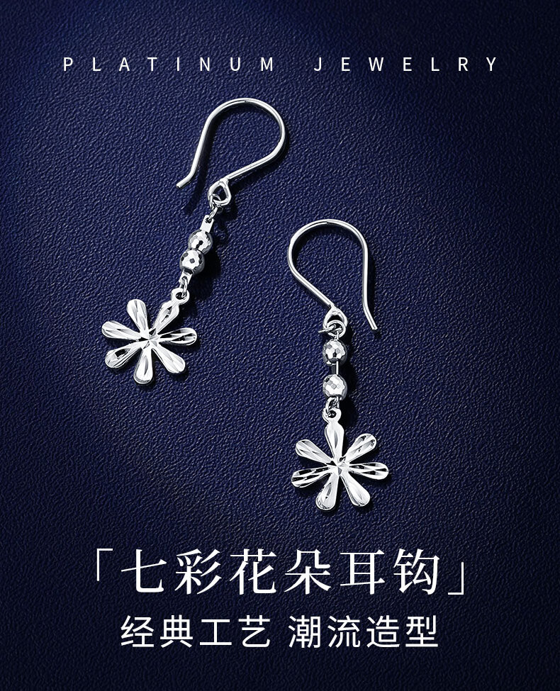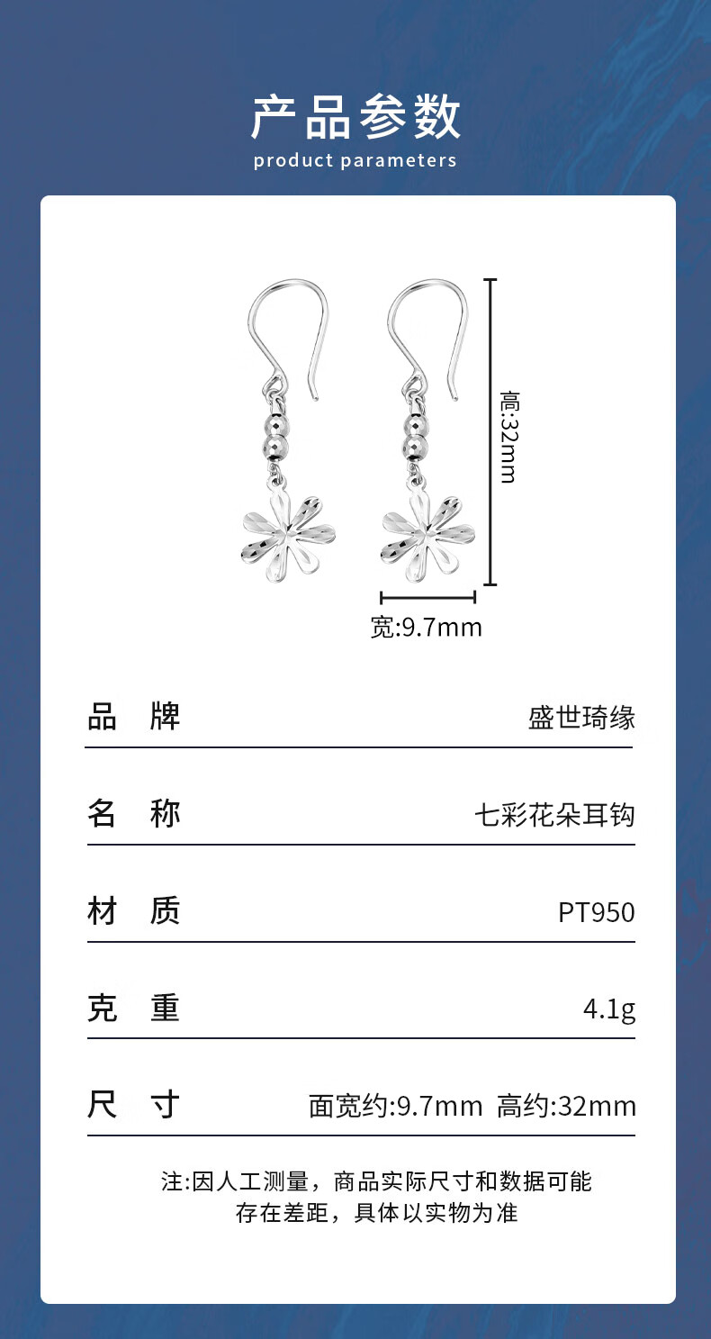 Shengshi Qiyuan platinum earrings pt950 genuine platinum earrings, earrings and buckles, colorful flower ear hooks birthday gift for girlfriend, colorful flower ear hooks 1.96 g (pair)