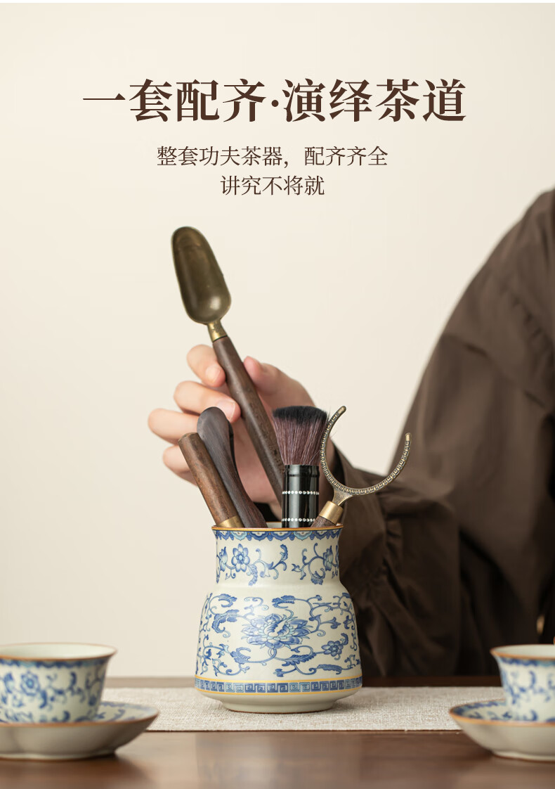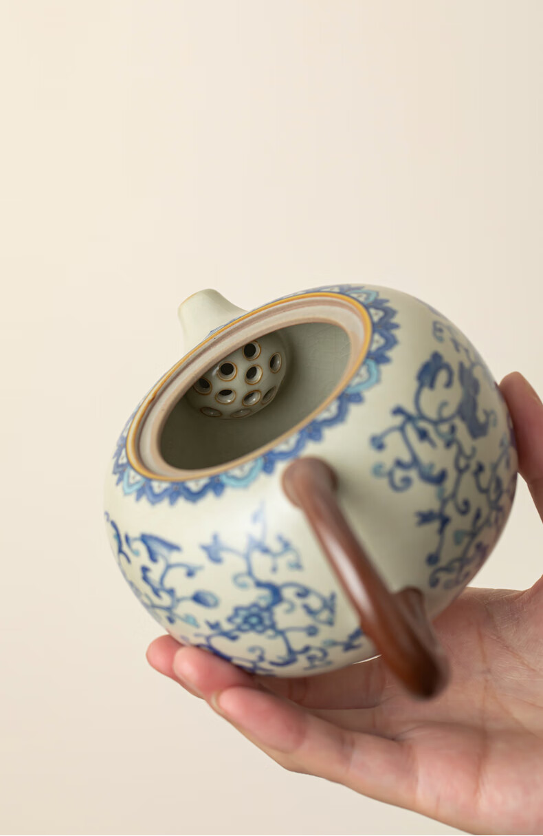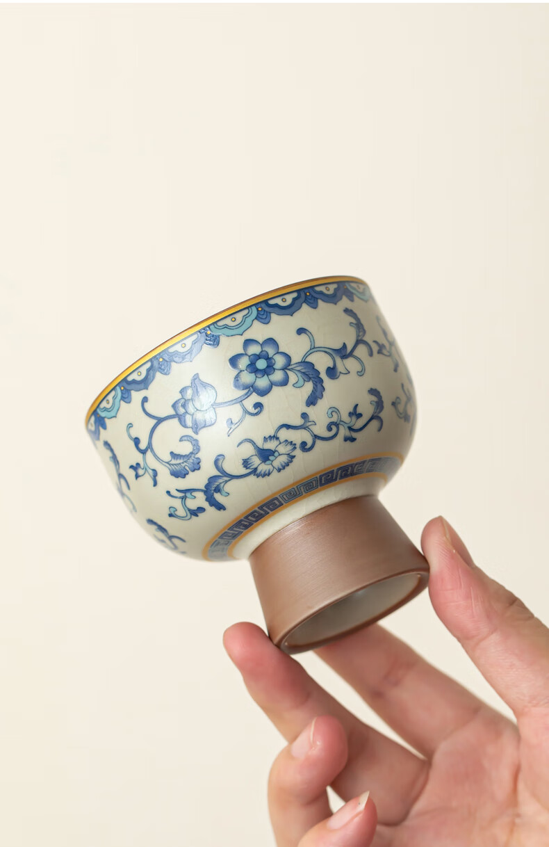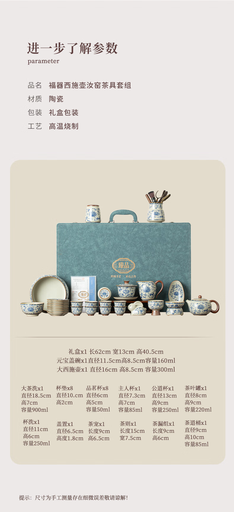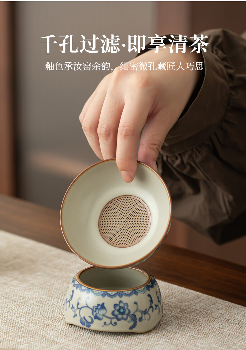 Fantu Ru Kiln Kung Fu Tea Set Hover Cover Bowl Xi Shi Complete Set of Tea Cups and Teapots Light Luxury High-end Master Class Gift Box Fu Xi Shi Pot Blue and White Lotus-Bell Cup Large Set 30 Pieces
