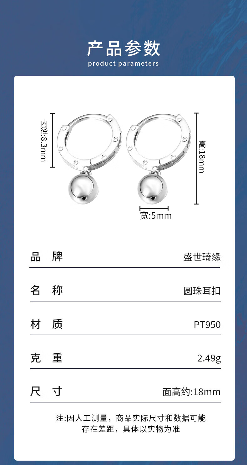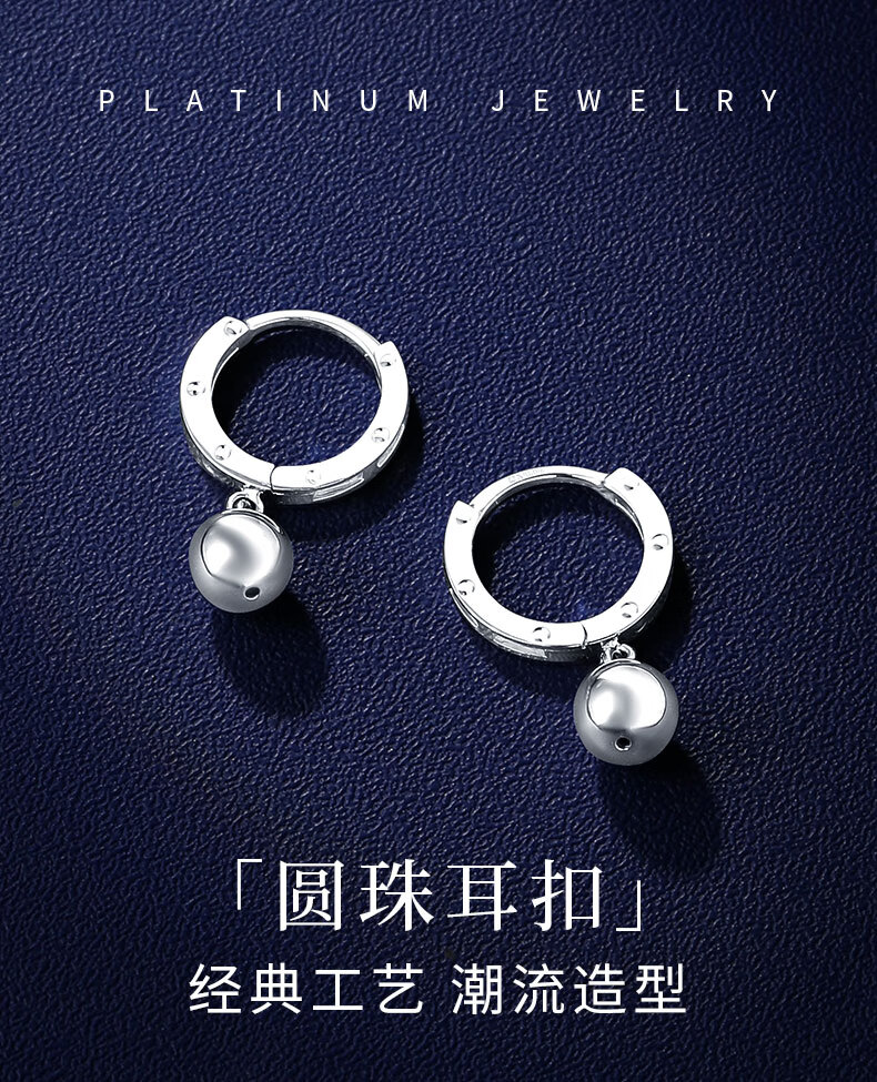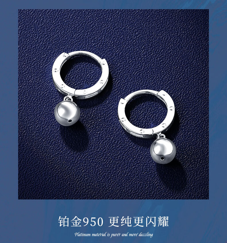 Shengshi Qiyuan platinum earrings pt950 genuine platinum earrings, ear rings, ear hooks, platinum ball earrings, birthday gifts for girlfriend, ball earrings 2.21g (pair)