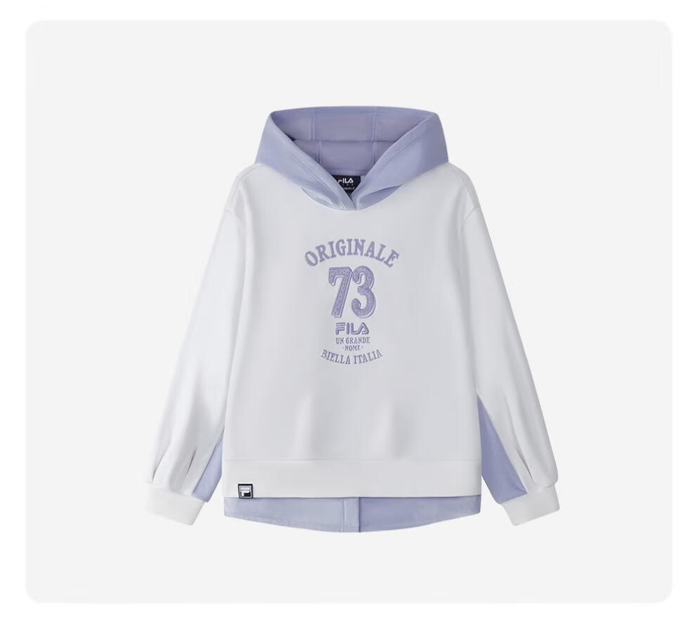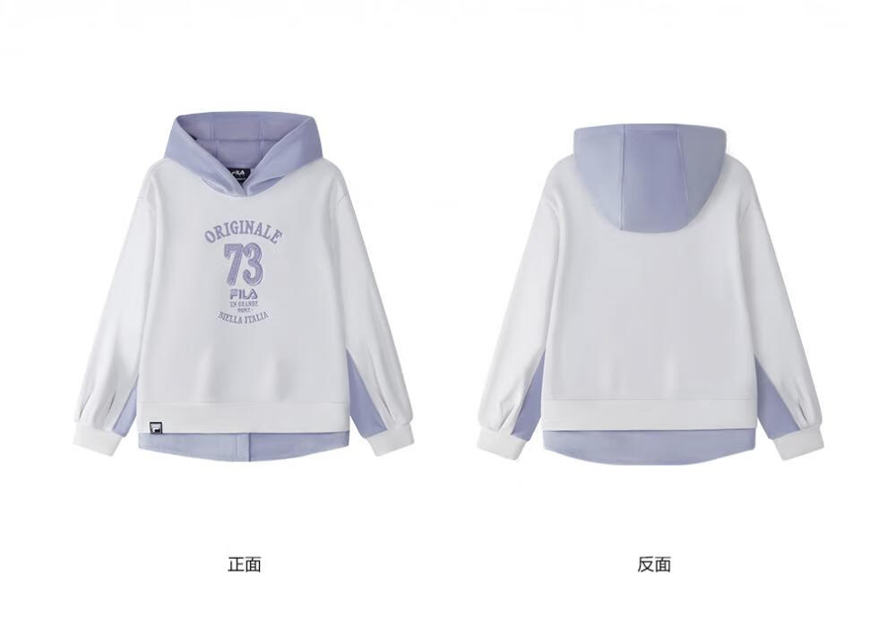 FILA KIDS Children's Clothing Girls' Sweaters 2025 Winter New Children's Comfortable Velvet Hooded Tops Official Authentic Standard White-WT M 140c