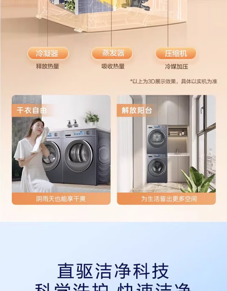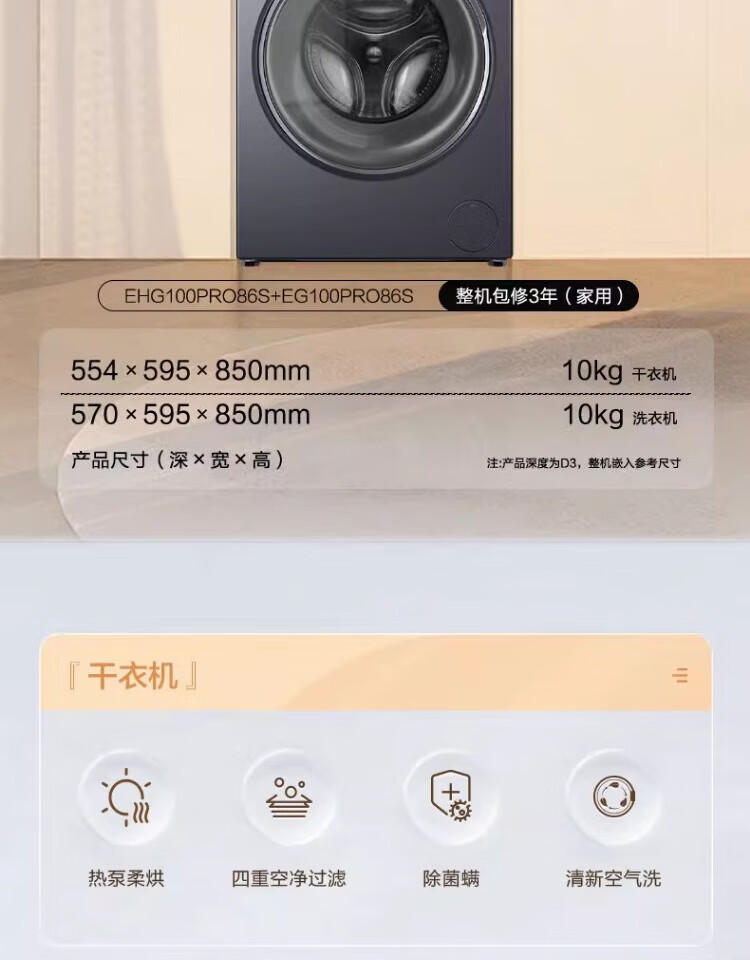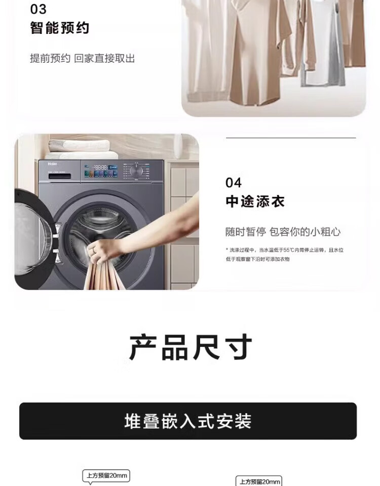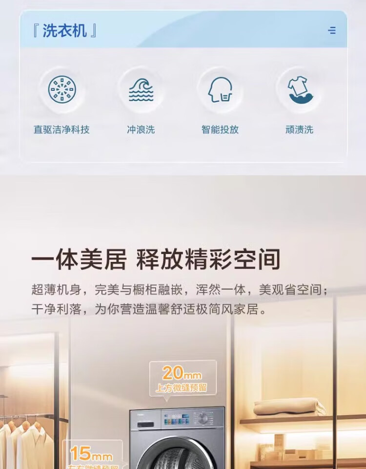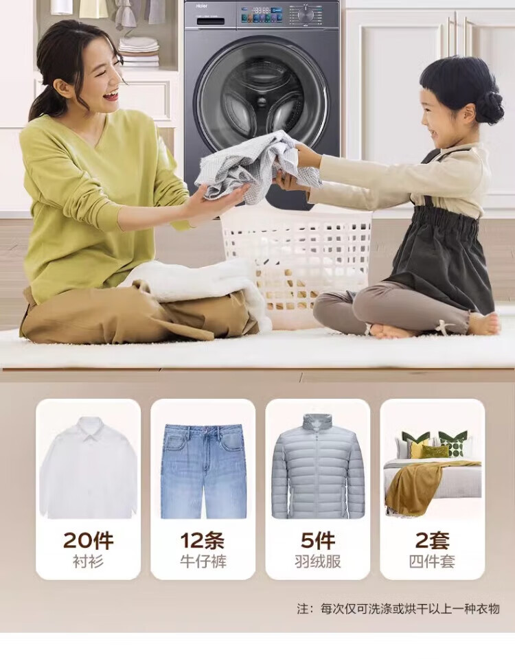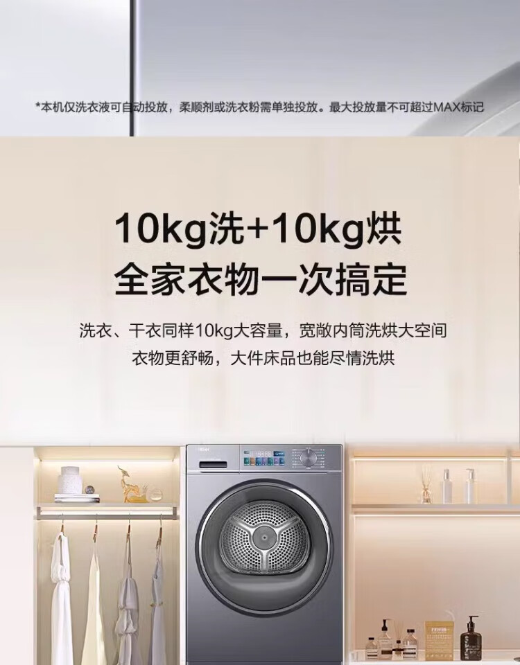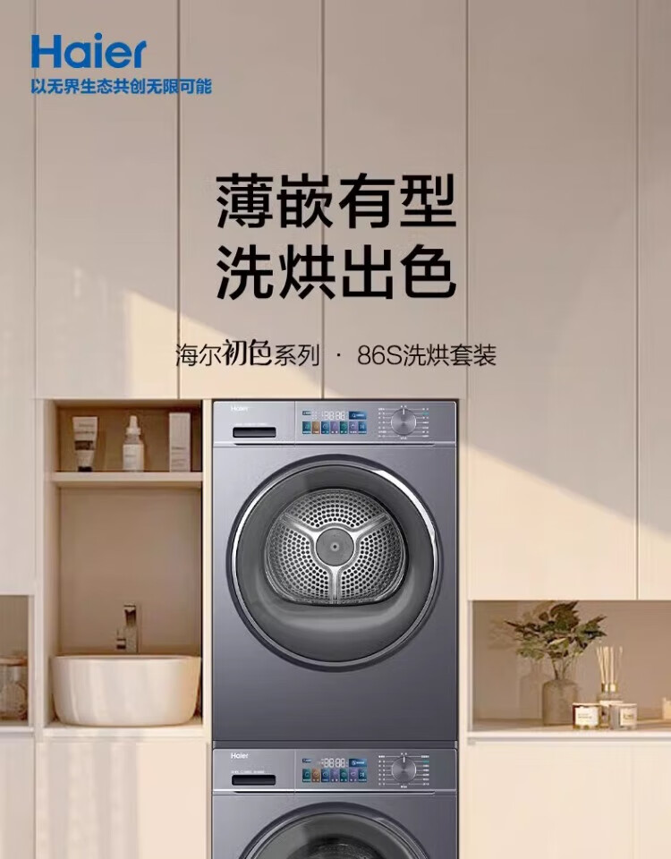 Haier washing machine washing and drying set with drying and washing and drying integrated 10 kg direct drive ultra-thin embedded fully automatic drum washing machine dryer combination set Yunxi 4.0 heat pump drying 386 similar model intelligent placement + surf wash 1.1 wash ratio + stubborn stain wash + sun drying