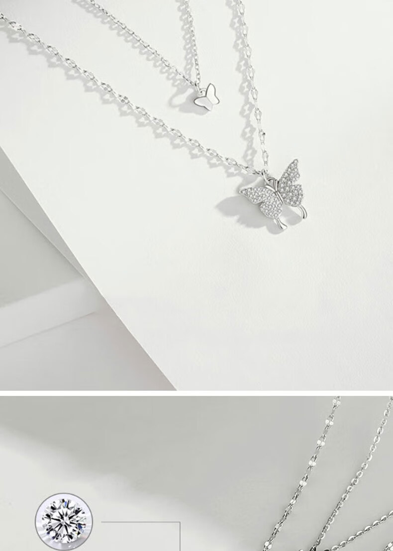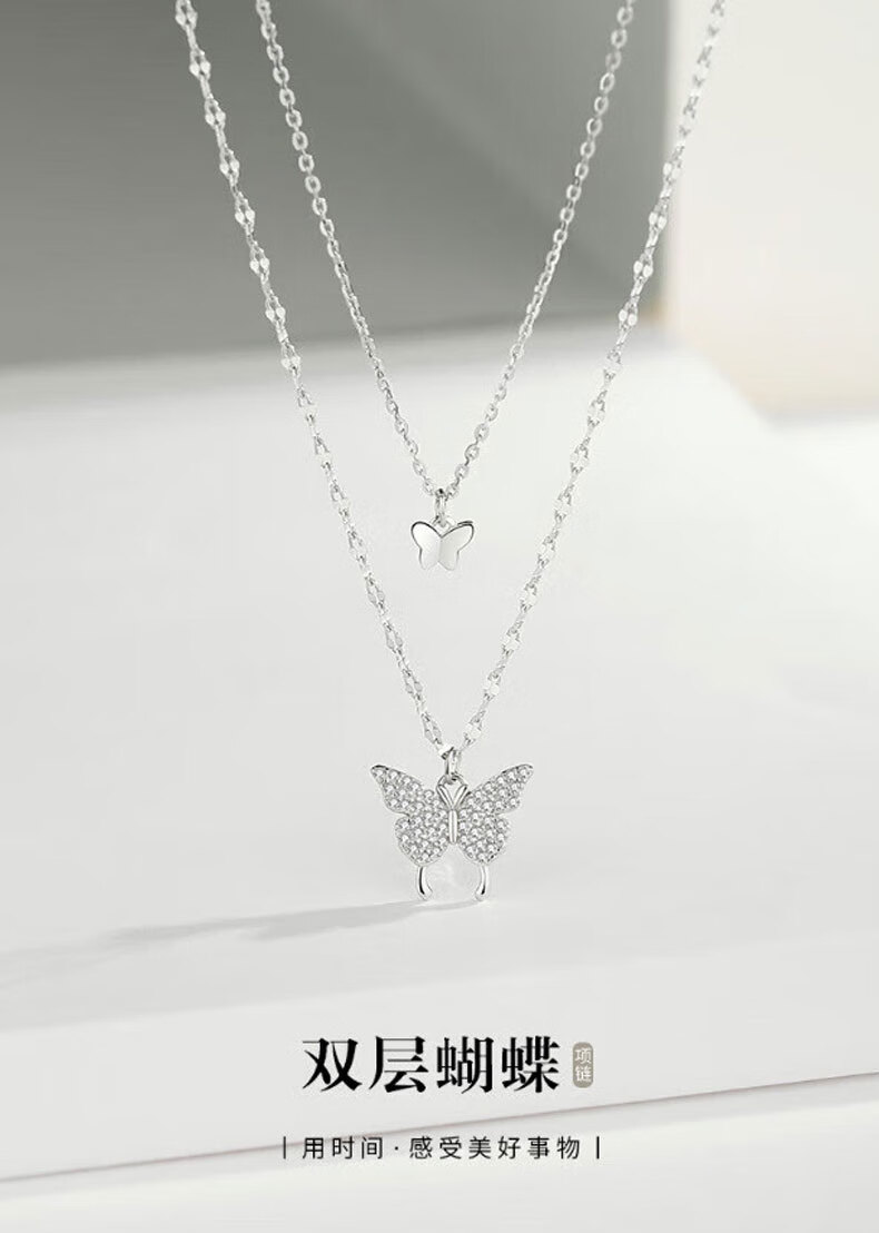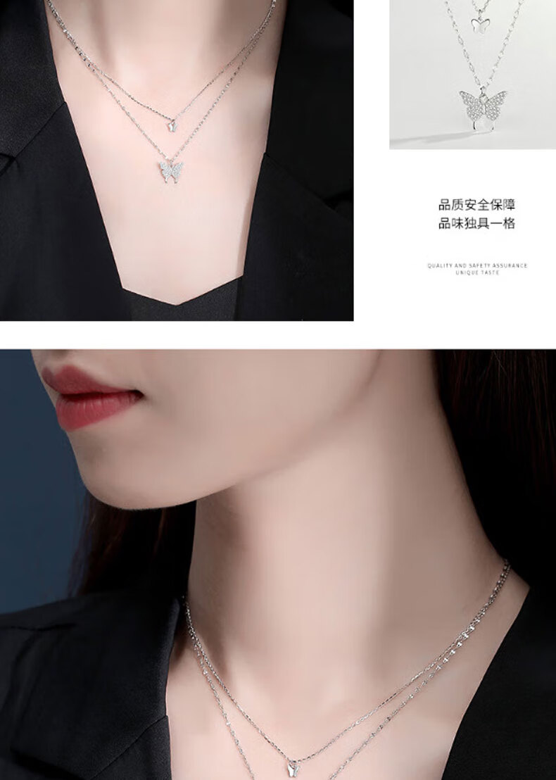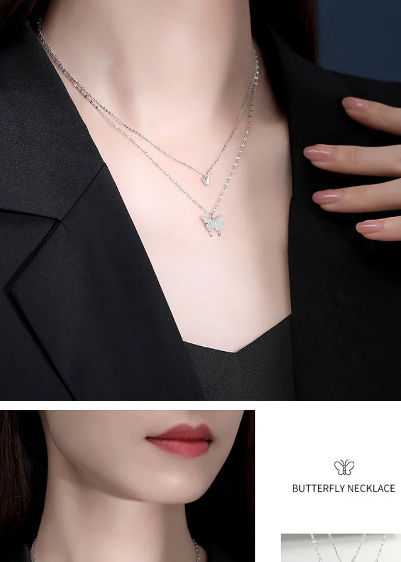 KISS CODE Double-layered Bow Necklace Women's Niche High-end Light Luxury Pendant Super Fairy Cold Style Clavicle Chain Necklace Versatile Accessories Double-layered Butterfly Necklace