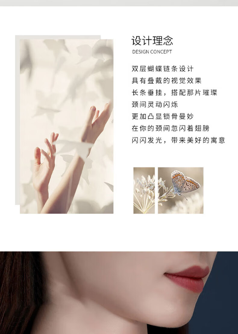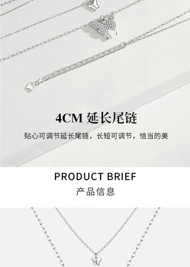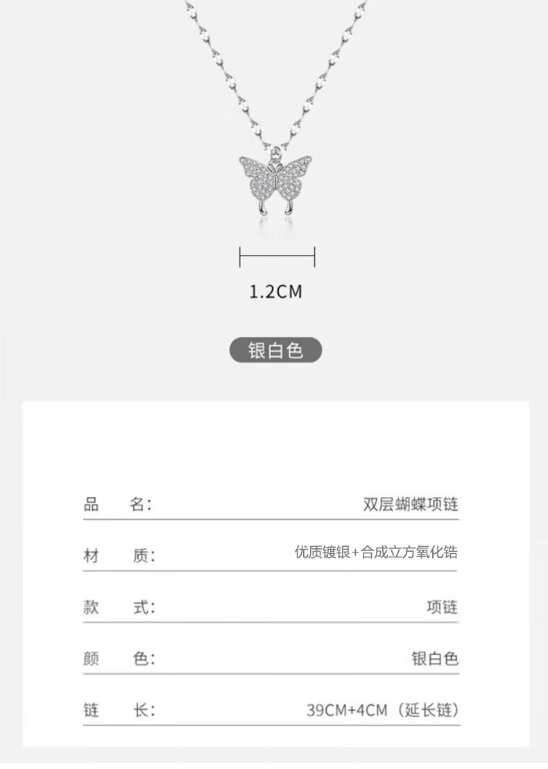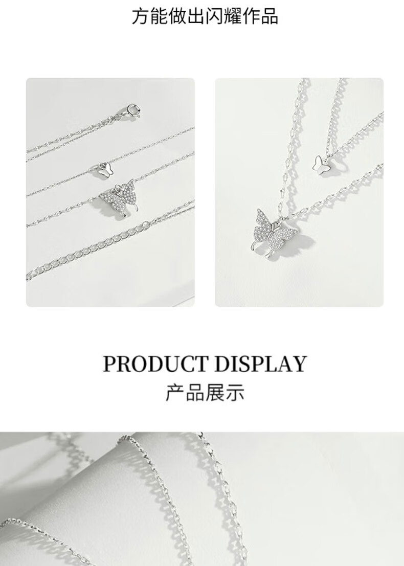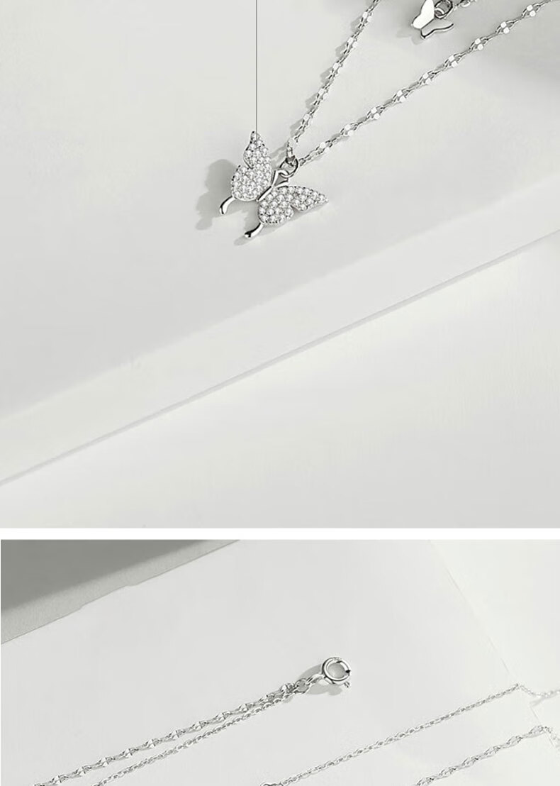 KISS CODE Double-layered Bow Necklace Women's Niche High-end Light Luxury Pendant Super Fairy Cold Style Clavicle Chain Necklace Versatile Accessories Double-layered Butterfly Necklace