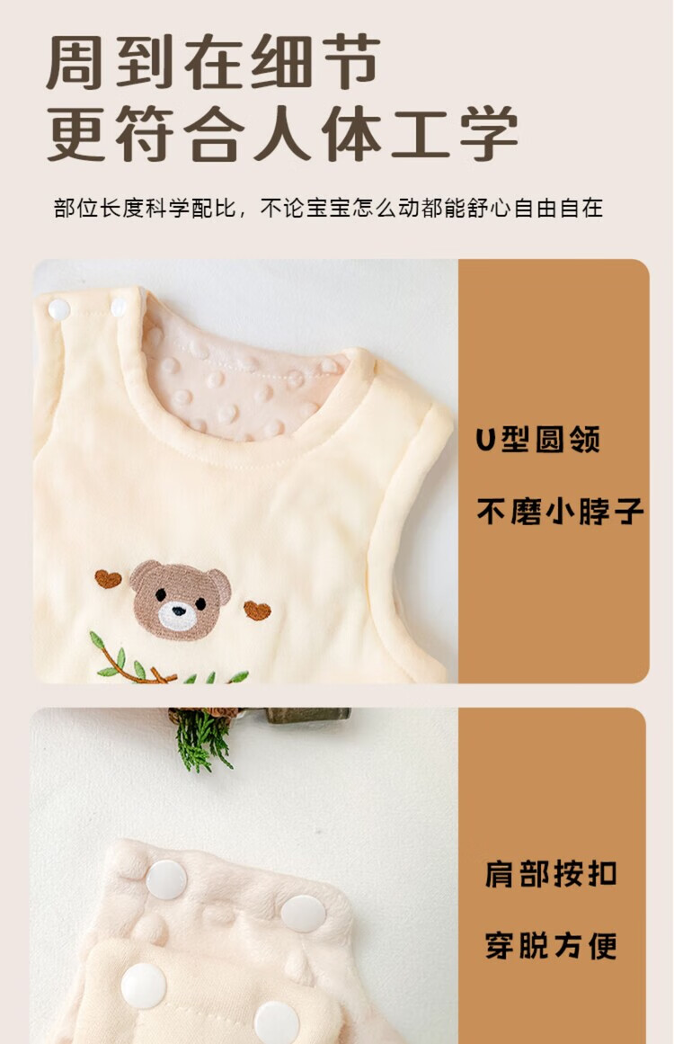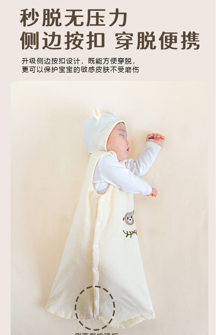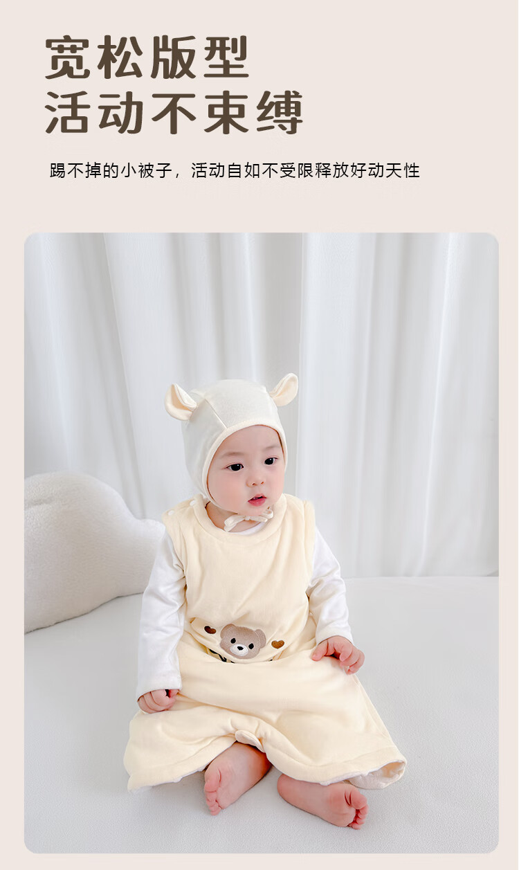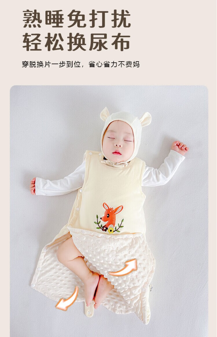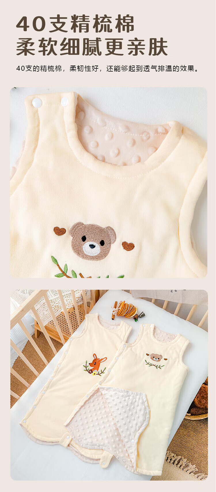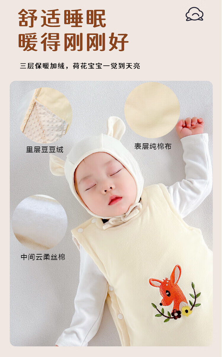 Baby sleeping bag autumn and winter quilted baby sleeping bag thickened anti-kick quilt sleeveless vest newborn belly protection pure cotton Senyu Xilu One size fits for height 60-90cm Recommended age 0-2 years