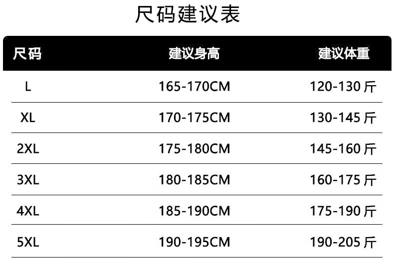 China (cm) 165 / 88-90 170 / 96-98 175 / 108-110 180 / 118-122 185 / 126-130
