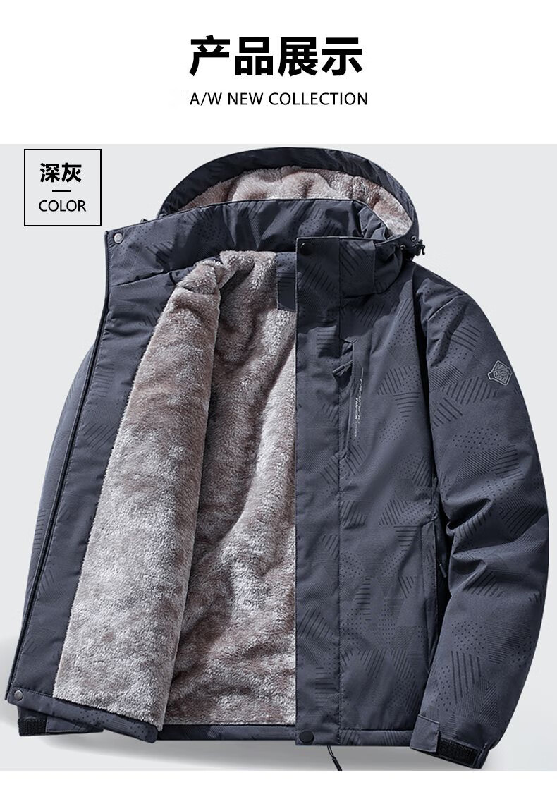 ROMON 2025 new velvet cotton coat winter thickened warm middle-aged casual cotton jacket men's windproof and waterproof cotton jacket dark gray 2XL recommended 145-160Jin Jin equals 0.5 kg