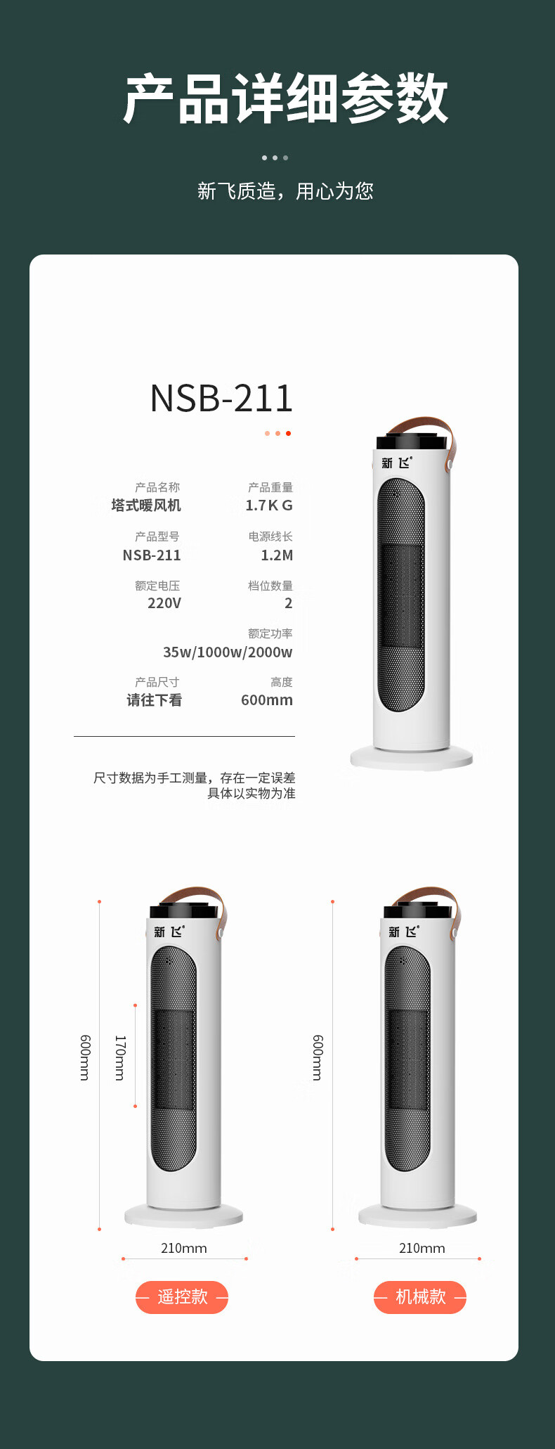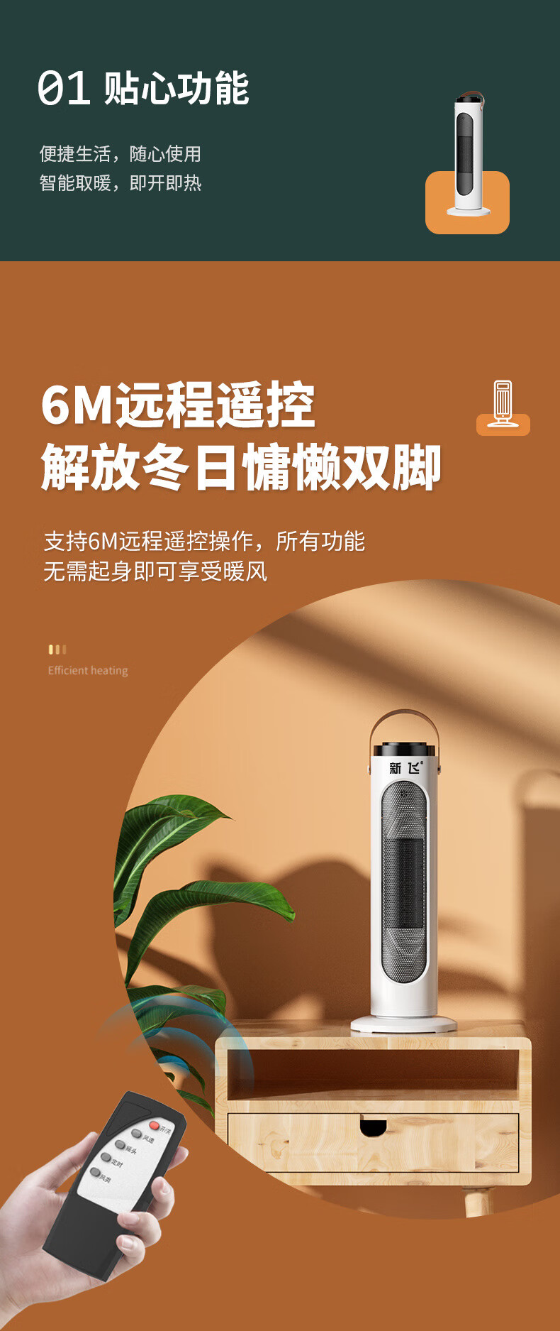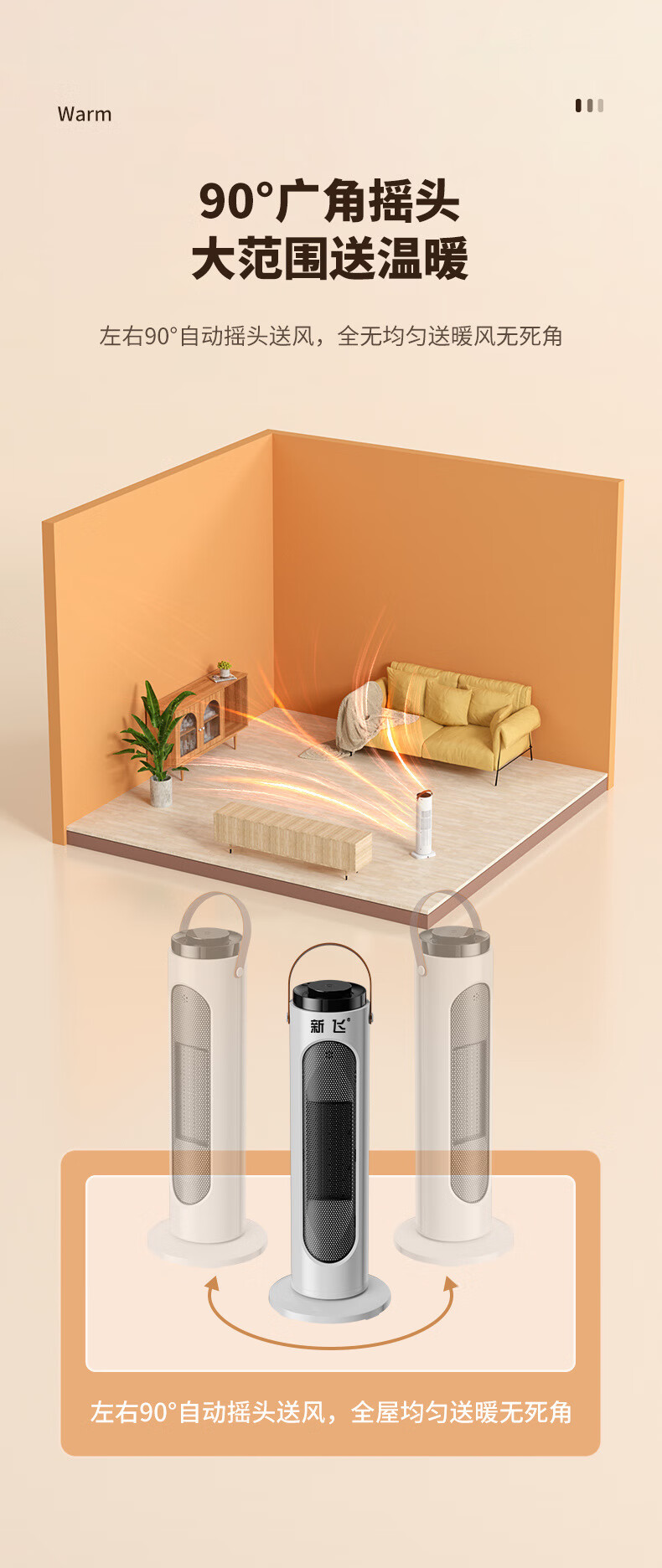 Xinfei heater household electric fan energy-saving office small vertical bathroom heating machine - no shaking head