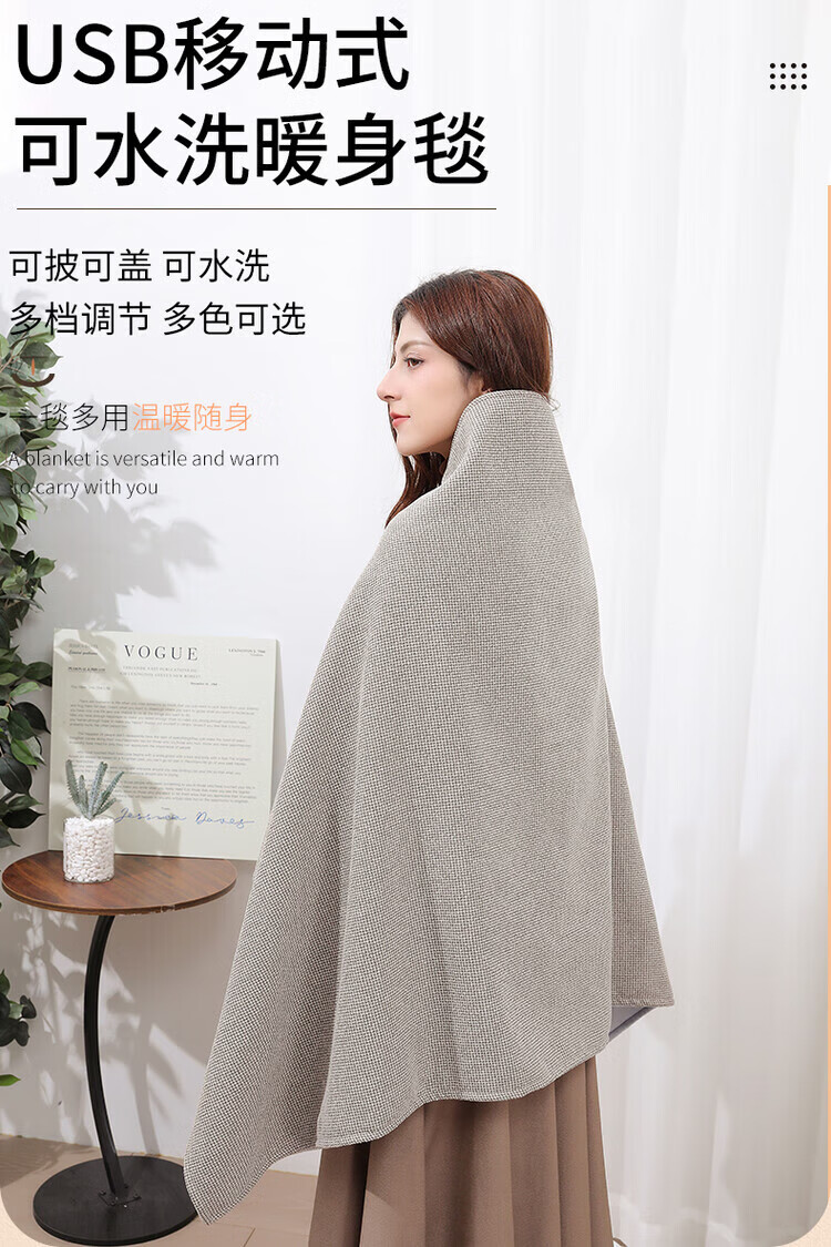 Zhechu German electric blanket leg warmer office heating artifact heated warm blanket shawl fever children snowflake apricot 145_85cm 15S fast heating and fast delivery