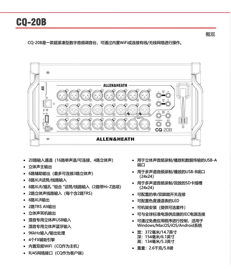 ALLEN&HEATH/Allen Heath CQ-12T/18T/20B compact digital mixer band performance live broadcast CQ-12T