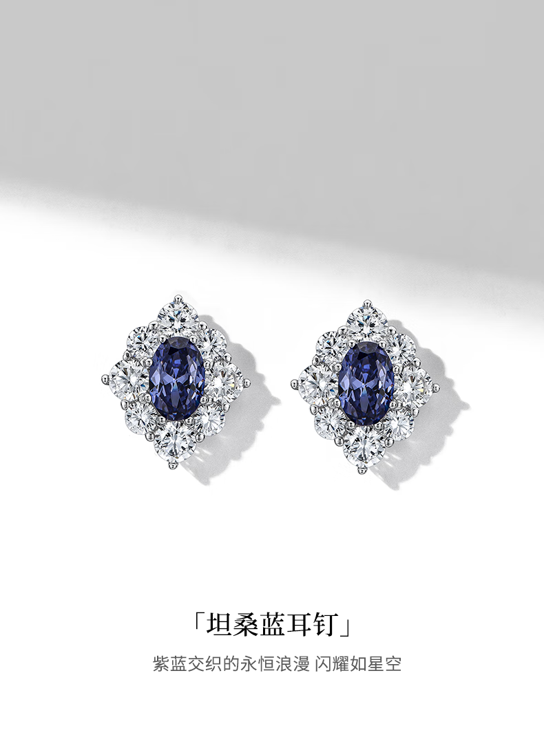 BAIQIUJIA Star Language 925 Silver Tanzanite Blue Gemstone Necklace Ear Stud Ring Women's Set Chinese Valentine's Day Gift Star Language Set Necklace Ear Stud Ring
