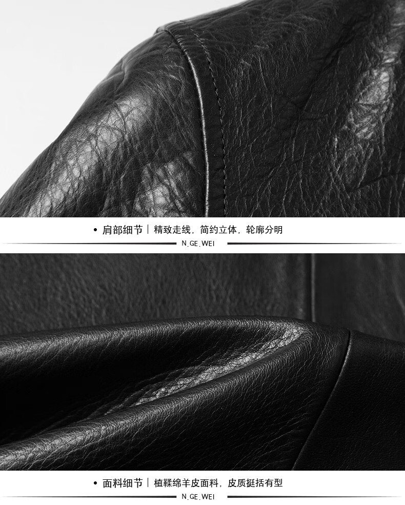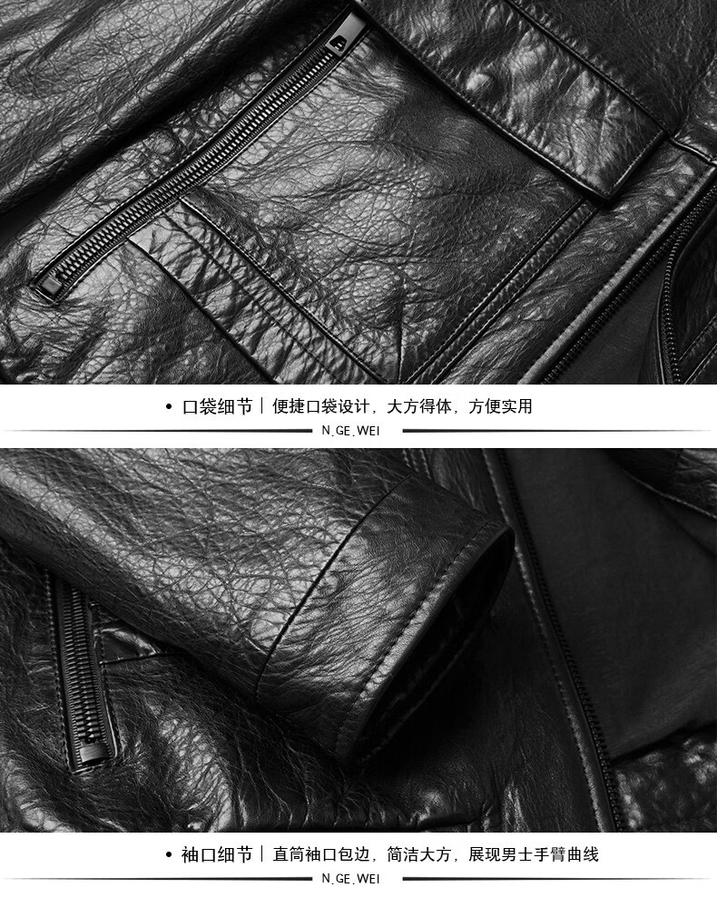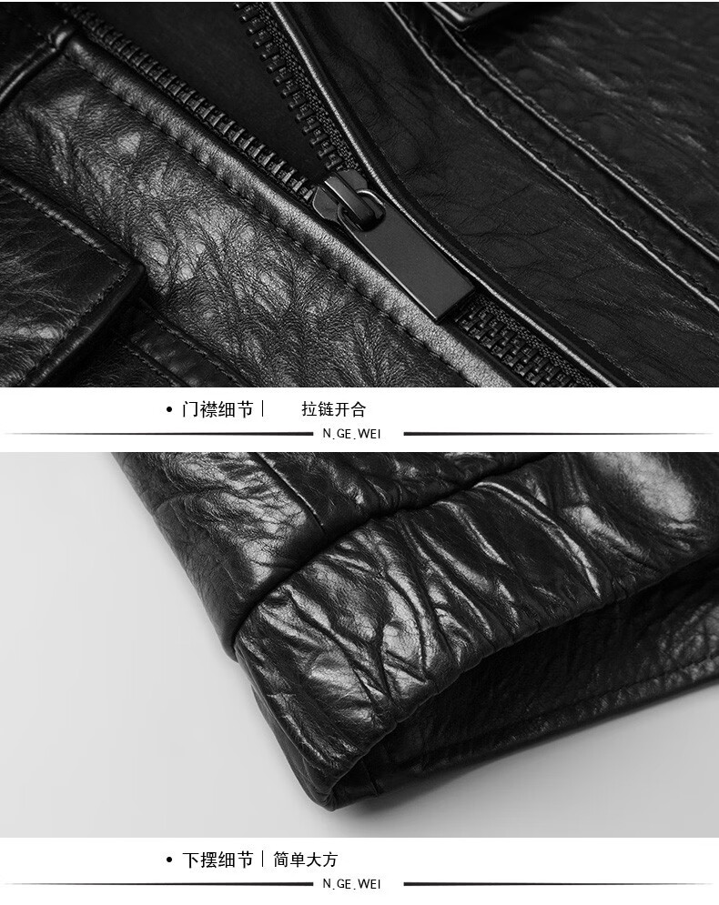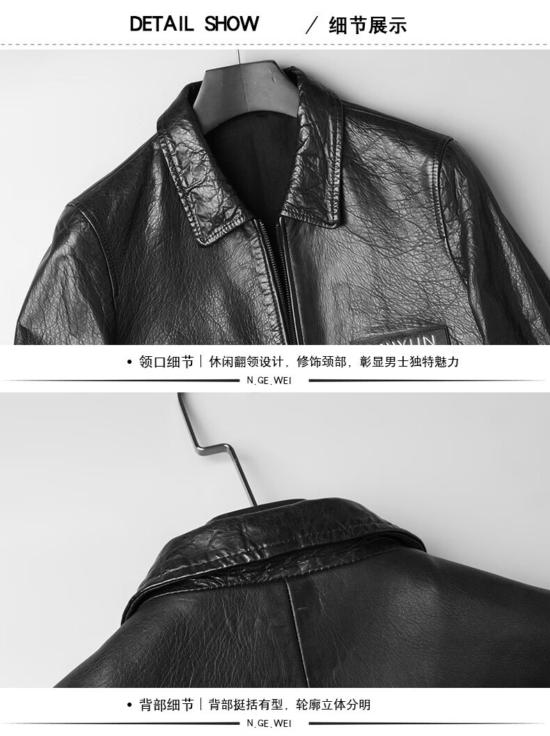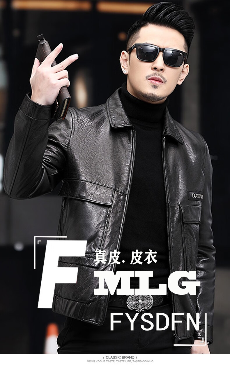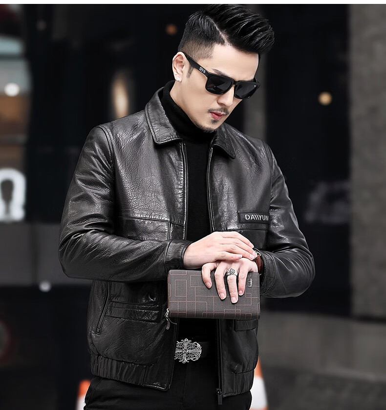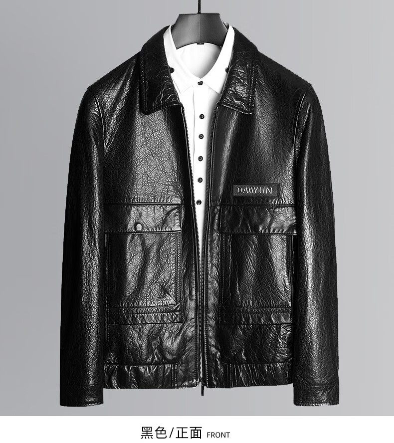 KBXNG劲霸2025春秋新款海宁皮衣男短款修身薄款翻领皮夹克男皮衣服休闲 黑色 M 165 (90~115)斤