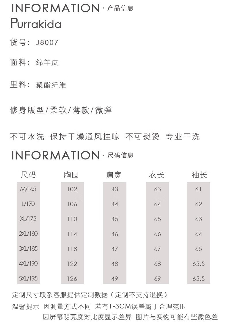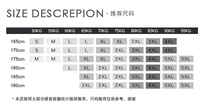 China (cm) 165 / 88-90 170 / 96-98 175 / 108-110 180 / 118-122 185 / 126-130