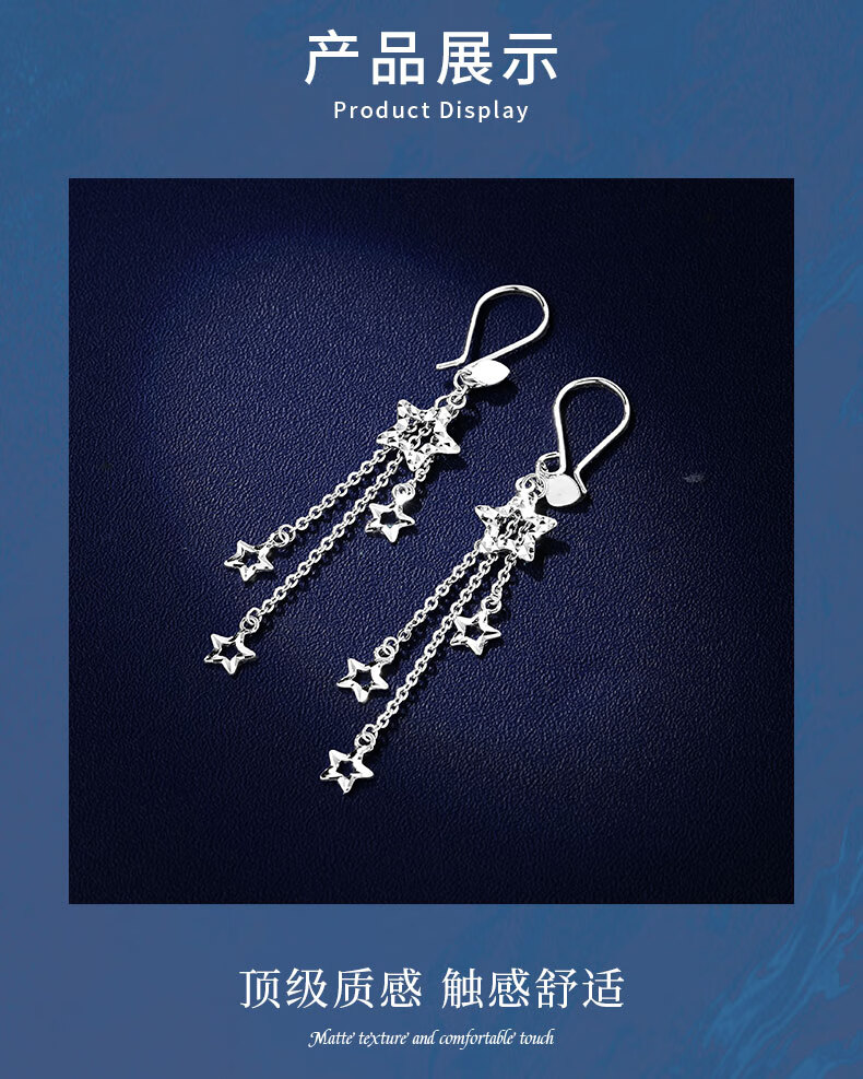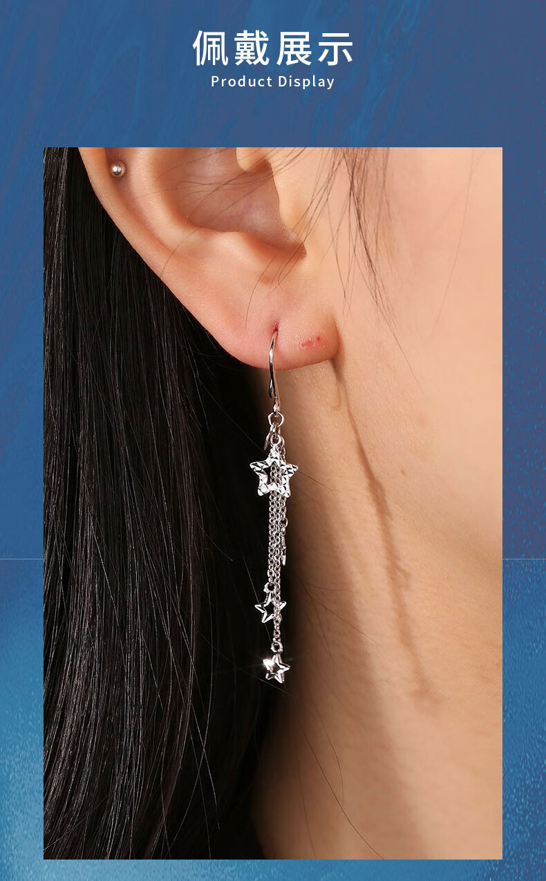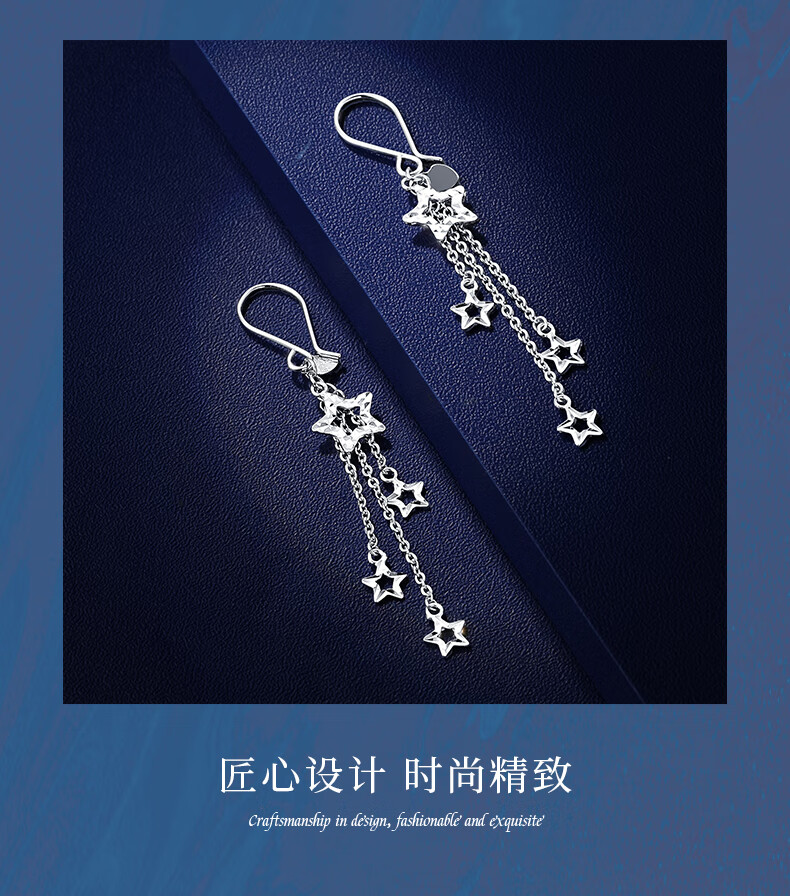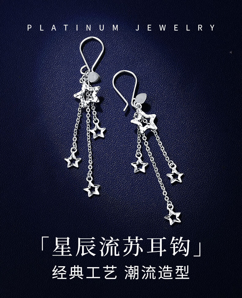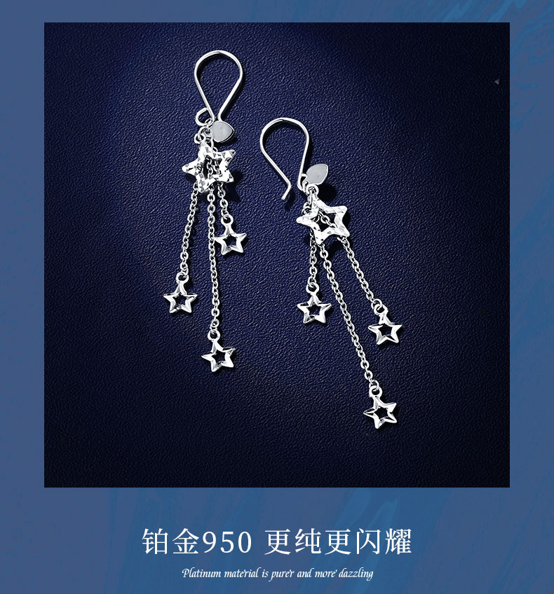 Shengshi Qiyuan platinum earrings pt950 genuine platinum earrings earrings ear buckles star tassel ear hooks birthday gift for girlfriend star tassel ear hooks 2.36 g (pair)