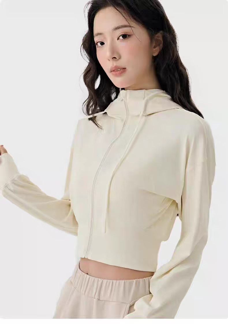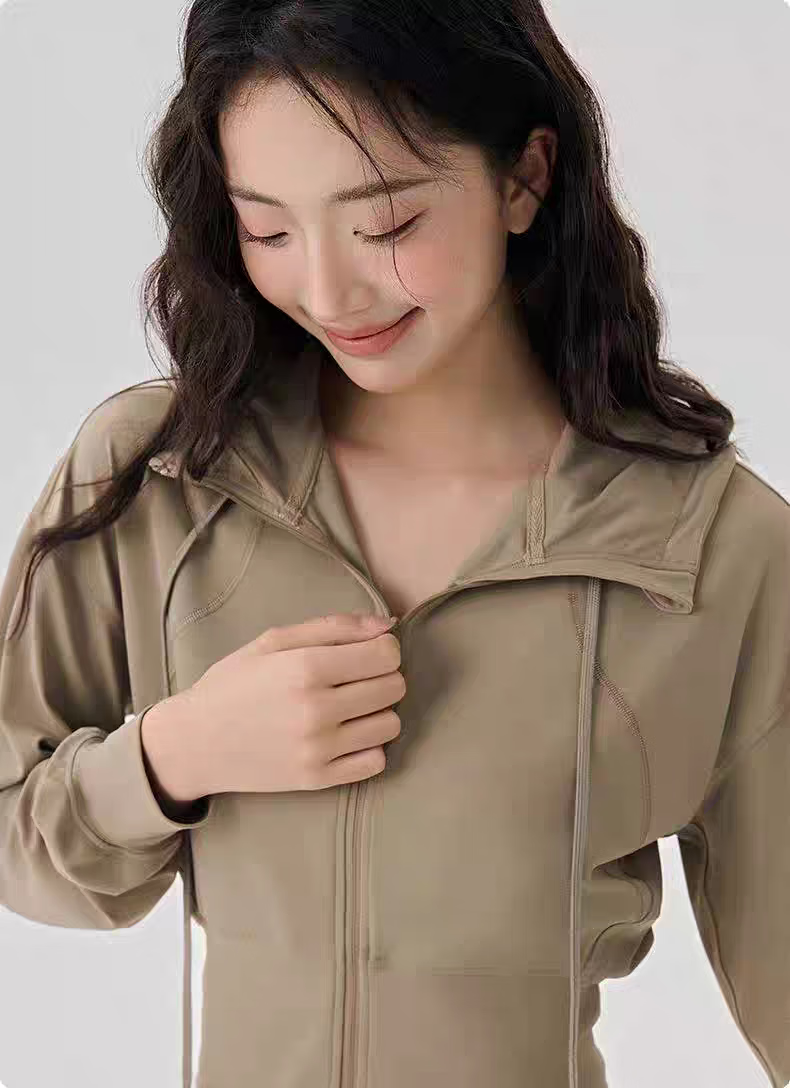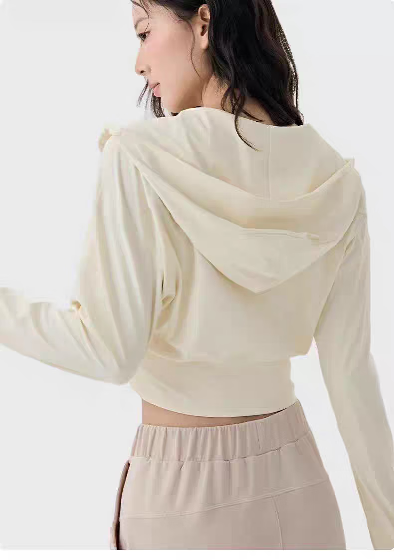 New hooded sports coat for women, loose and slim, outdoor leisure fitness long-sleeved Pilates training yoga top, cream yellow XL