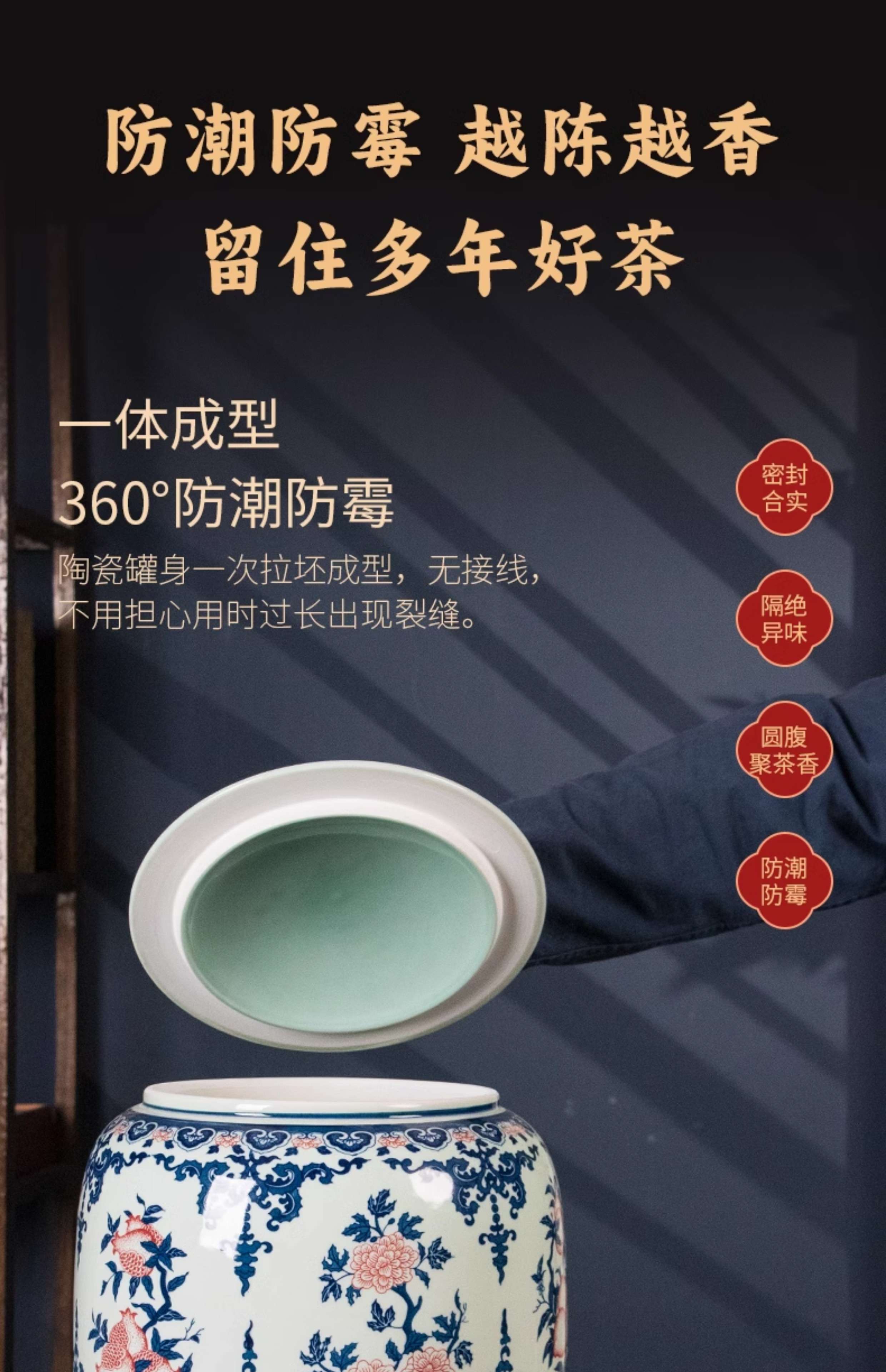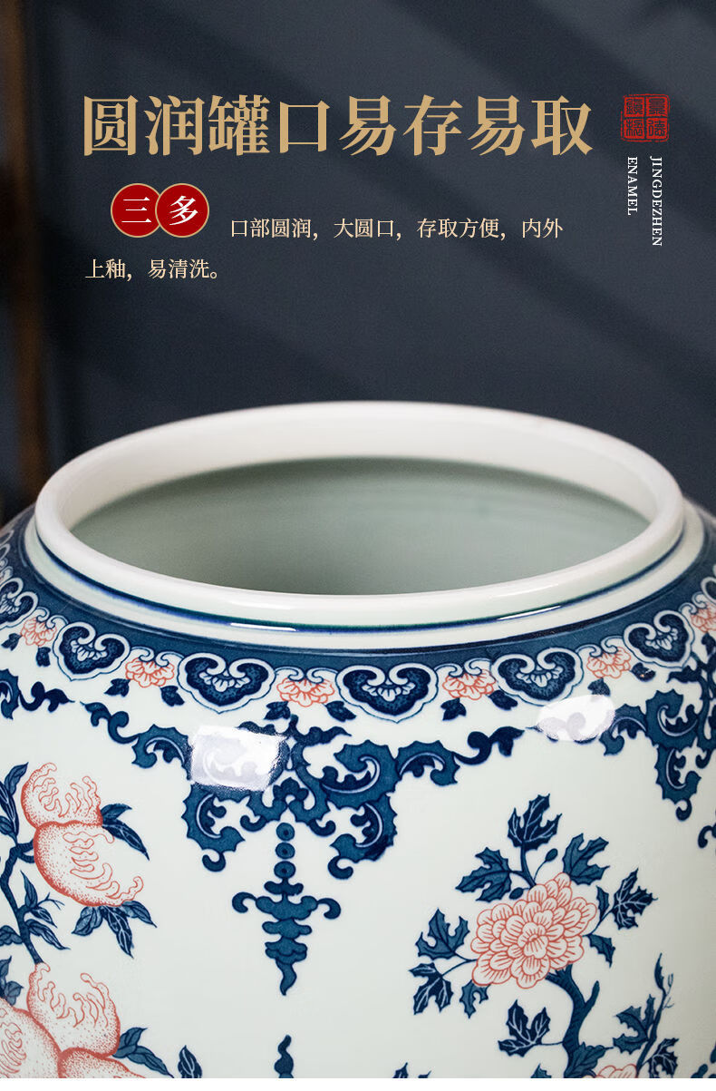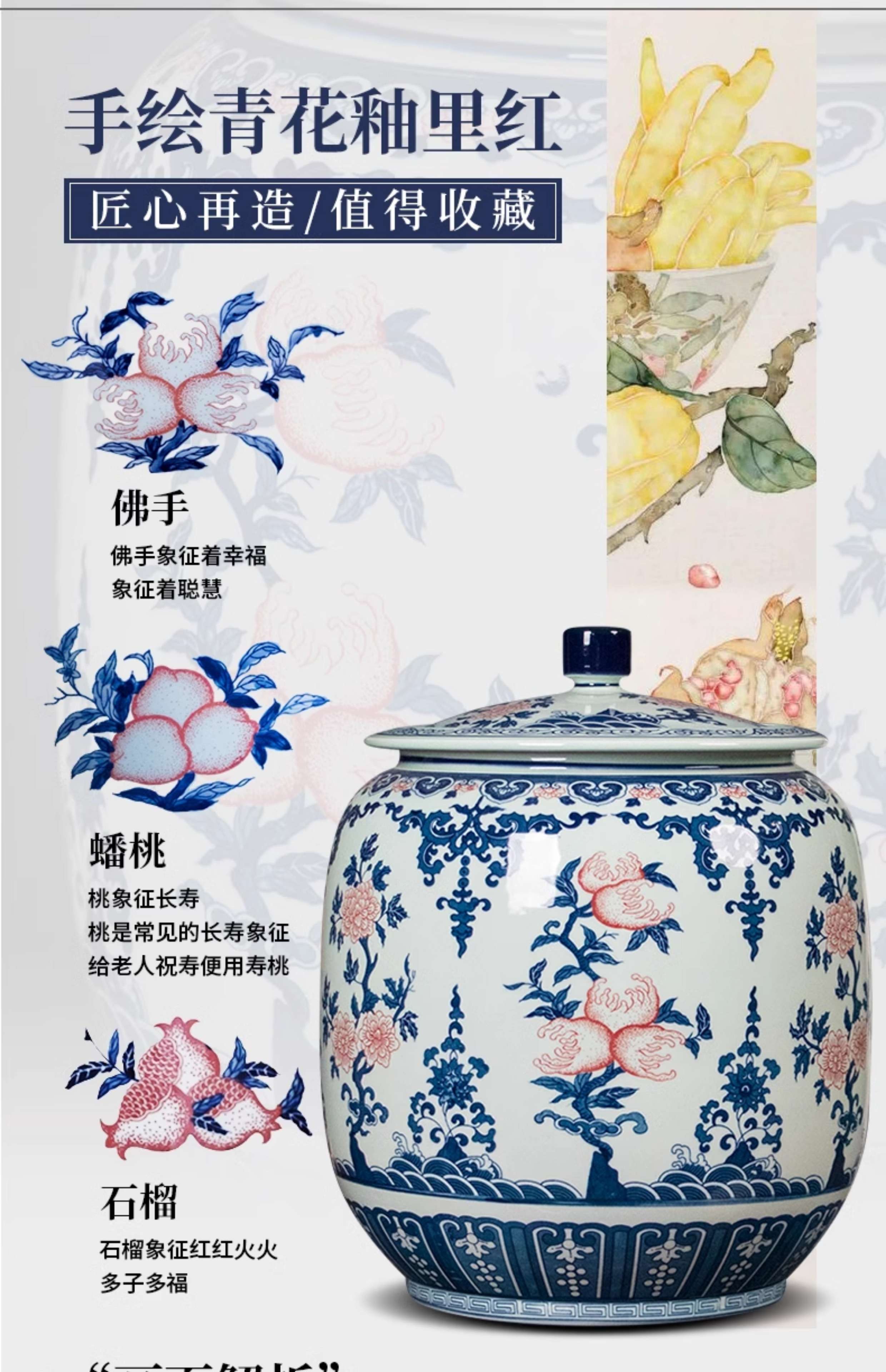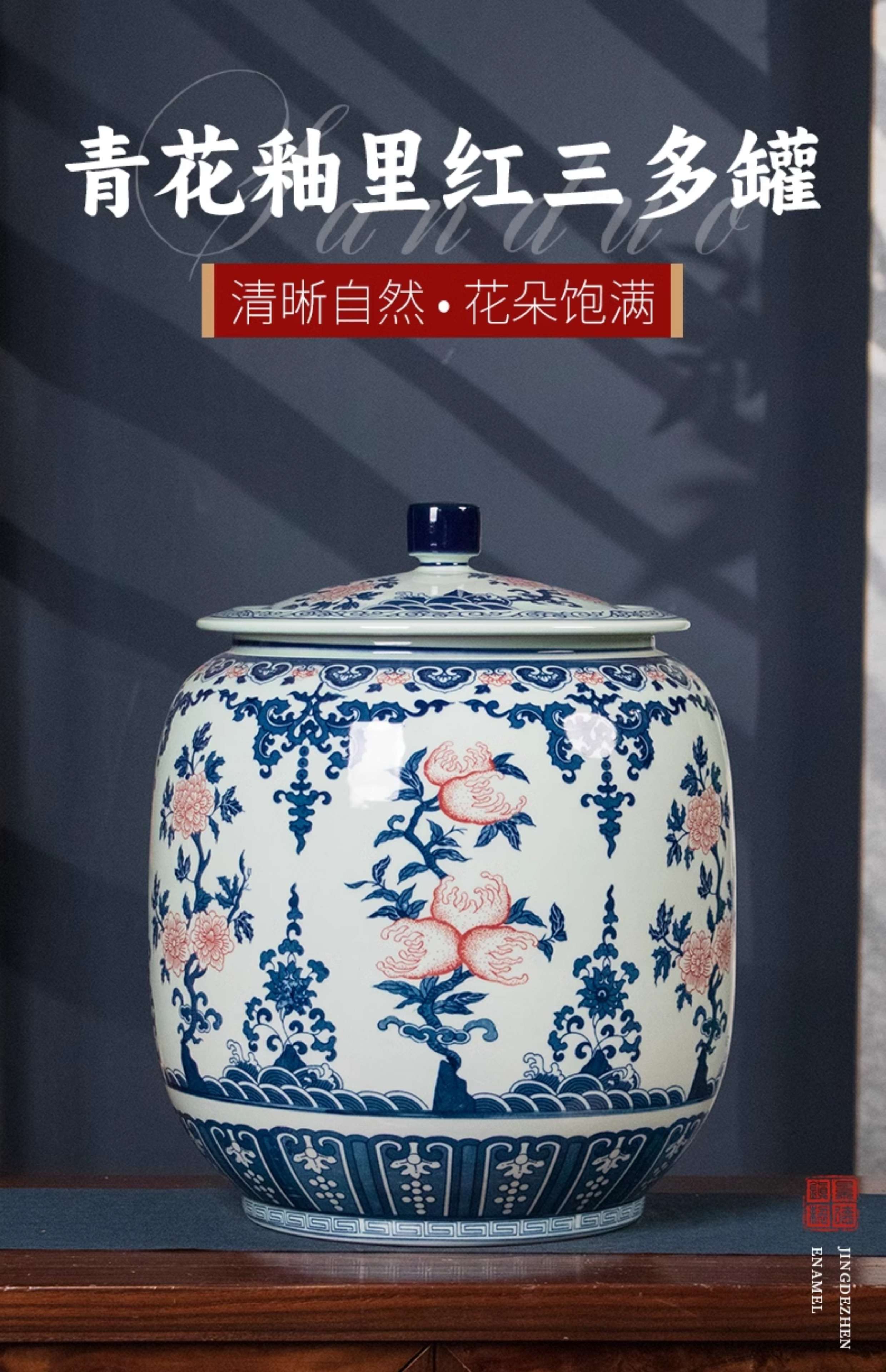 MEOD Jingdezhen ceramic rice jar Jingdezhen ceramic high-end tea jar rice cylinder noodles Flour bucket 20 Jin Jin equals 0.5 kg 30 moisture-proof 20 Jin Jin equals 0.5 kg Blue and white underglaze red blessing and longevity pattern Water capacity