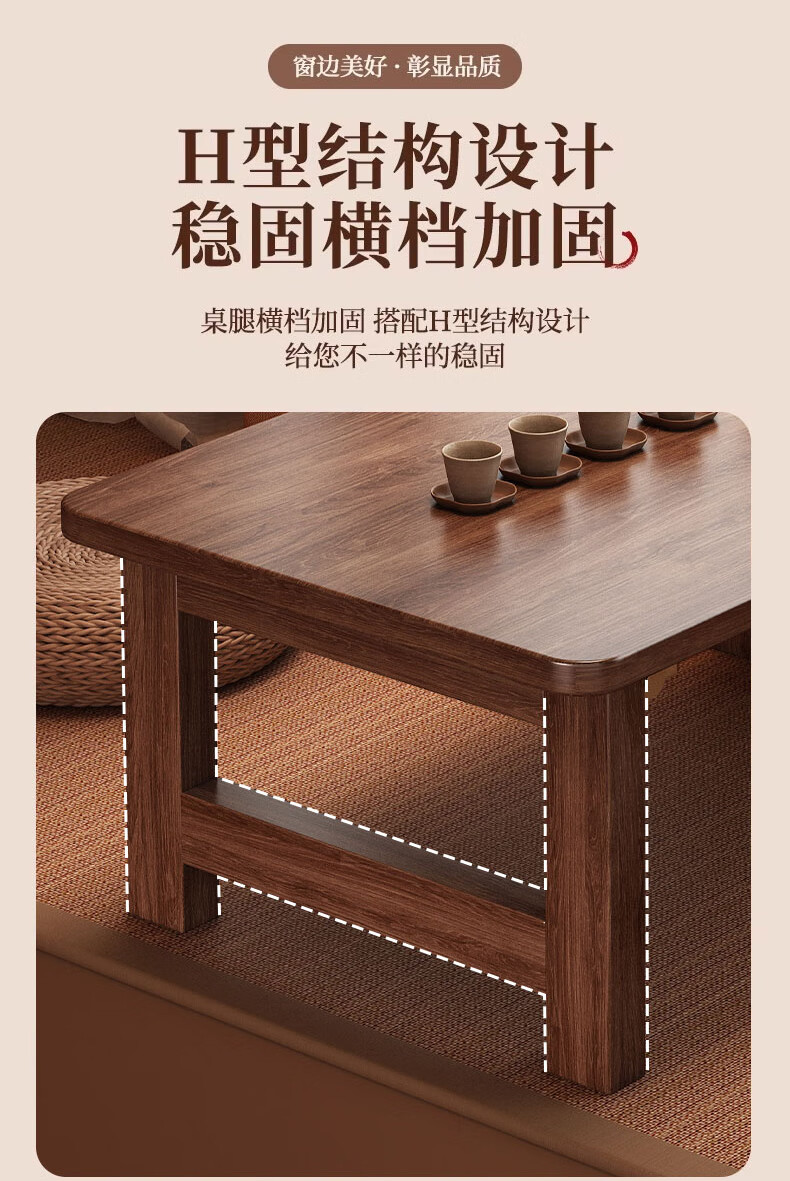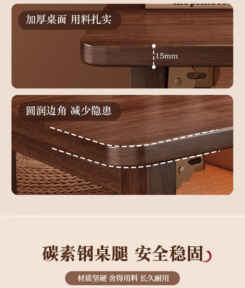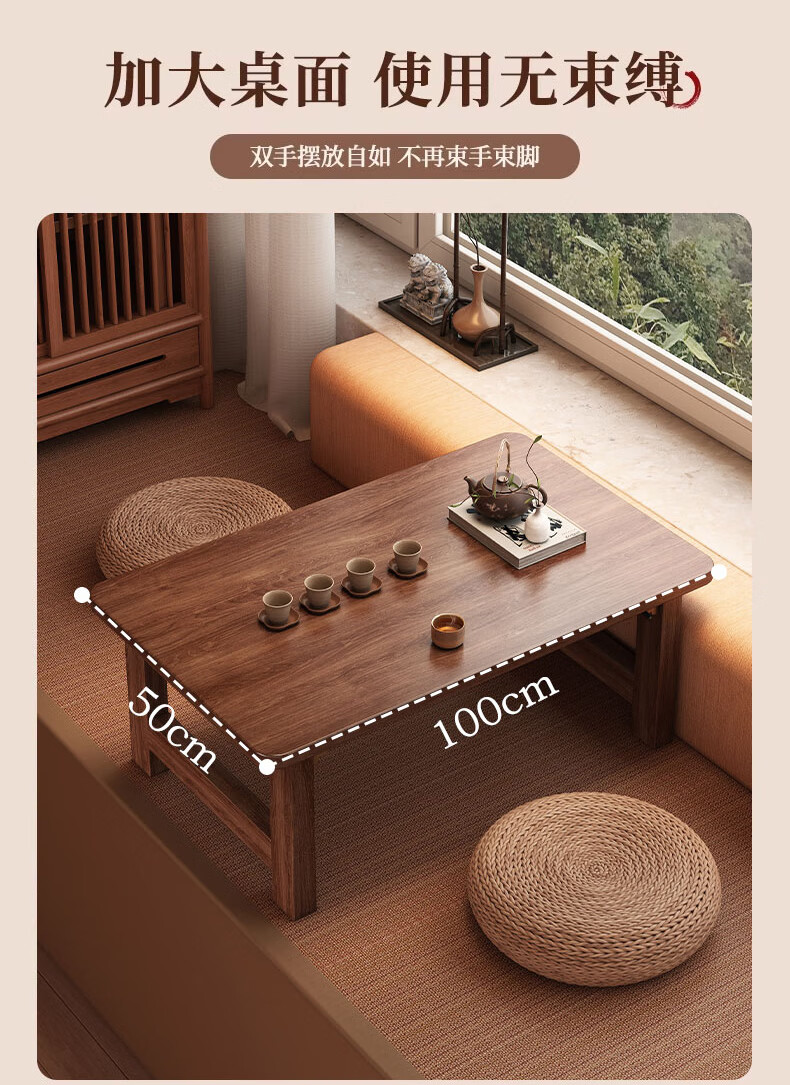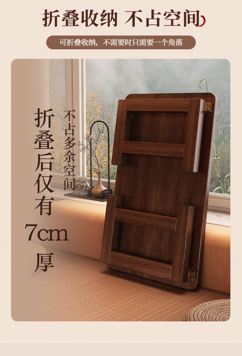 HALODN coffee table small apartment living room dining table dual-purpose foldable table simple installation-free tea table with reinforced legs small table installation-free walnut color 120*50*40cm