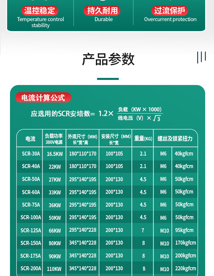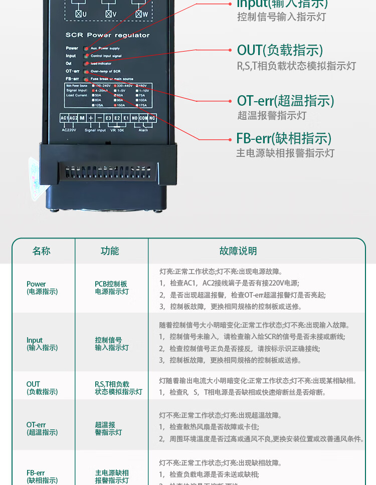 Three-phase voltage regulator controller thyristor voltage regulator electric heating temperature regulator 4-20mA control SCR power regulator SCR-200A110KW