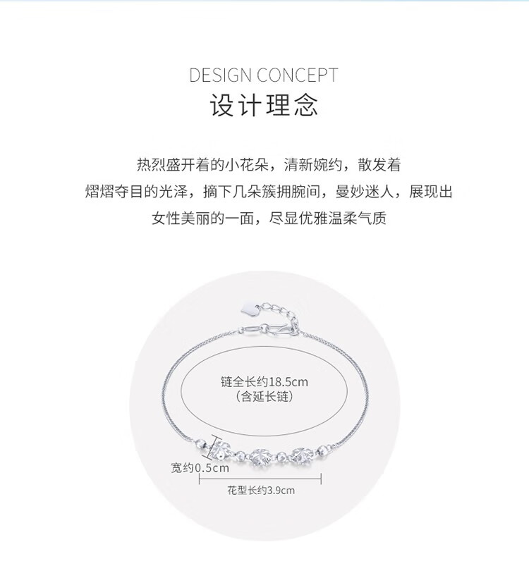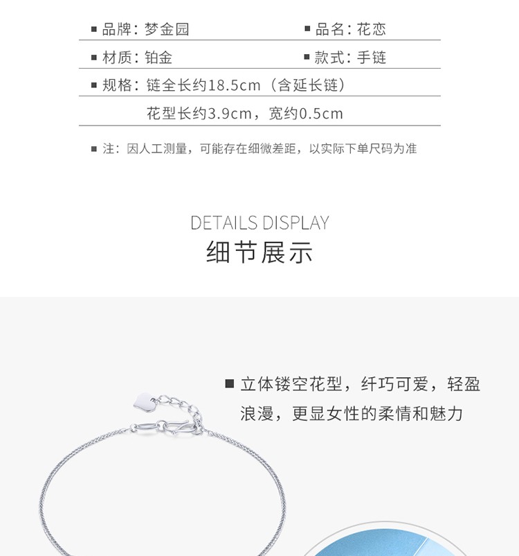 Mengjinyuan Platinum Bracelet PT950 Hollow Flower Platinum Bracelet Carved Flower Hollow Gift for Girlfriend 18cm Weight Approximately 2.58g