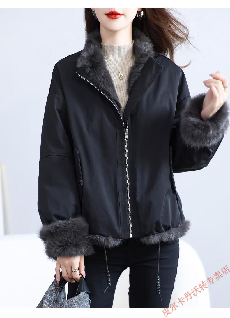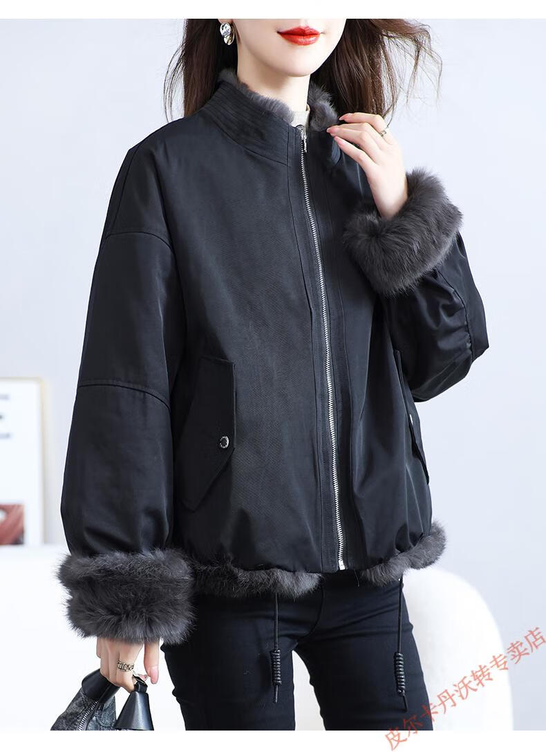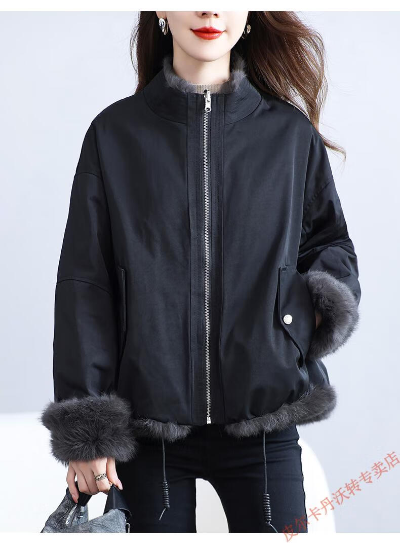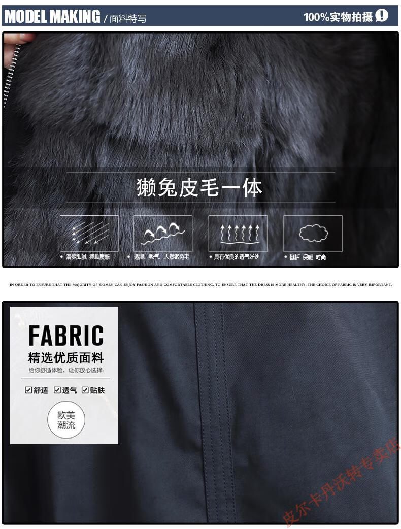 Pierre Cardin Whole Leather Genuine Rex Rabbit Fur Coat Women's 2025 Winter New Casual Western Style One-Purpose Reversible Party Overcoat Black L