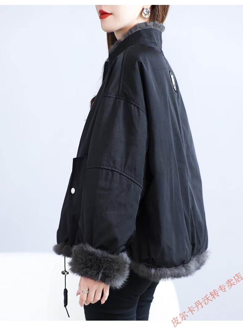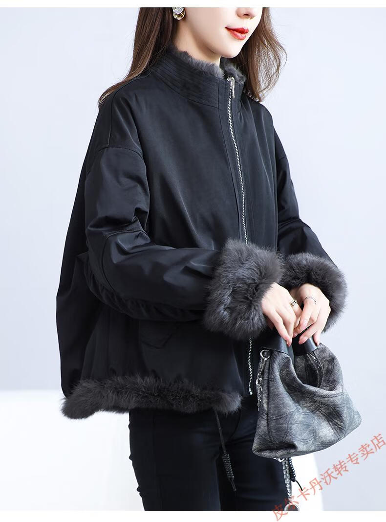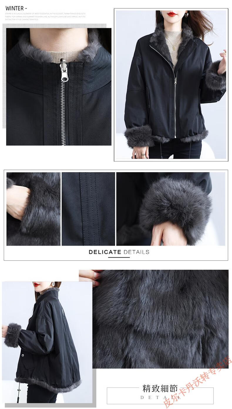 Pierre Cardin Whole Leather Genuine Rex Rabbit Fur Coat Women's 2025 Winter New Casual Western Style One-Purpose Reversible Party Overcoat Black L
