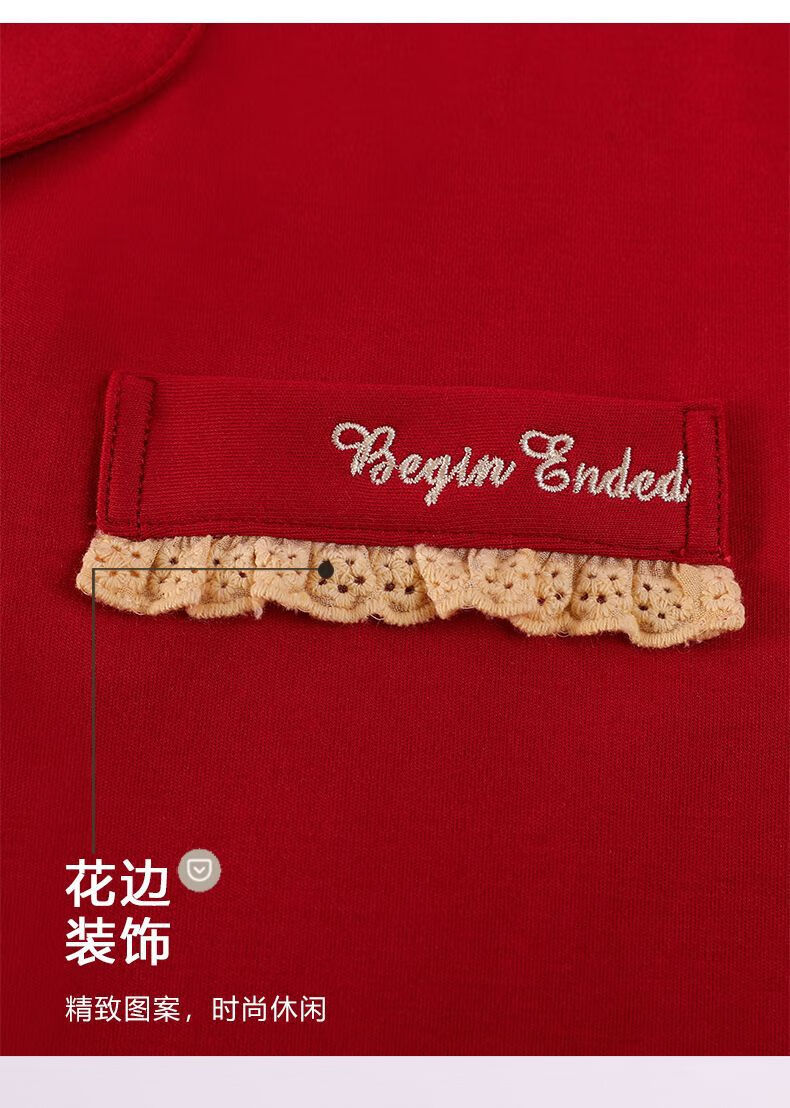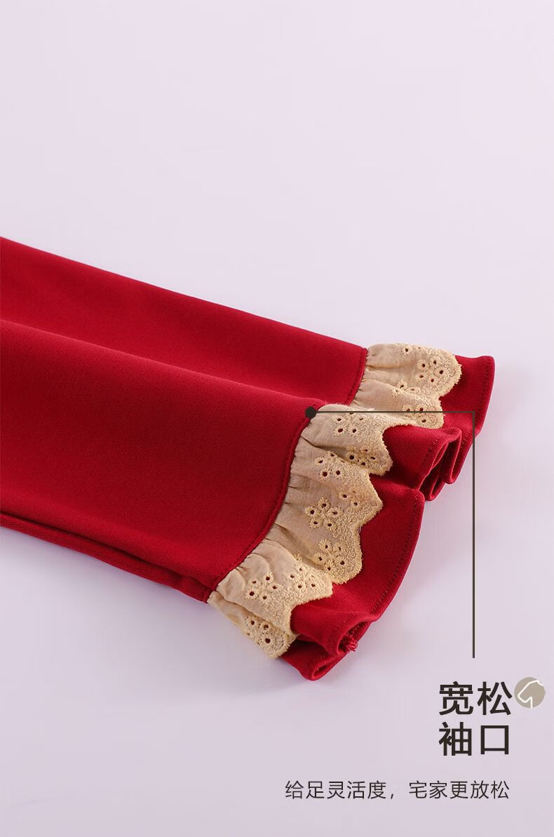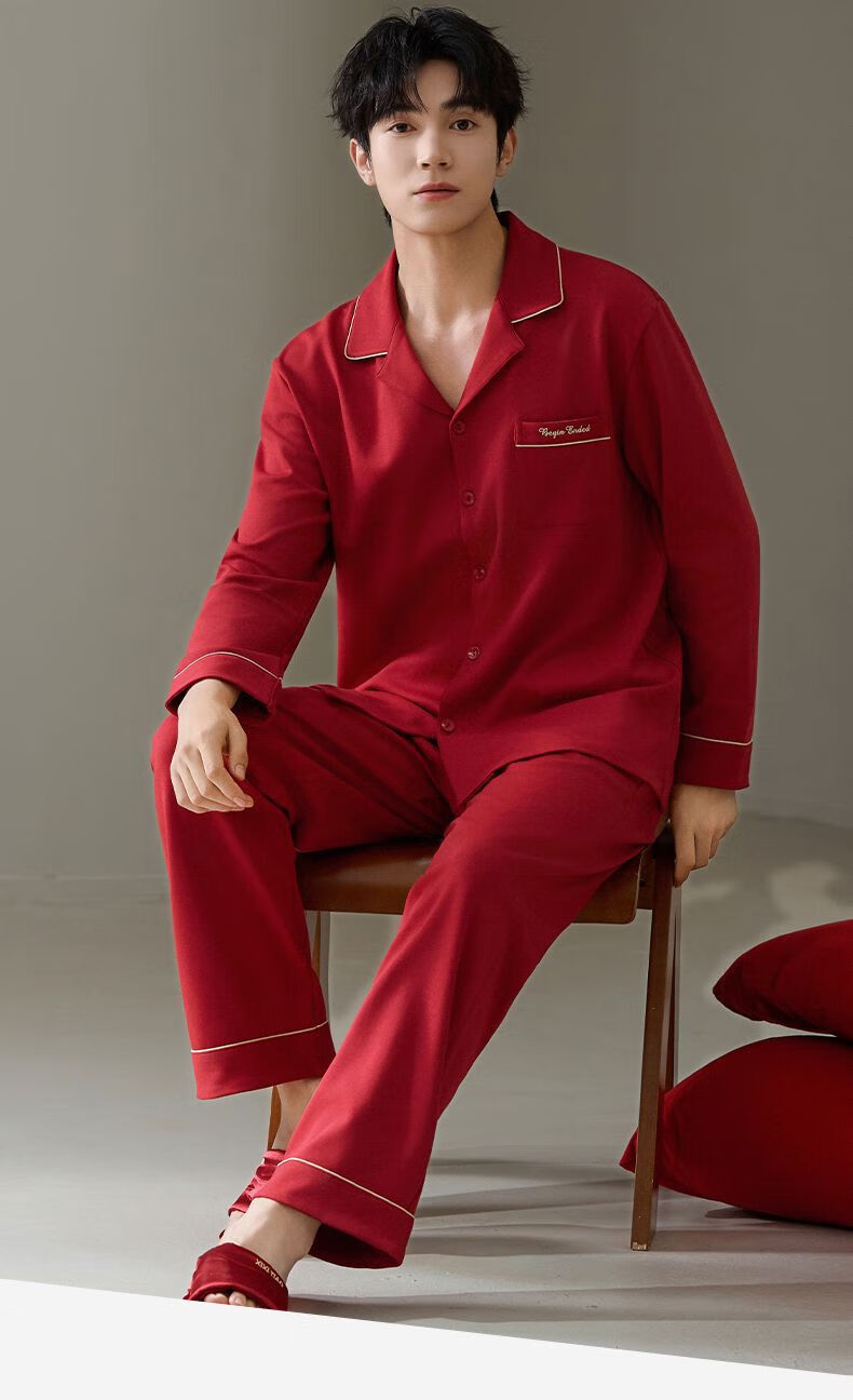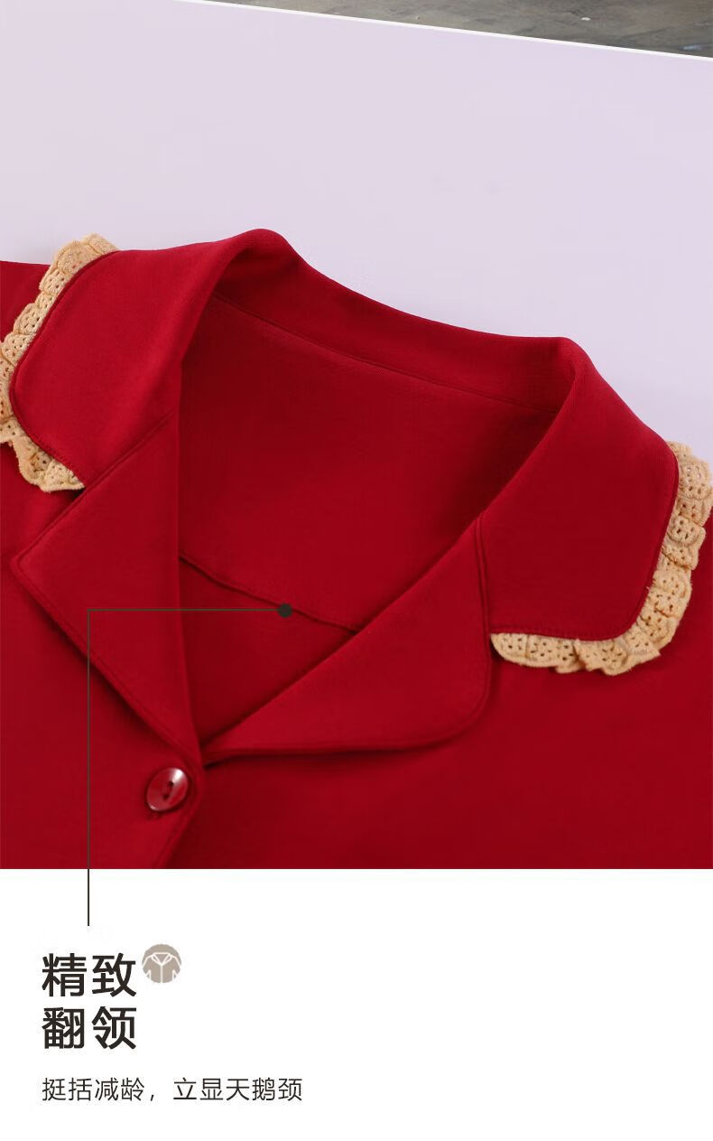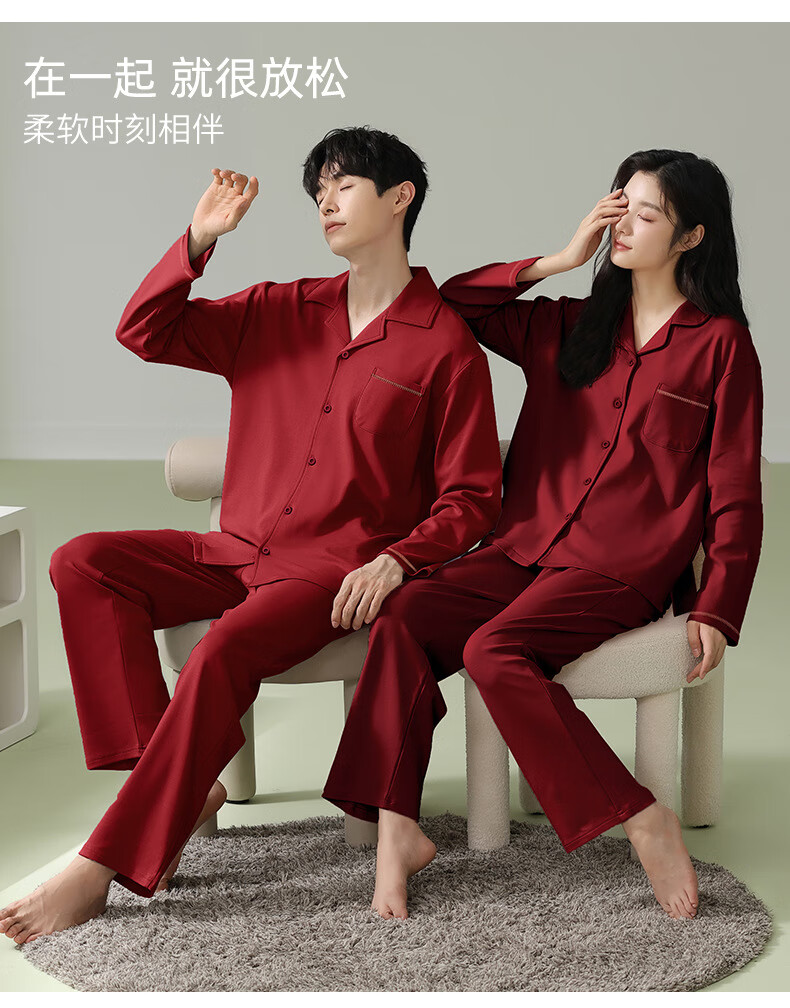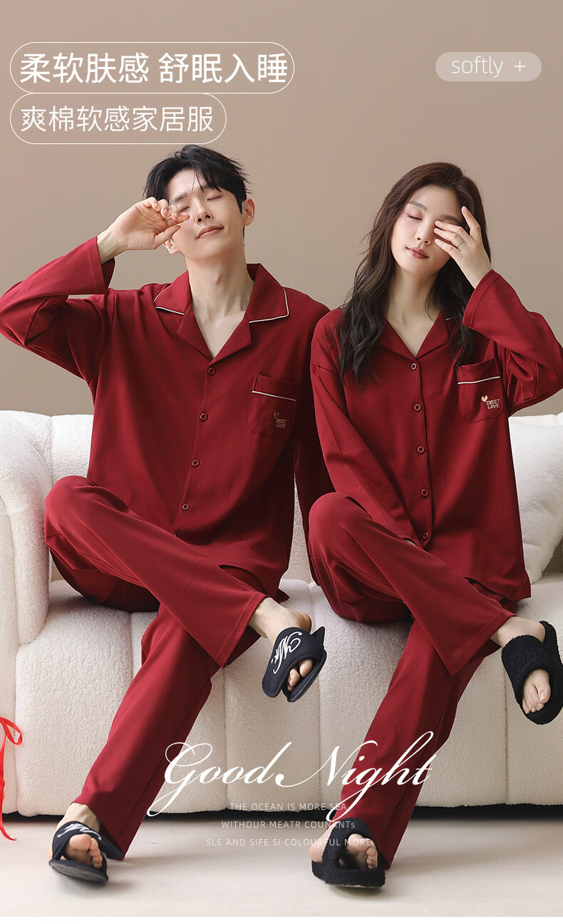 Modal Red Pajamas Spring and Autumn Wedding Newlyweds Couple Set Pure Cotton Home Clothes Animal Year Cardigan Set High Quality Couple 9557 M Women's