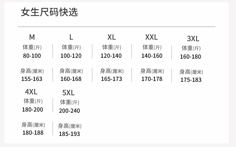 China (cm) 160-165/84-86 165-170 / 88-90 167-172 / 92-96 168-173 / 98-102 170-176 / 106-110