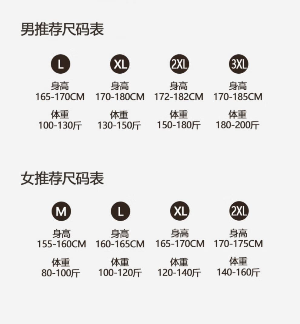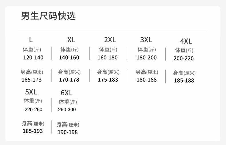 China (cm) 165 / 88-90 170 / 96-98 175 / 108-110 180 / 118-122 185 / 126-130