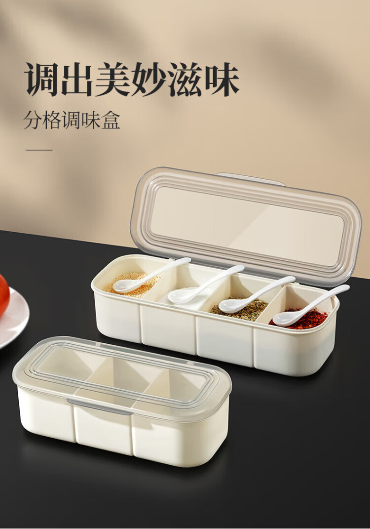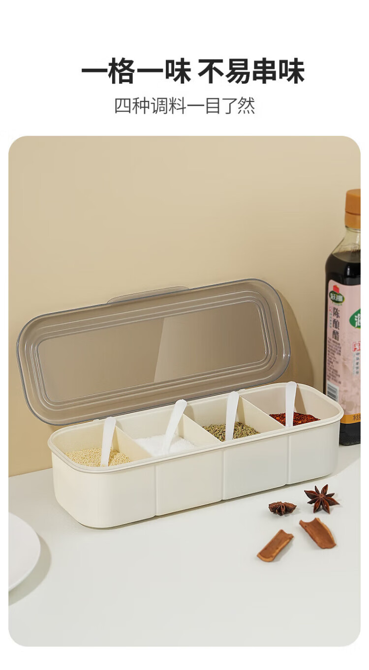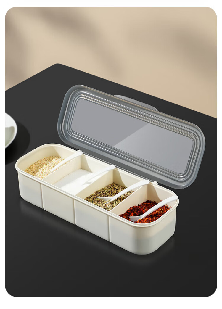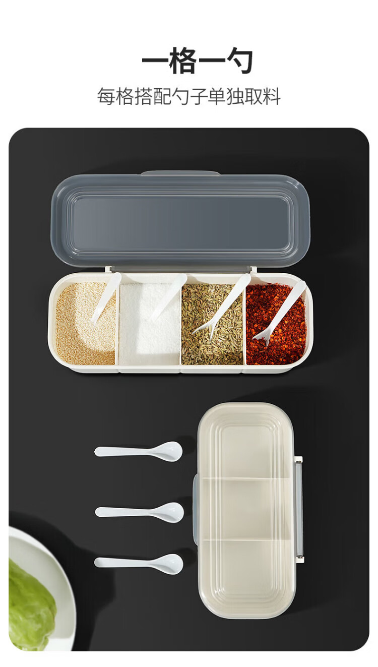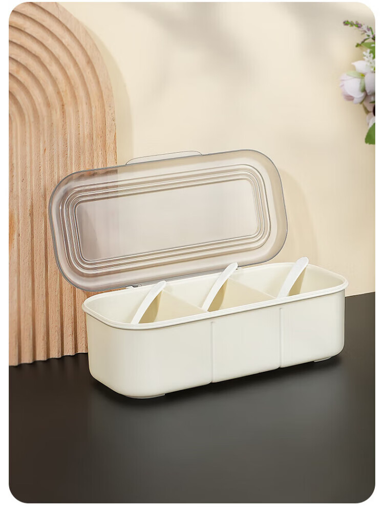 Fu Jian seasoning box compartment set household seasoning jar flip-top seasoning bottle MSG salt box with spoon kitchen seasoning box simple three-compartment seasoning box cream white