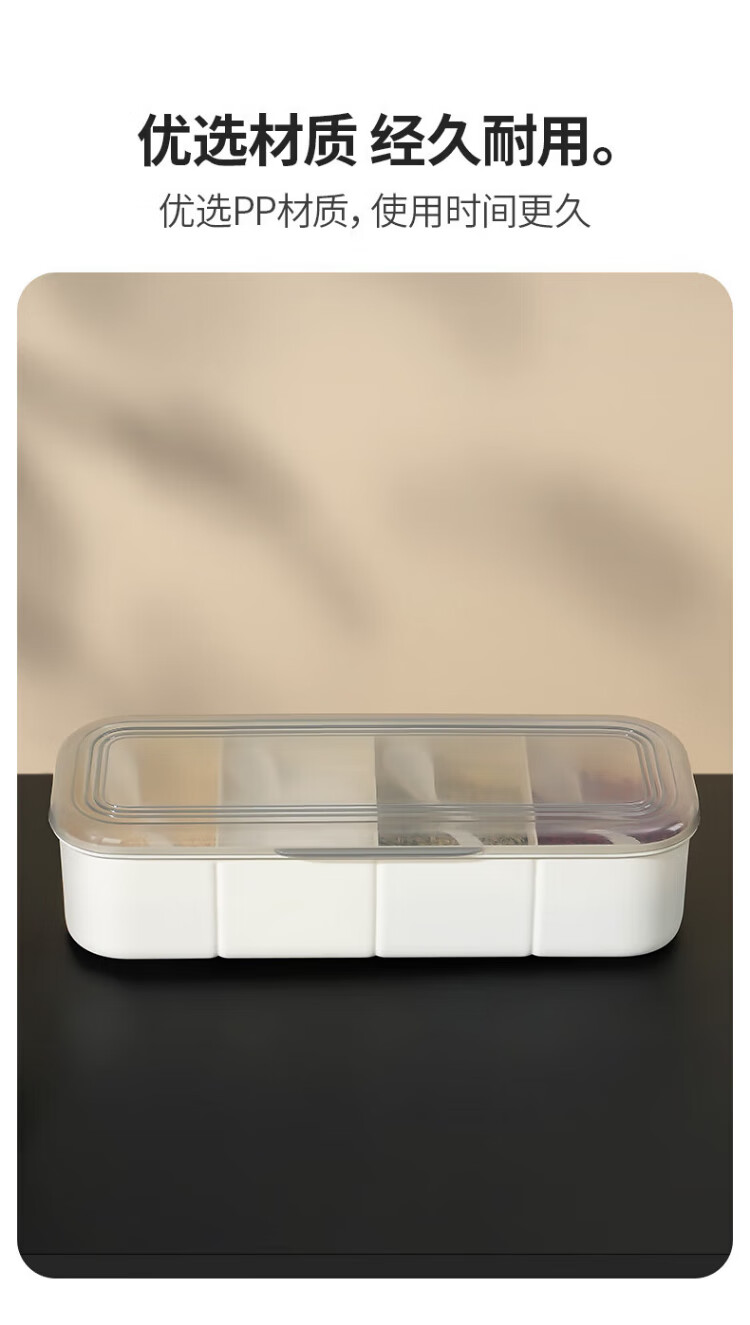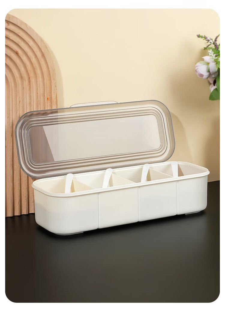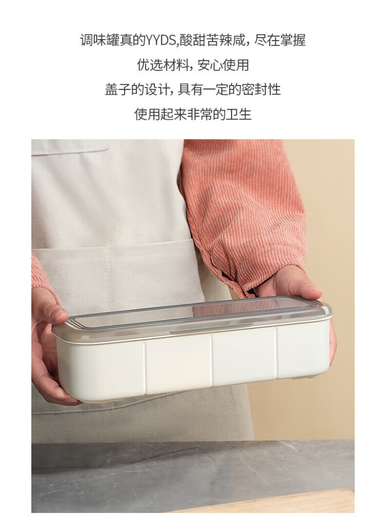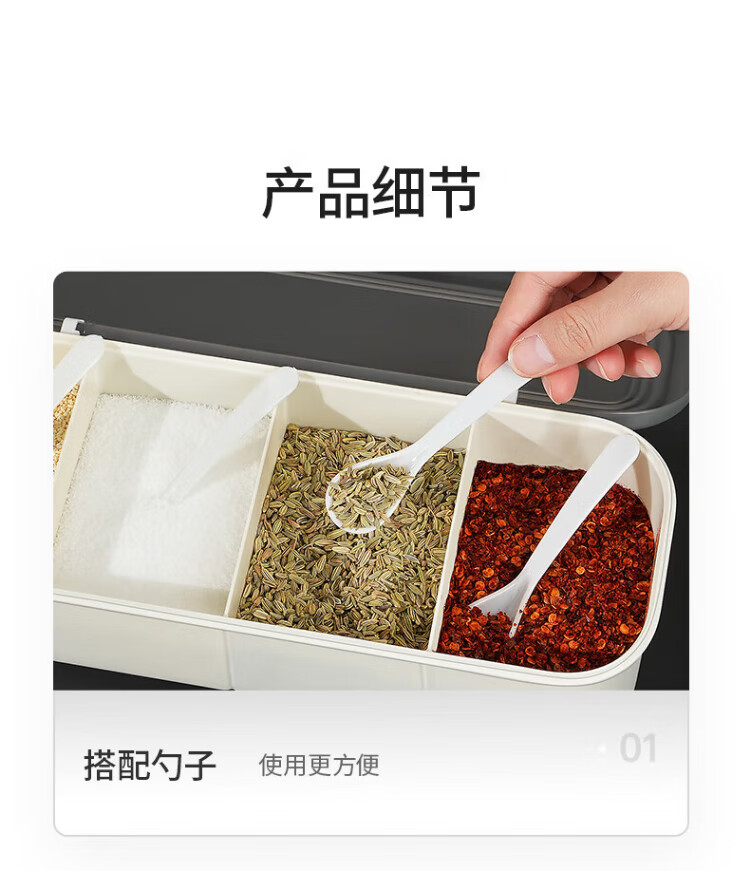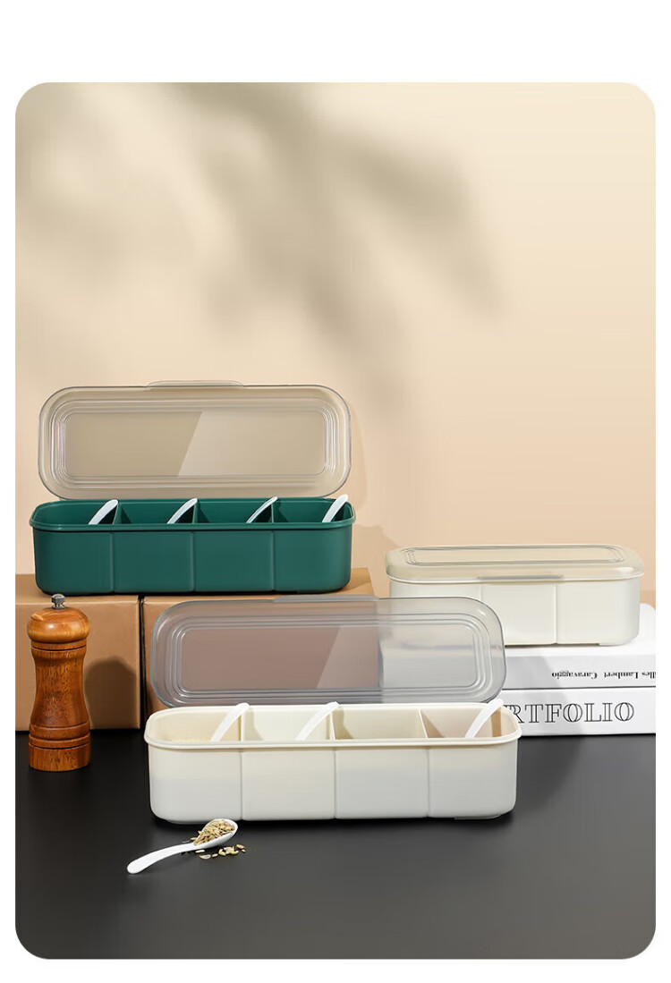 Fu Jian seasoning box compartment set household seasoning jar flip-top seasoning bottle MSG salt box with spoon kitchen seasoning box simple three-compartment seasoning box cream white