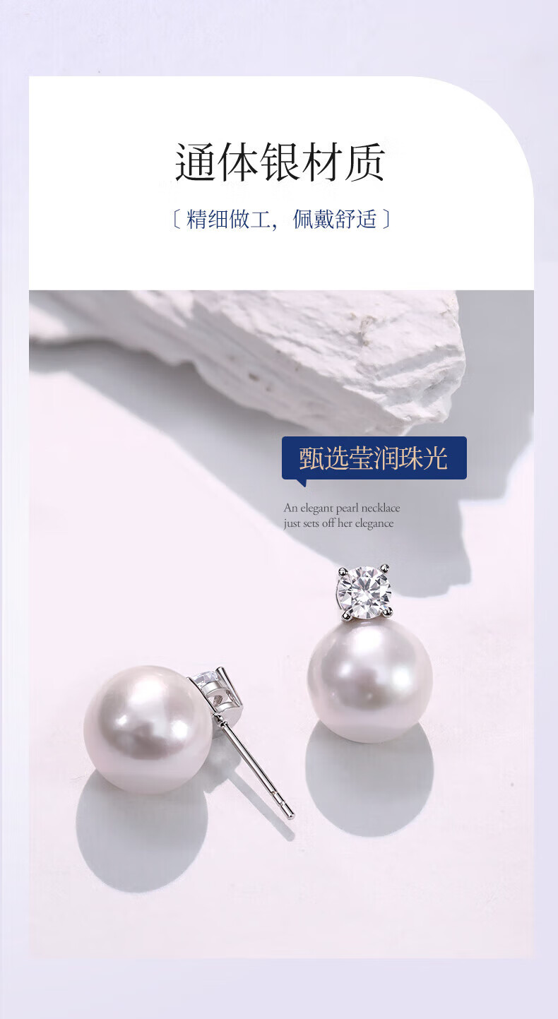 Star Rat Mina Pearl Pendant Single 12-13 Freshwater Pearl Necklace Round Highlight 11-12mm Pearl Stud Earrings S925 Silver