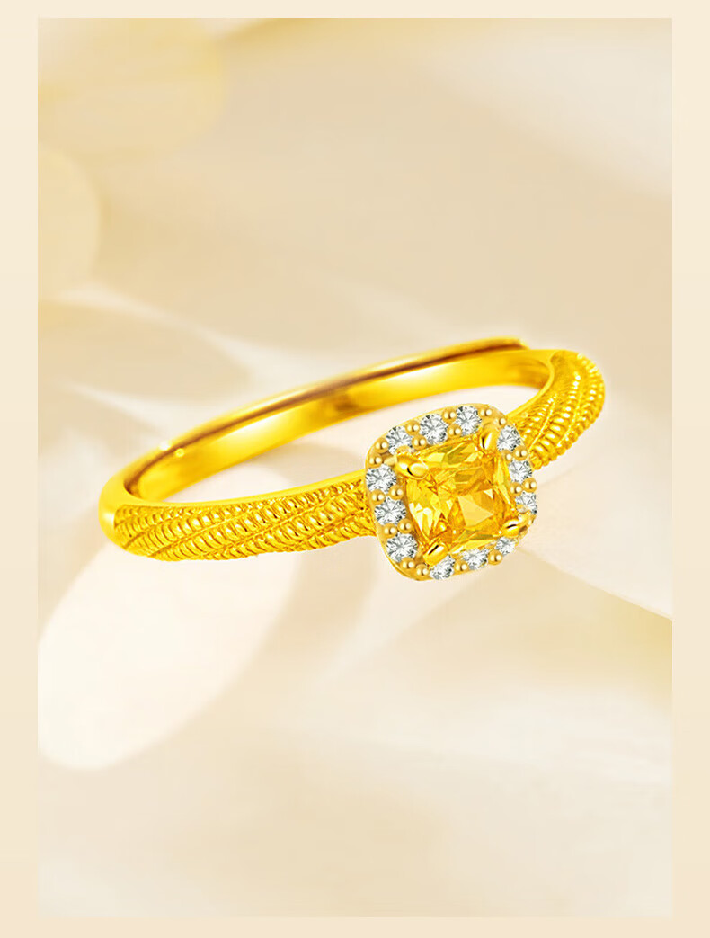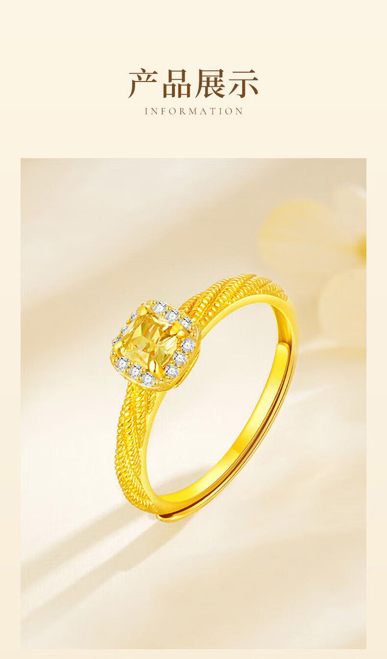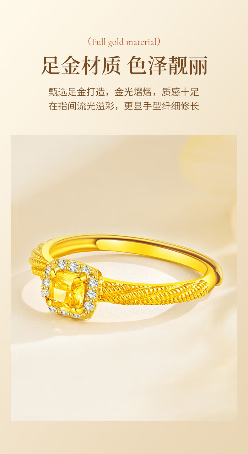 Chinese jewelry bright small sugar cube gold ring women's pure gold open ring birthday gift for girlfriend and wife gold weight about 3.2g pure gold ring rose gift box