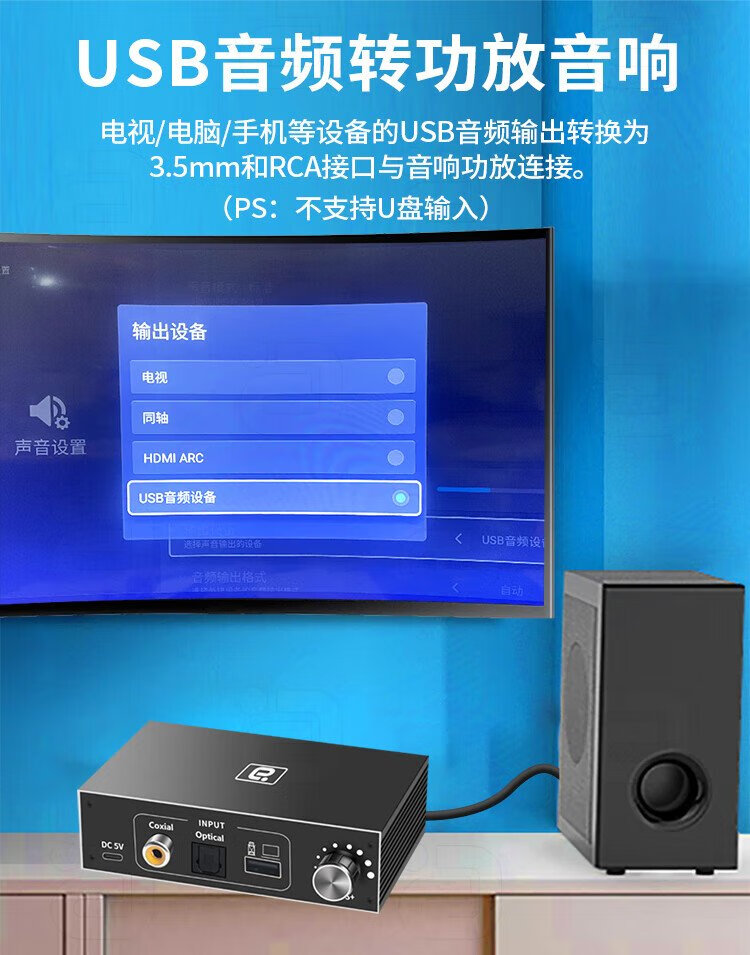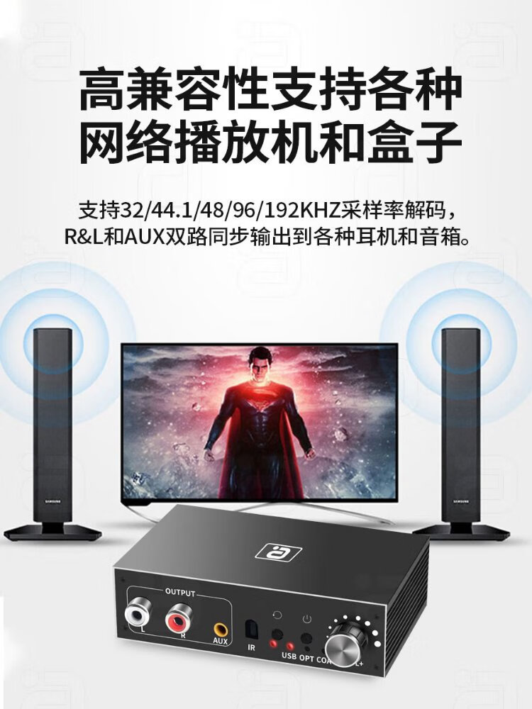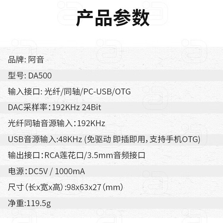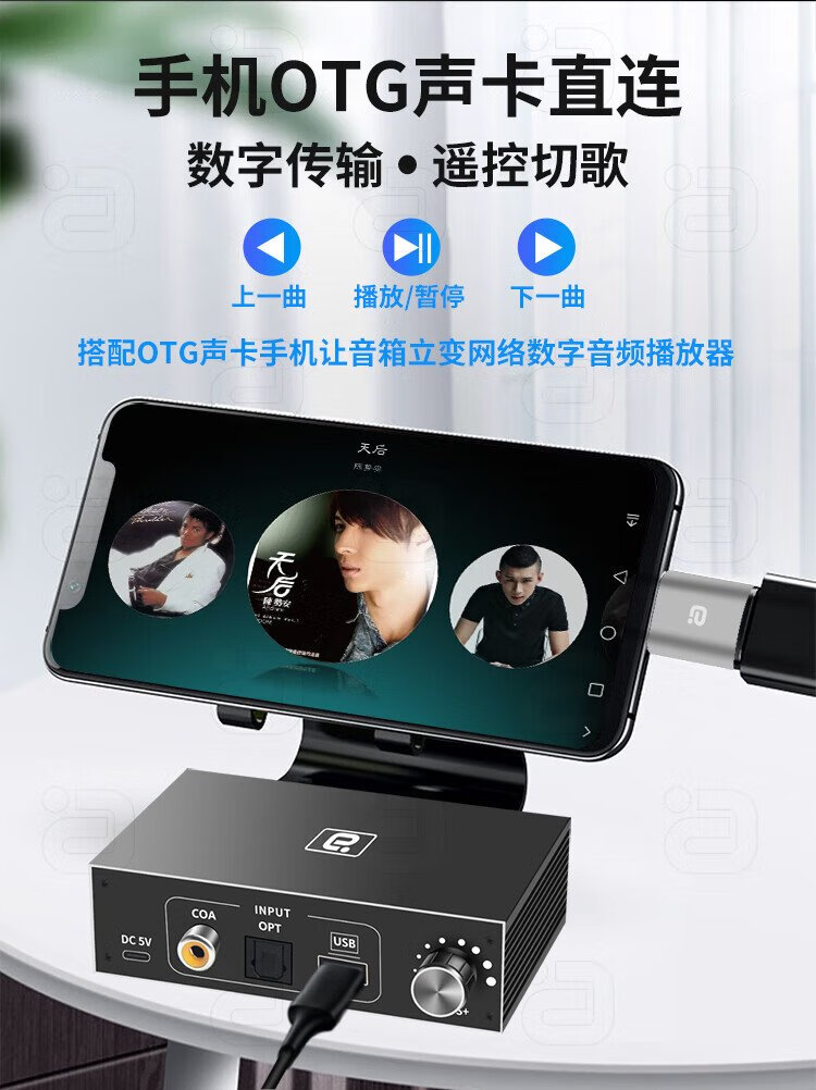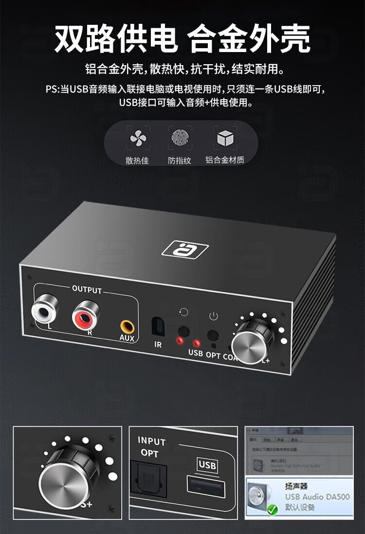 Ayin digital audio converter dac decoding amp fiber coaxial usb computer external sound card to 3.5mm TV computer audio DA500 standard + USB cable