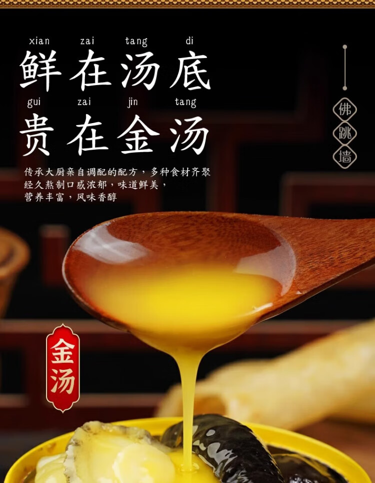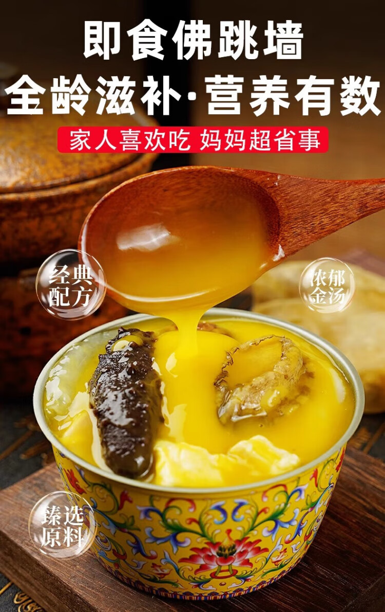 Authentic Golden Soup Buddha Jumps Over the Wall 250g Heated and Instant Sea Cucumber and Abalone Gift Poon Choi Pre-made Dishes 1 Bowl of Buddha Jumps Over the Wall Classic Golden Soup The quantity is too small and is not recommended The whole sea cucumber is not a sliced ginseng