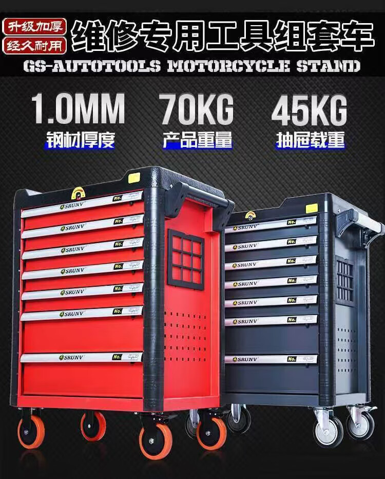 HENGYIDE Auto Repair Tool Cart Set Full Combination Heavy Industrial Grade Repair Workshop Mobile Repair Tool Box Full Set 521 Piece Set Tools + 7 Layers Gray Tool Cart