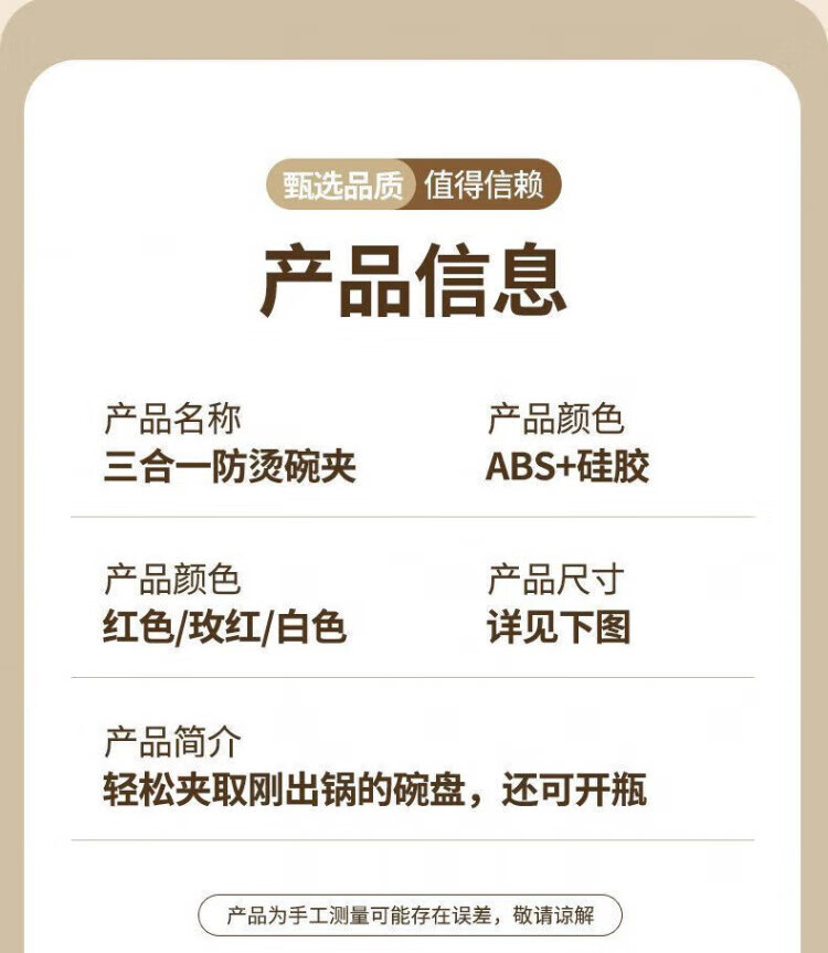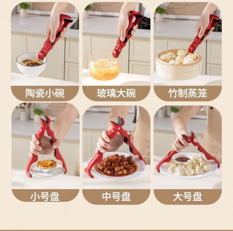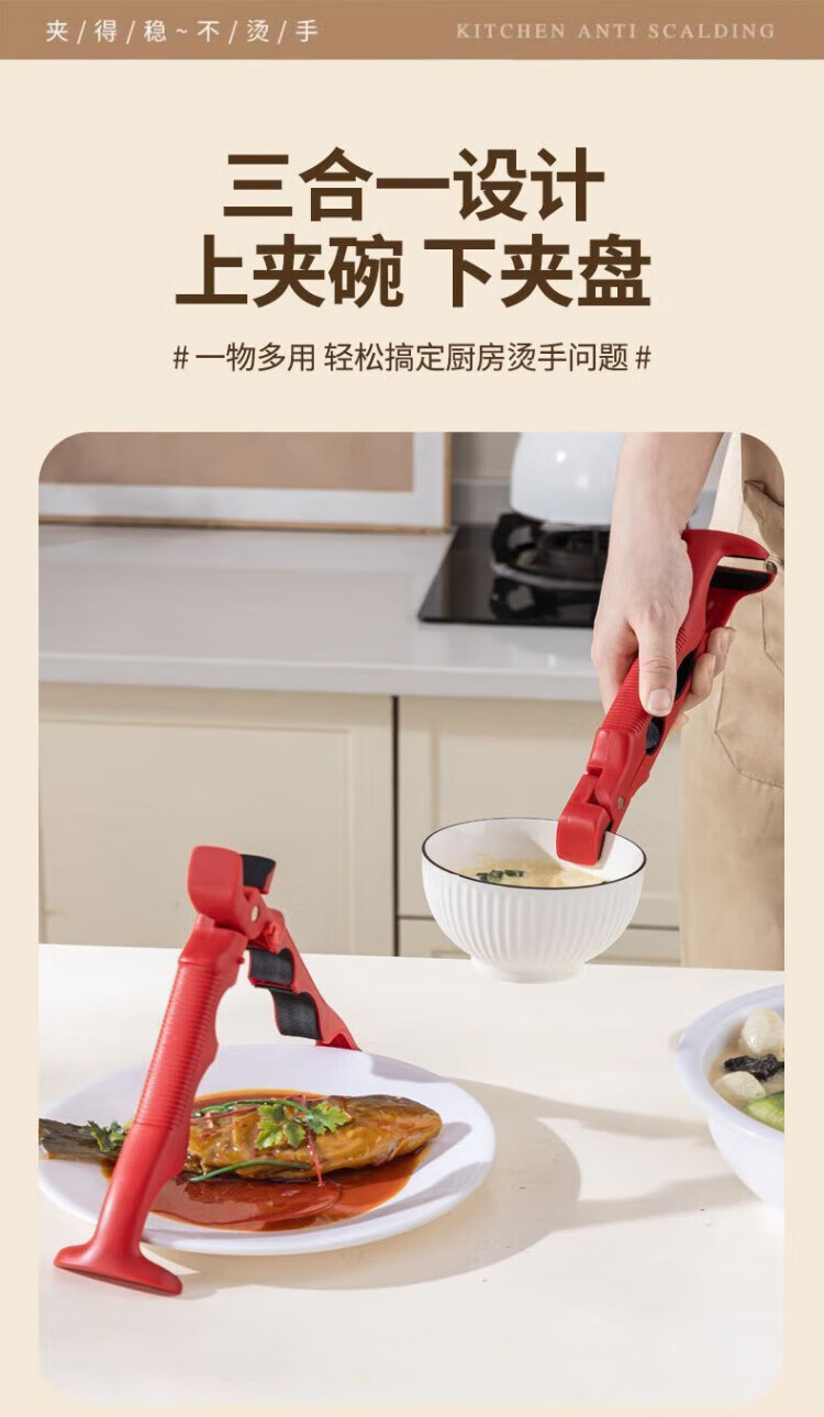 JCZS German quality three-in-one anti-scalding clip to open bottle caps, kitchen high temperature resistant multi-functional clamp, microwave oven silicone clip, red