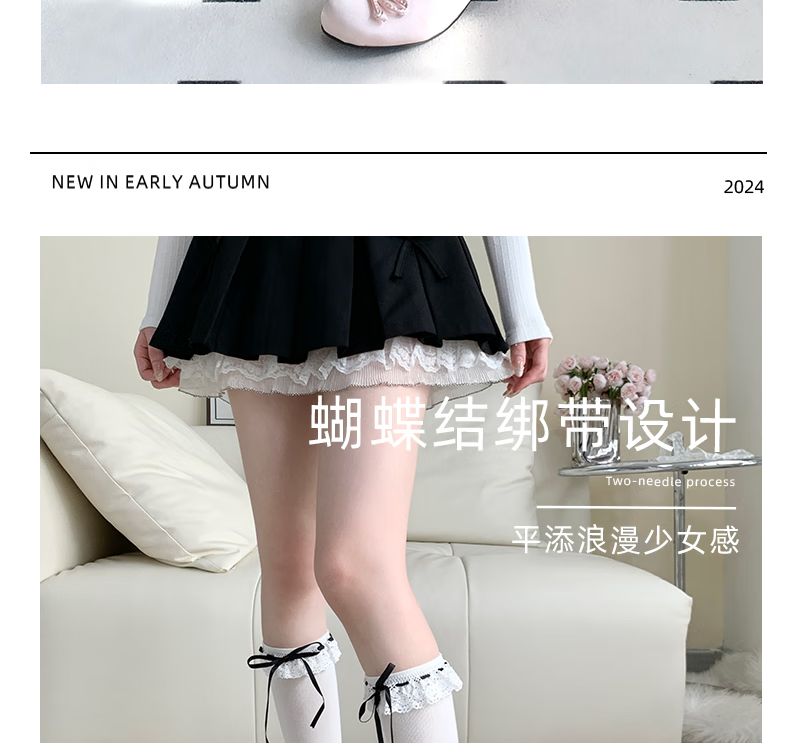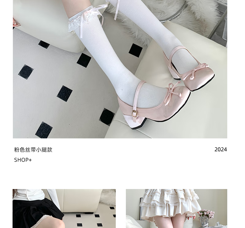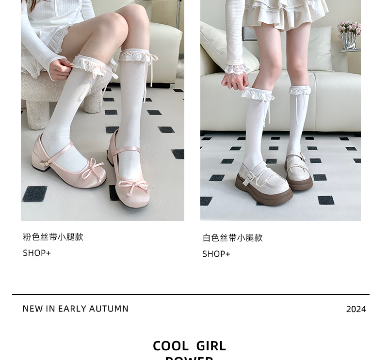 MEOD international first-line brand strap calf socks Lolita matching small leather shoes girl lace bow stockings pink ribbon (calf) one size fits all (Add to favorites for priority delivery)