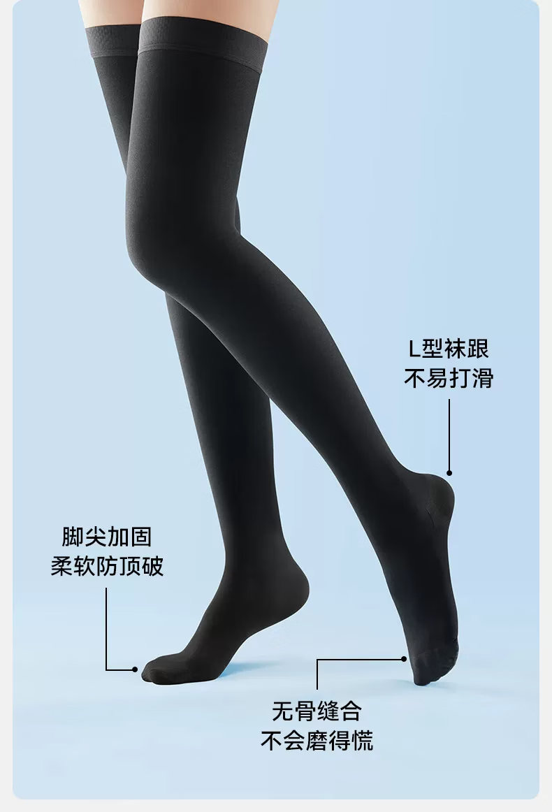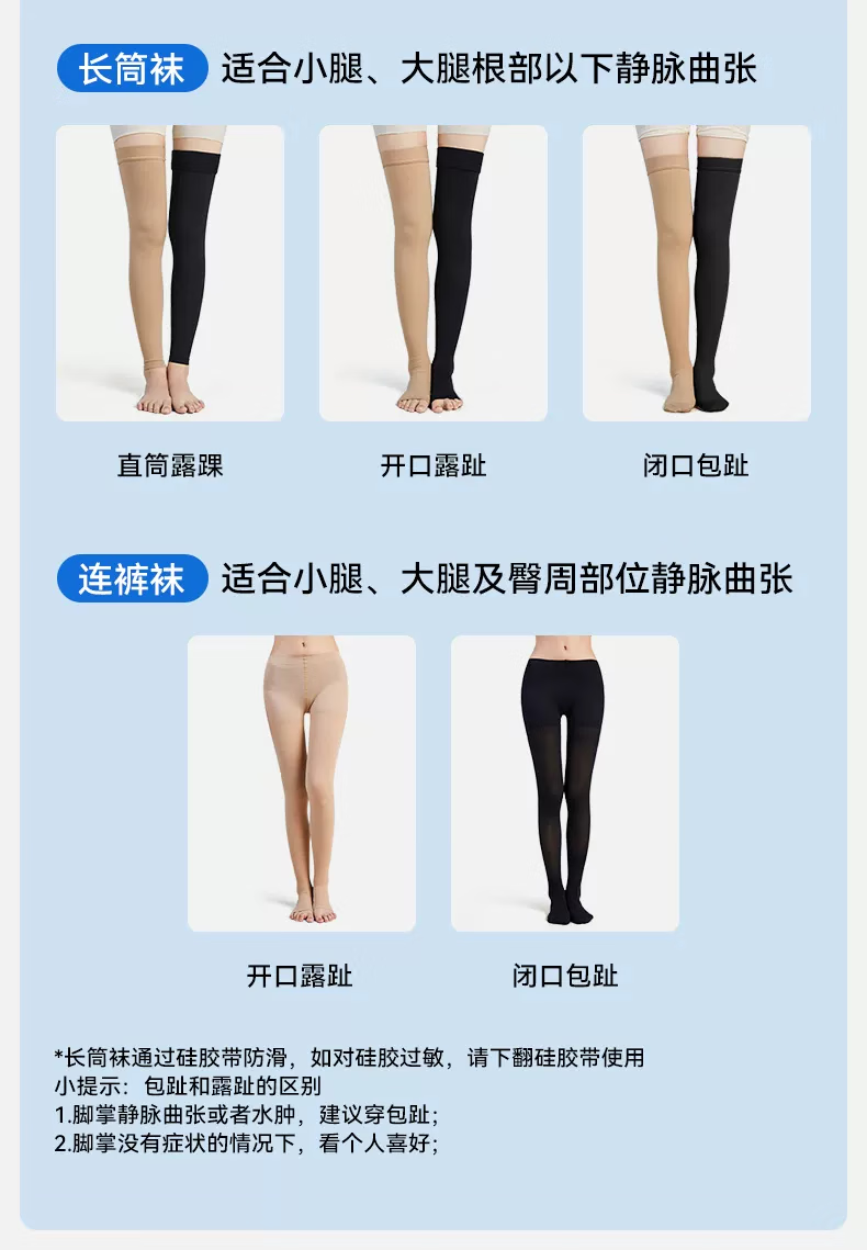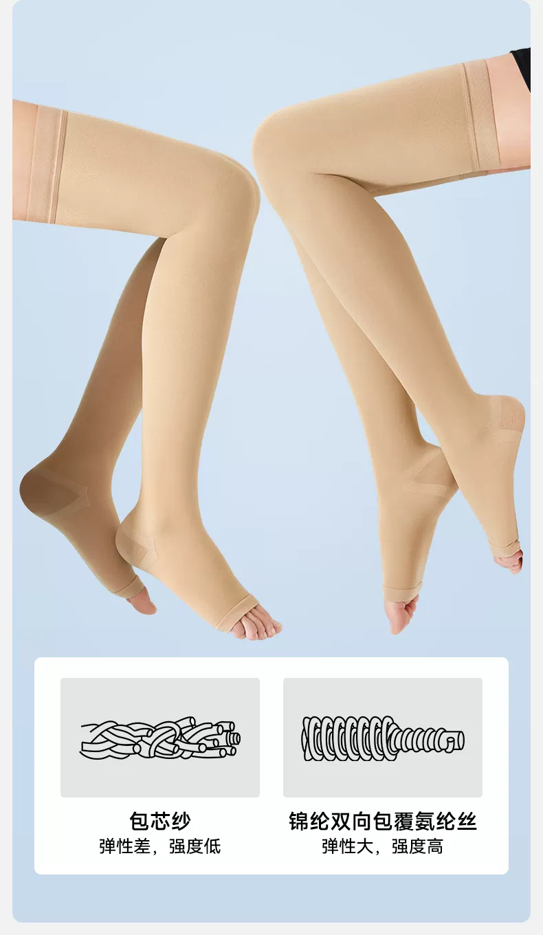 JCZS German Brand Varicose Vein Socks Therapeutic Venous Expansion Elastic Socks Pregnant Women Thrombosis Pressure Postoperative Care Level 2 Black Mid-Leg Exposed S