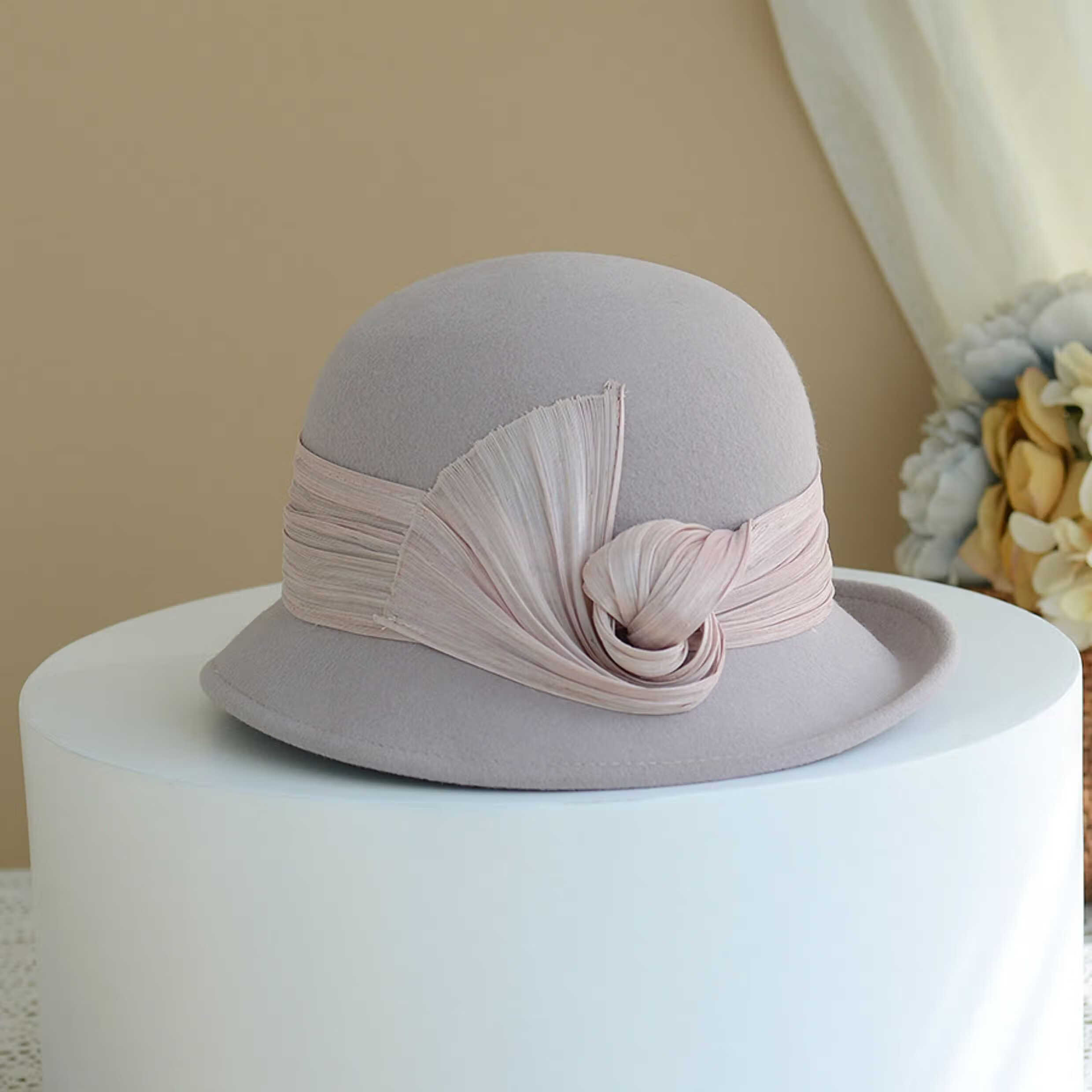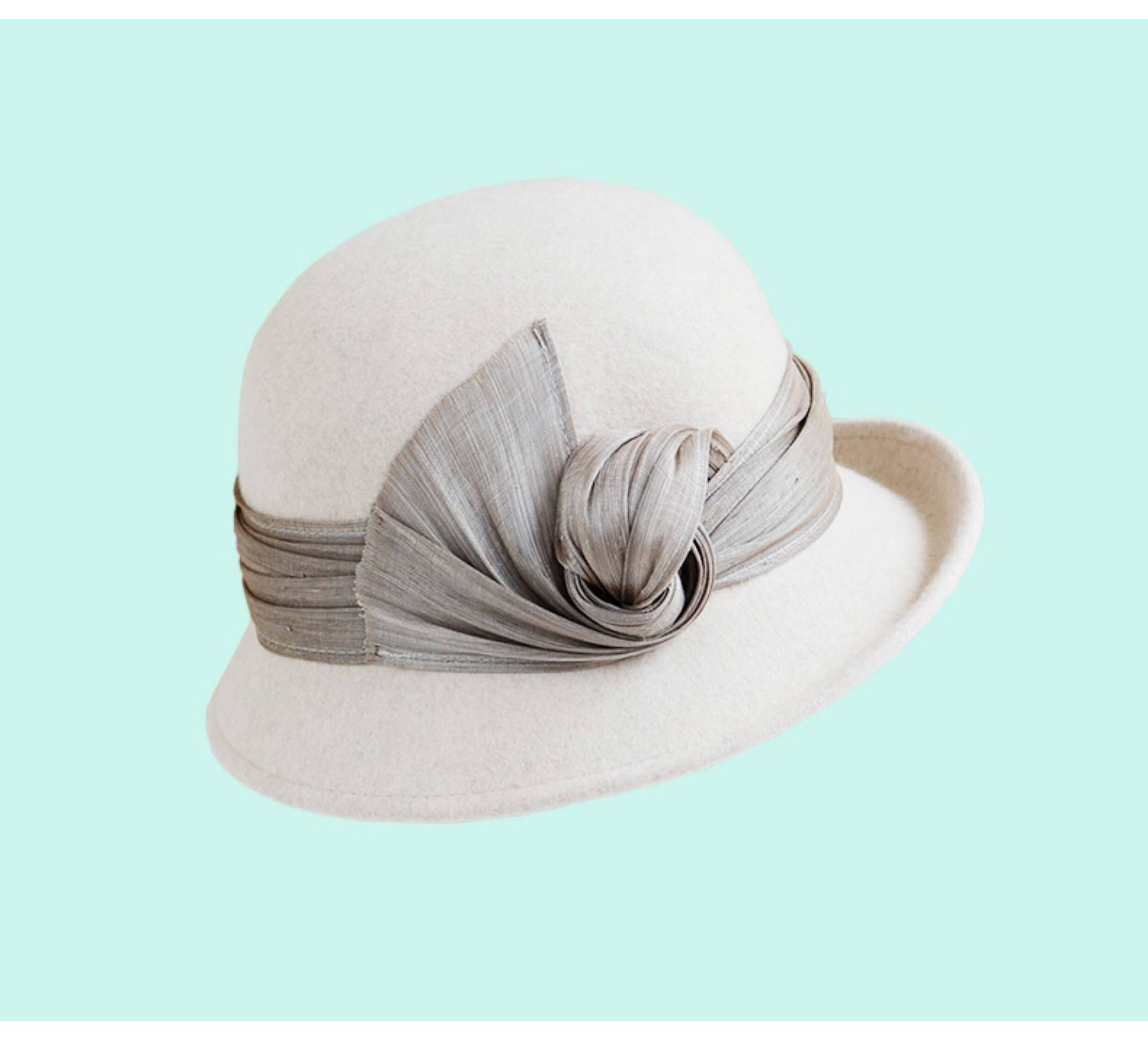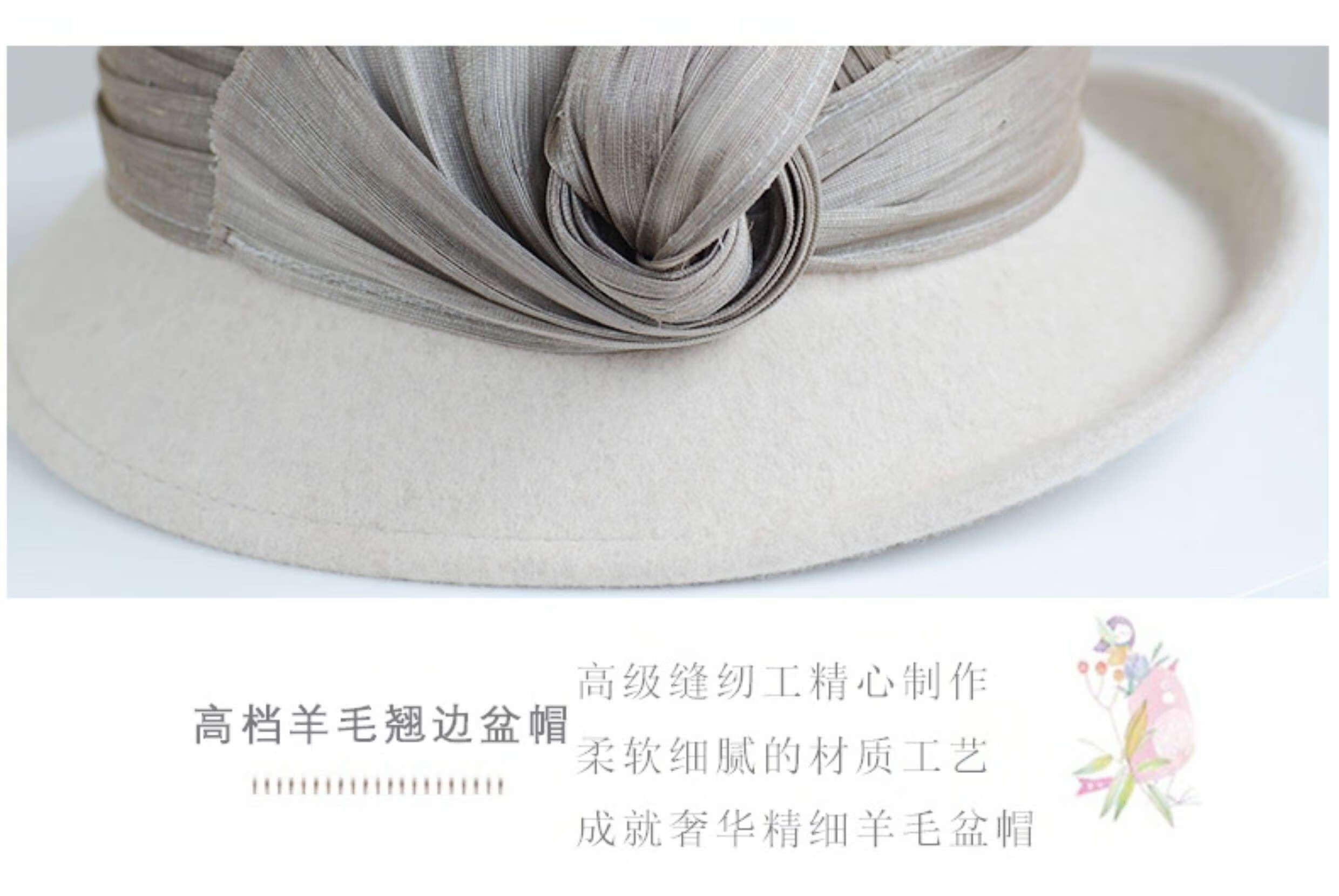 Hanqing Mid-summer Hat Women's Autumn and Winter French Real I Silk Linen Wool Fisherman's Hat British Retro Curly Elegant Top Hat Fashion Basin Mixed Rice Gray M Size Adjustable Small