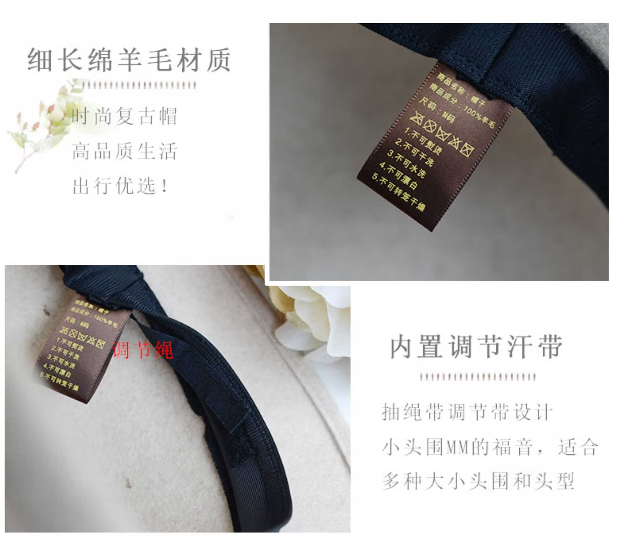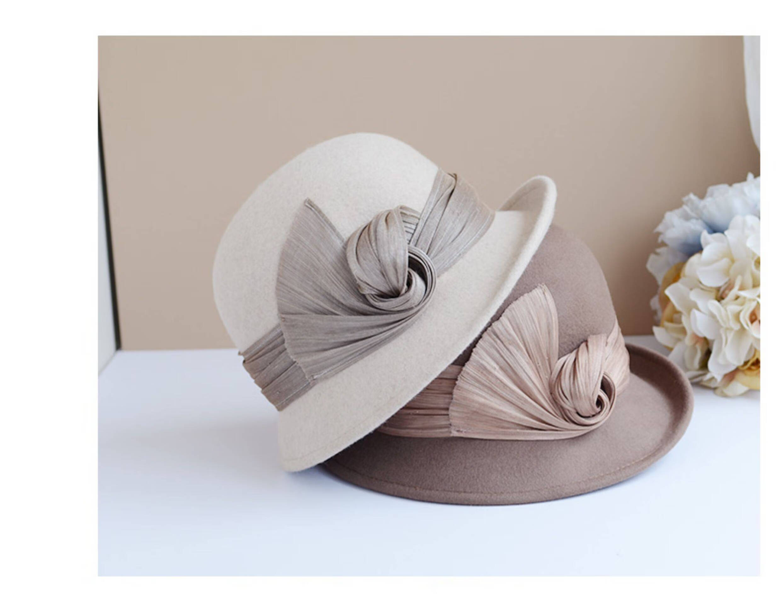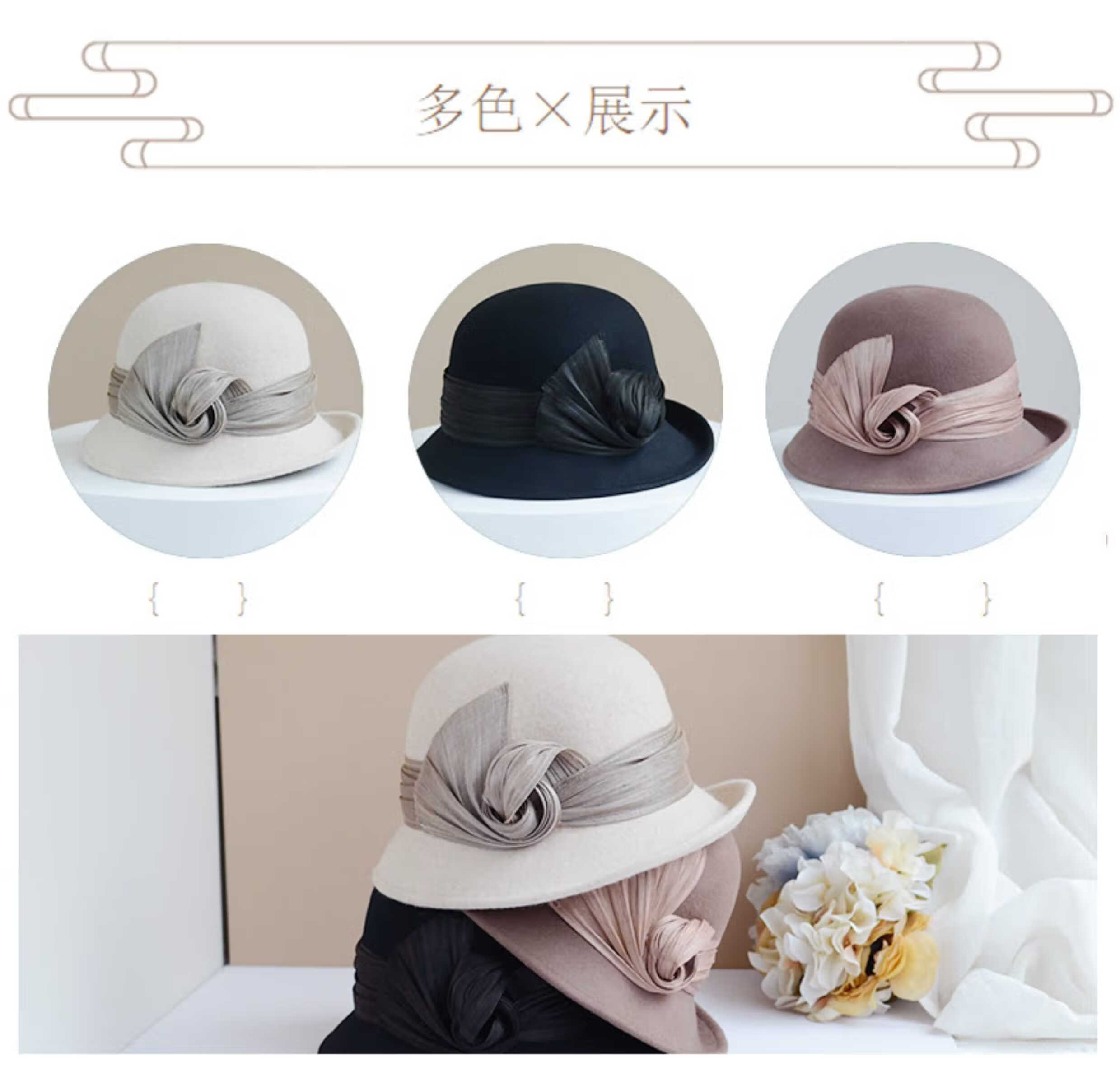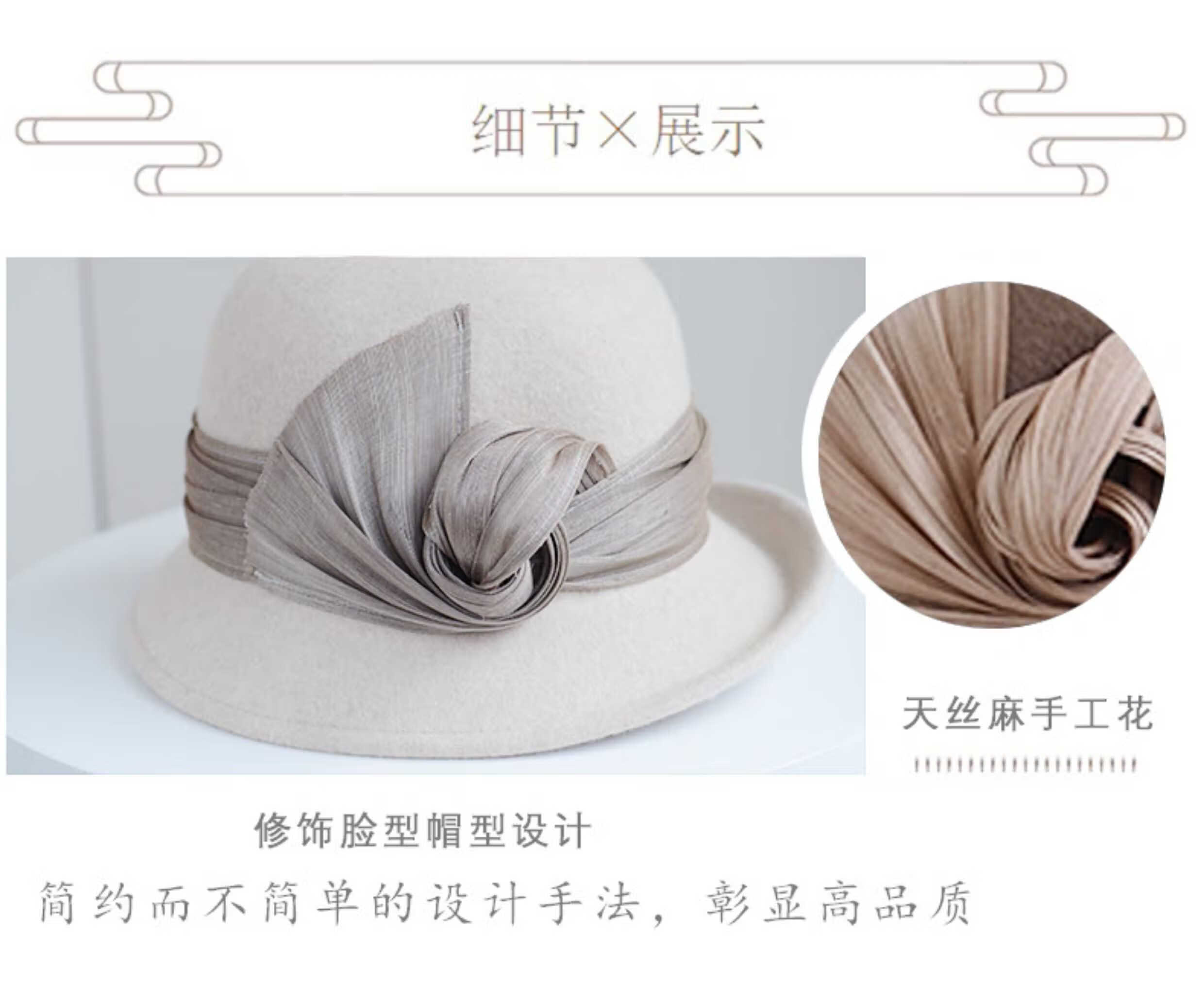 Hanqing Mid-summer Hat Women's Autumn and Winter French Real I Silk Linen Wool Fisherman's Hat British Retro Curly Elegant Top Hat Fashion Basin Mixed Rice Gray M Size Adjustable Small