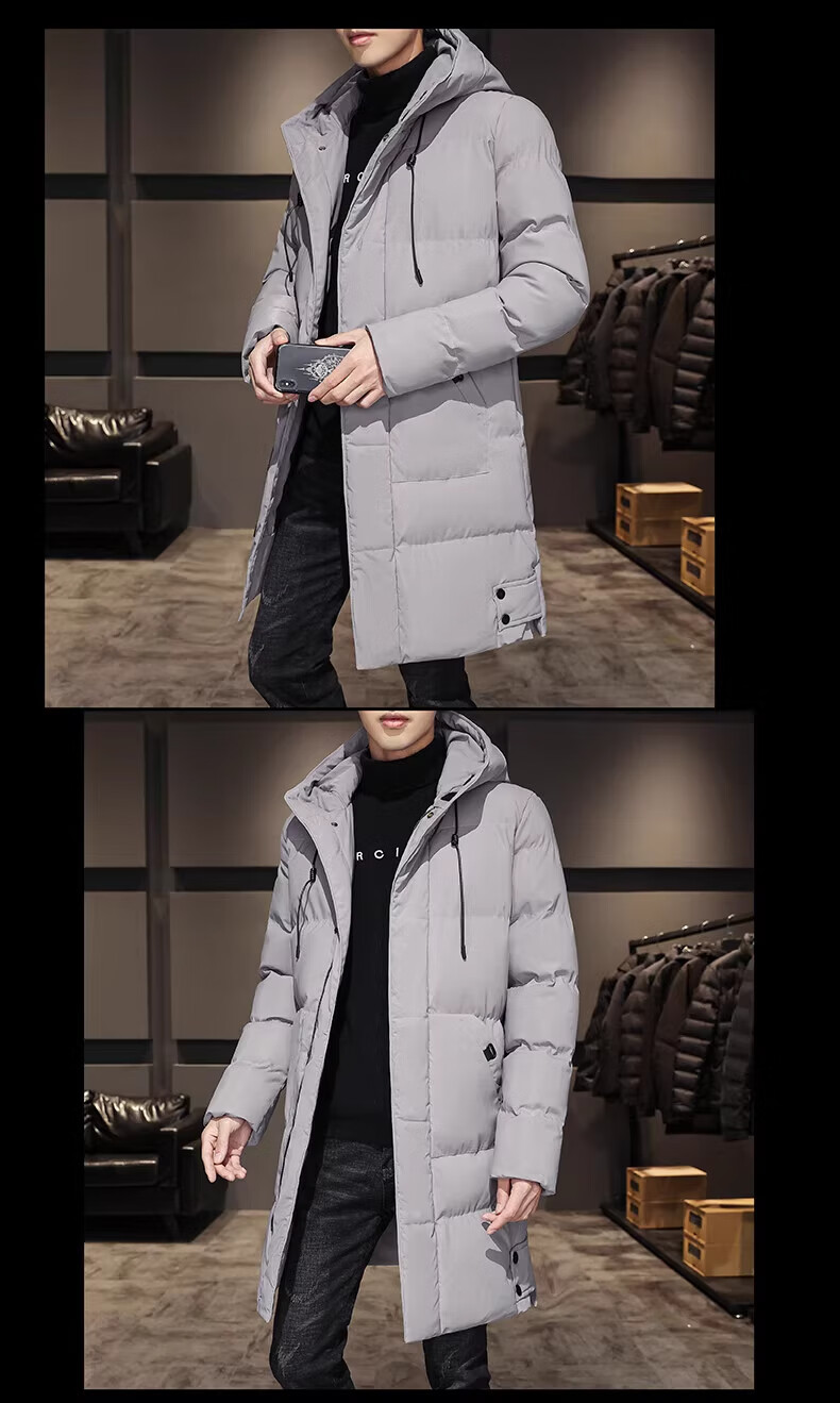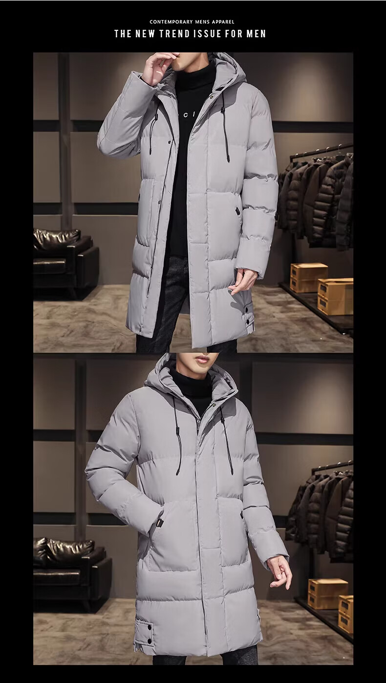 ROMON jacket men's cotton mid-length winter cotton jacket thickened and warm plus fat plus size casual cotton coat black L recommended 110-130Jin Jin equals 0.5 kg