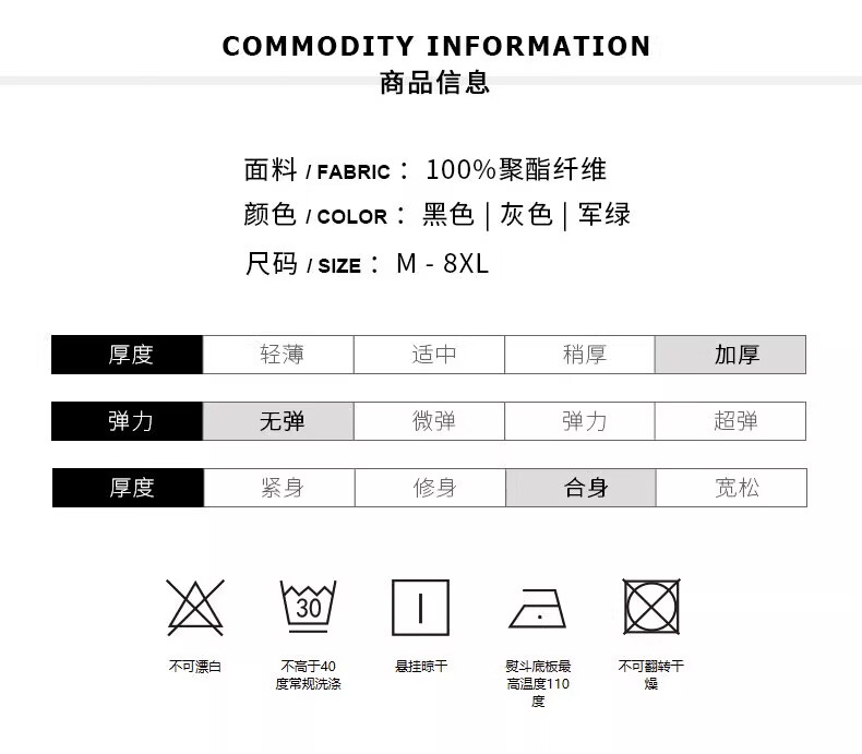 China (cm) 165 / 88-90 170 / 96-98 175 / 108-110 180 / 118-122 185 / 126-130