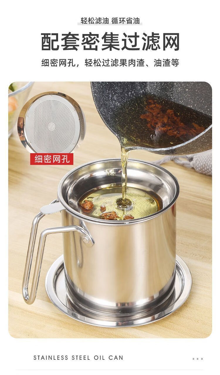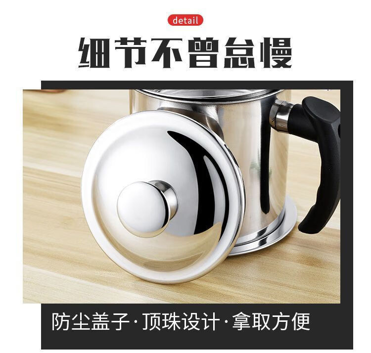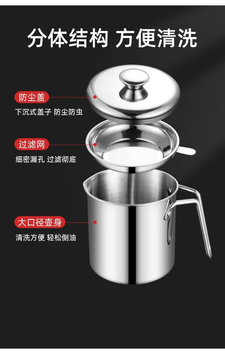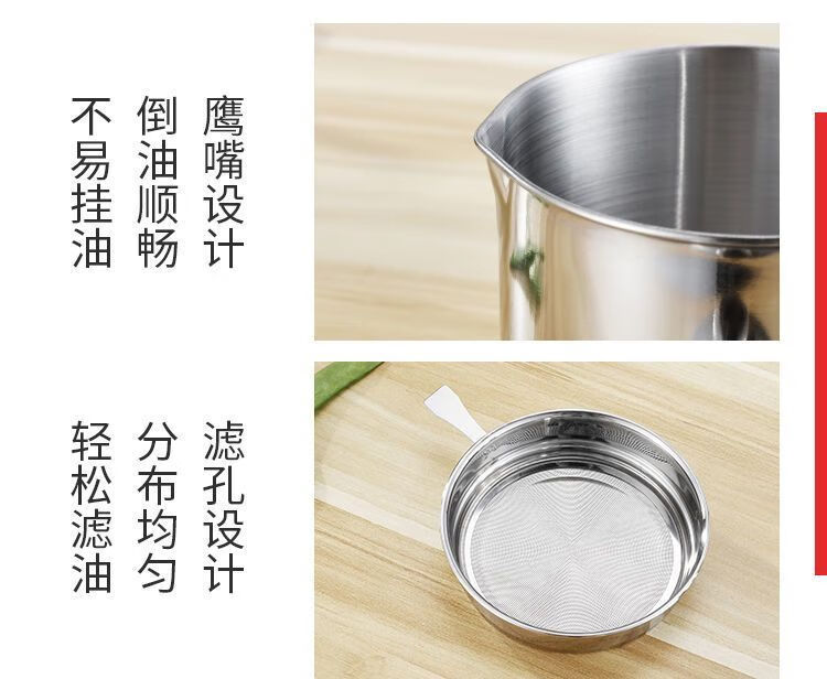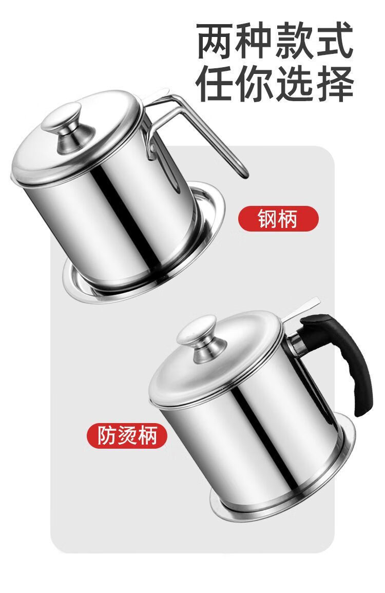 Jingpu Flying Oil Pot Stainless Steel Filter Household Covered Oil Bottle Kitchen Oil Storage Filter Artifact Lard Residue Oil Storage Tank 304 Food Grade Extra Thick Model Small Size Approximately 2Jin Jin is equal to 0.5kg Bakelite handle