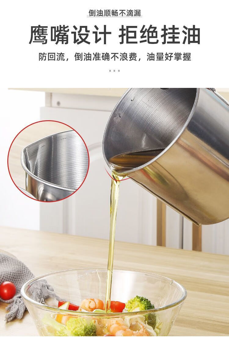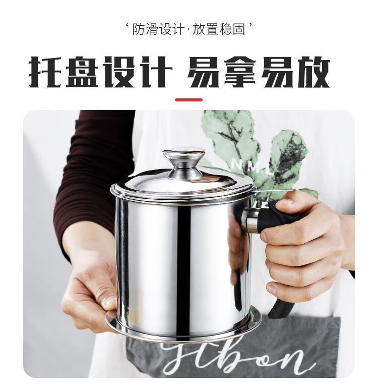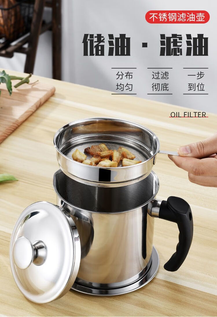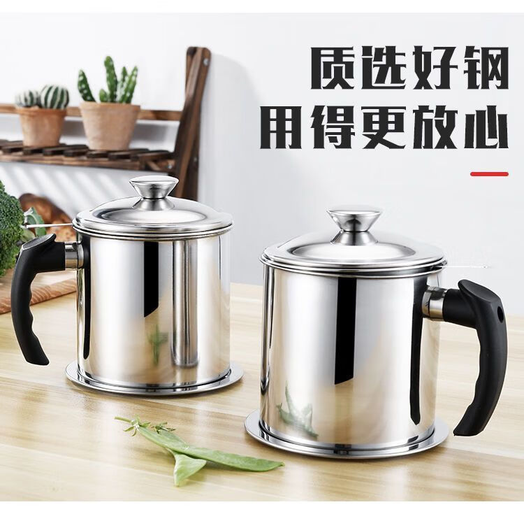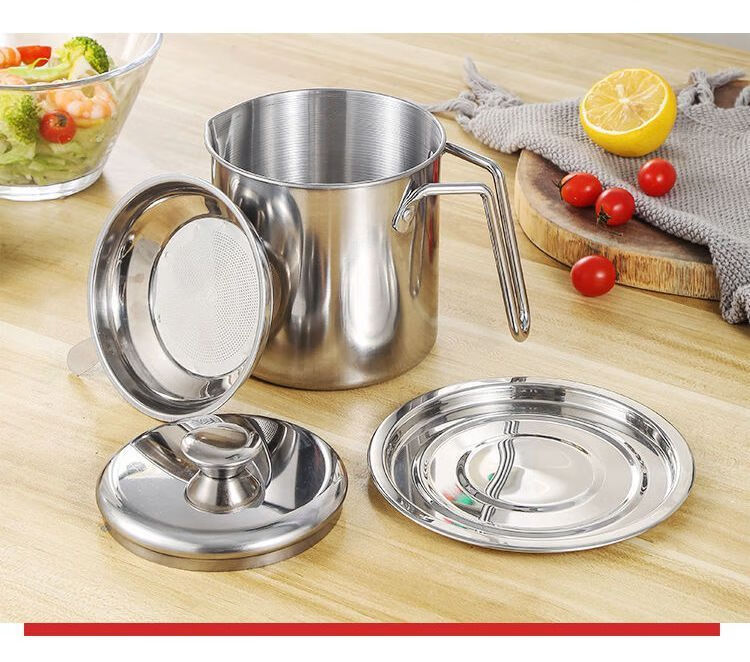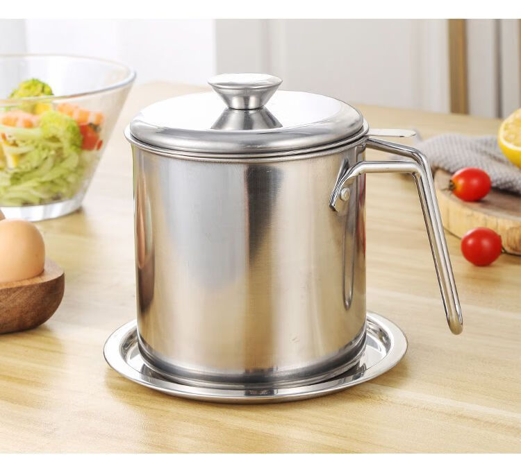 Jingpu Flying Oil Pot Stainless Steel Filter Household Covered Oil Bottle Kitchen Oil Storage Filter Artifact Lard Residue Oil Storage Tank 304 Food Grade Extra Thick Model Small Size Approximately 2Jin Jin is equal to 0.5kg Bakelite handle