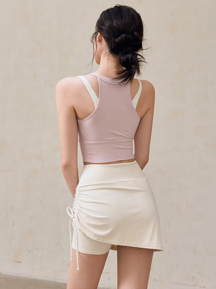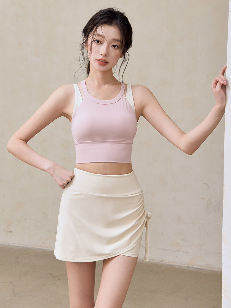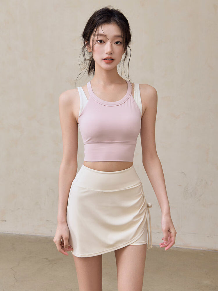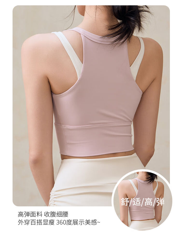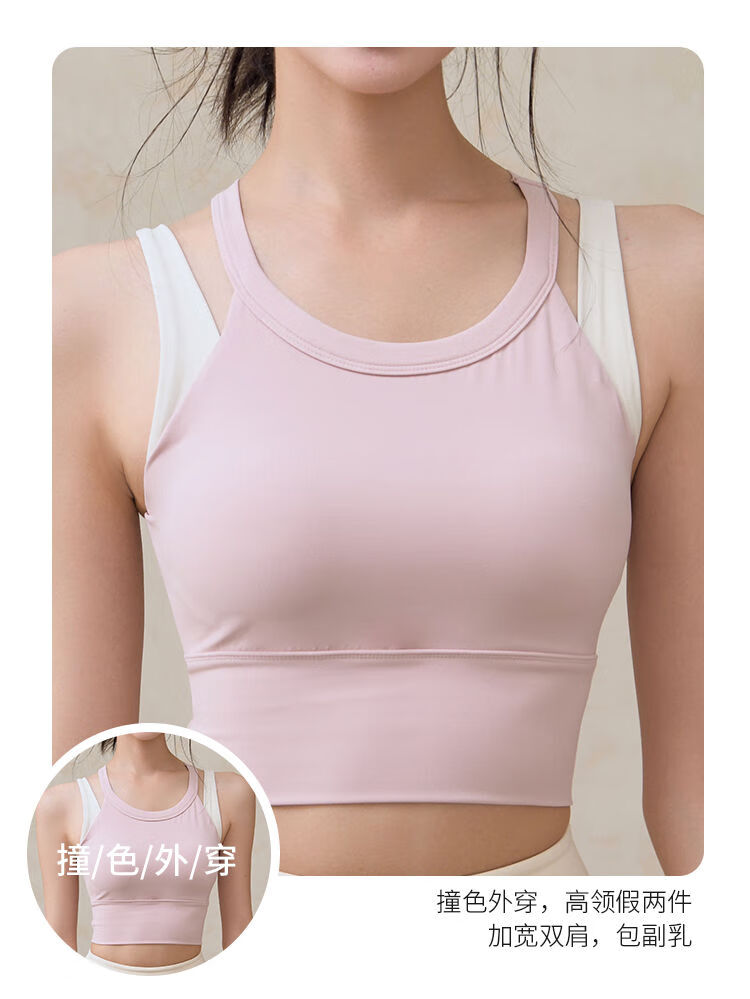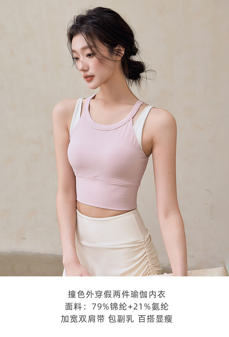 Side breast worship fixed cup sports vest dopamine contrast color Pilates fitness yoga wear sports suit for women pink one-piece fixed chest pad S SS recommended weight 85-100Jin Jin is equal to 0.5 kg